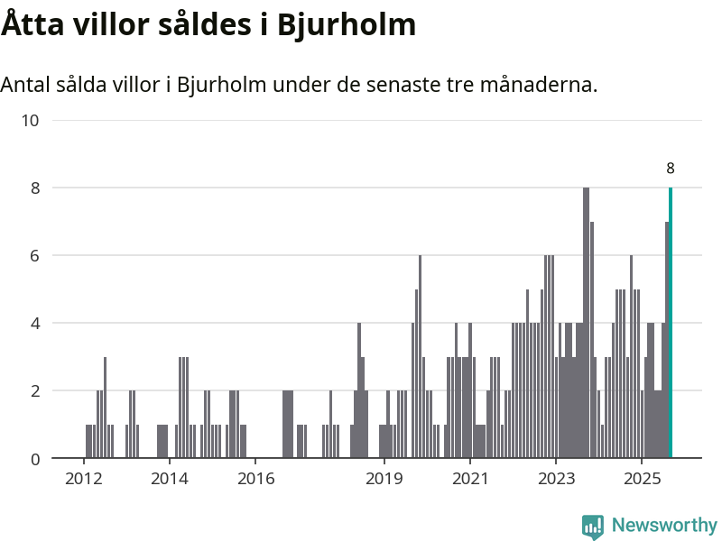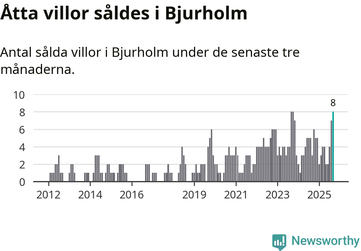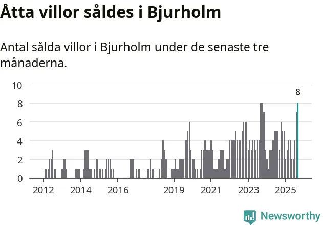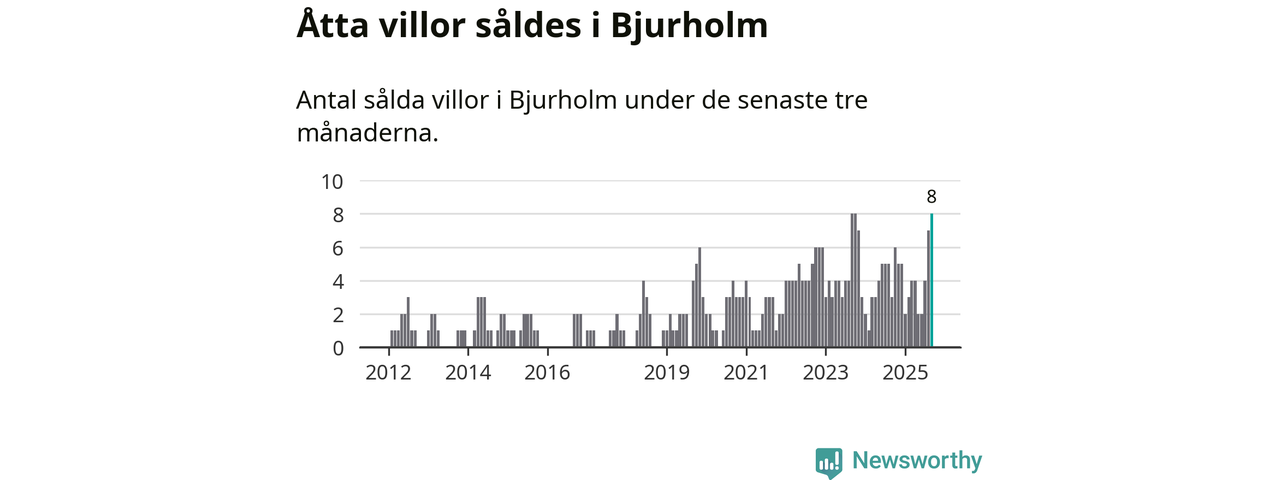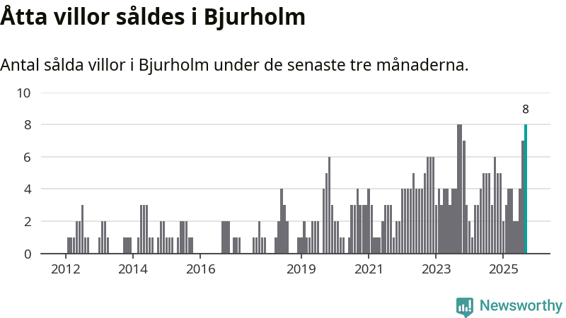 Mellan juli och september gjordes sammanlagt åtta affärer med villor i Bjurholms kommun. Det kan jämföras med tre vid motsvarande tid i fjol.