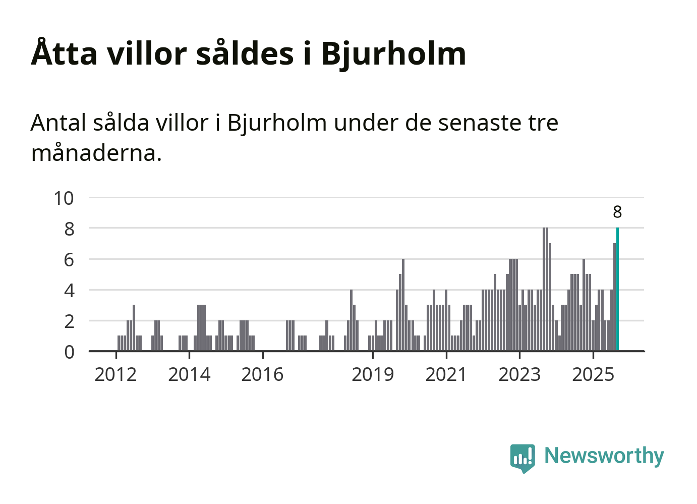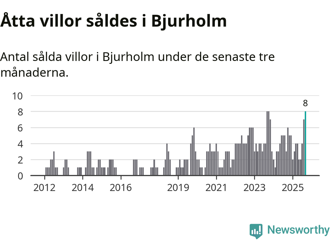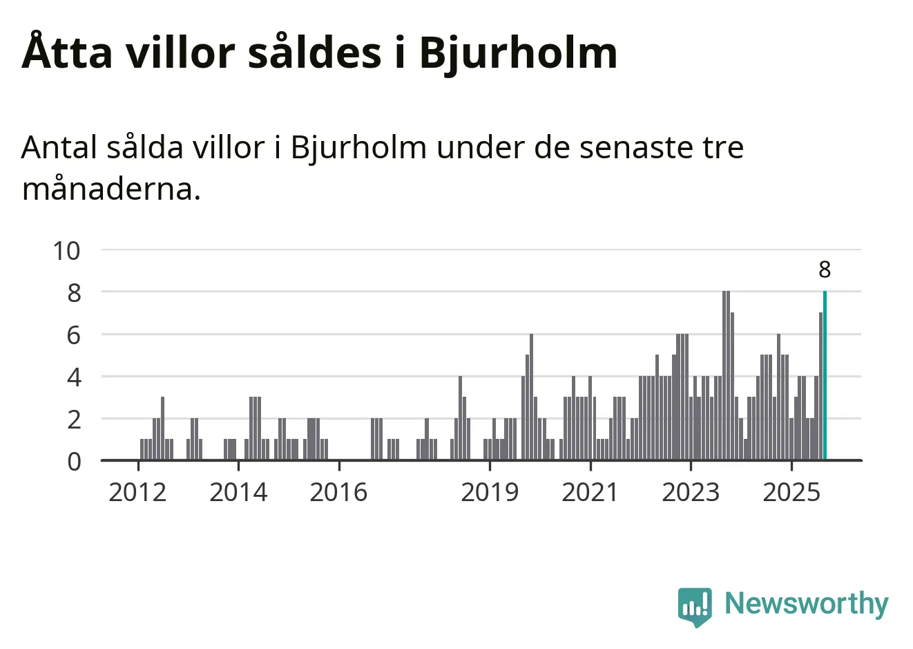 Mellan juli och september gjordes sammanlagt åtta affärer med villor i Bjurholms kommun. Det kan jämföras med tre vid motsvarande tid i fjol.