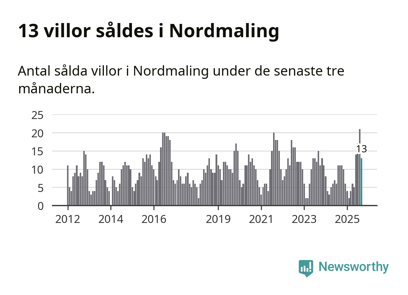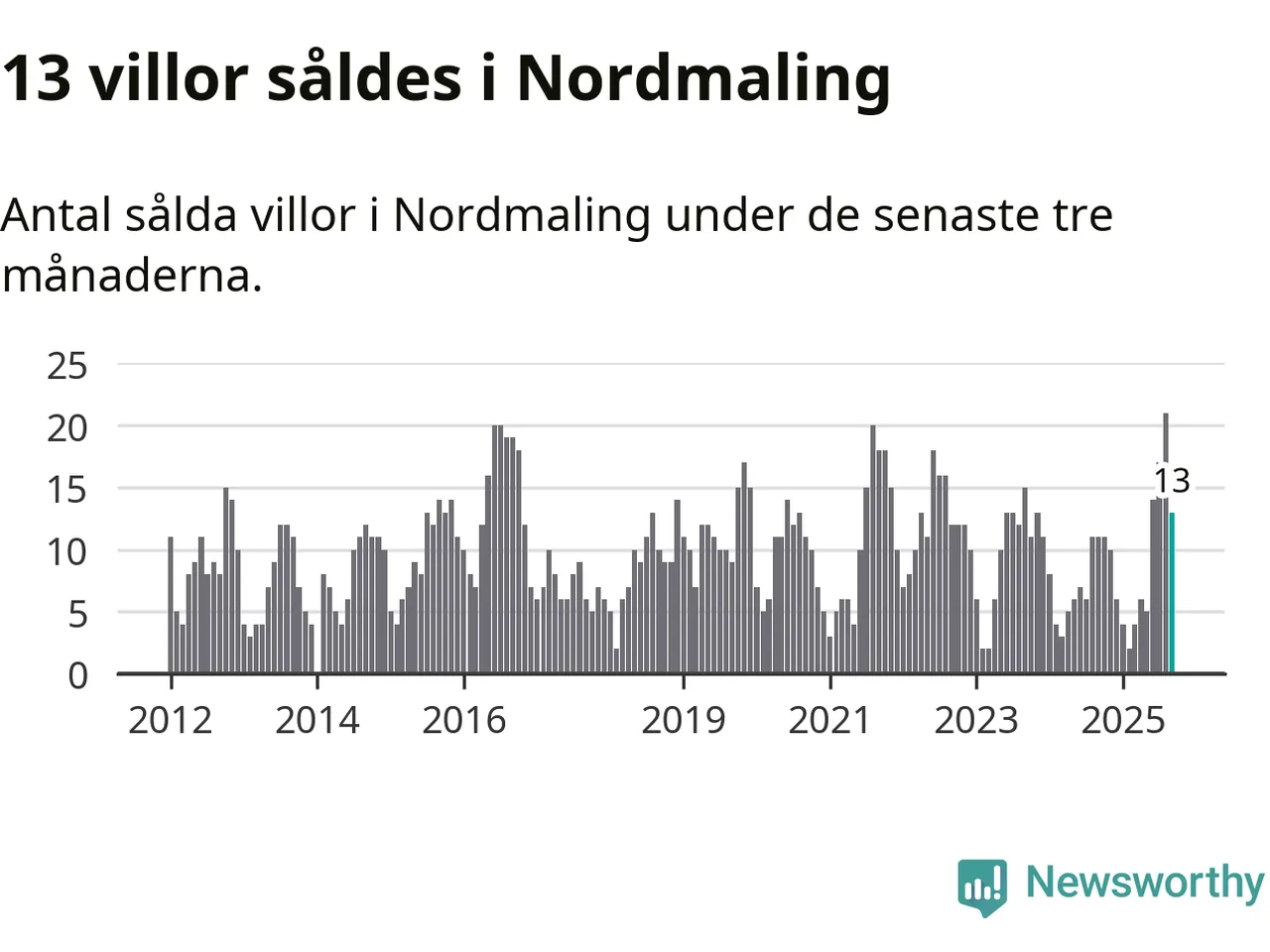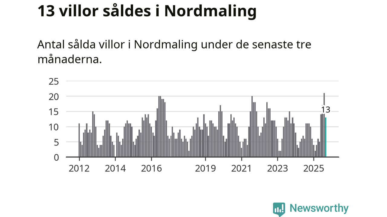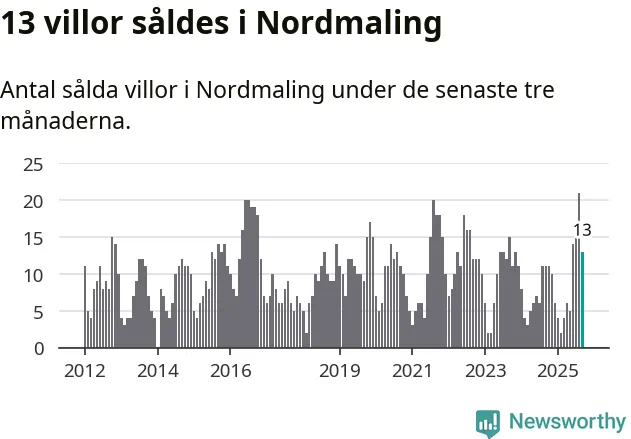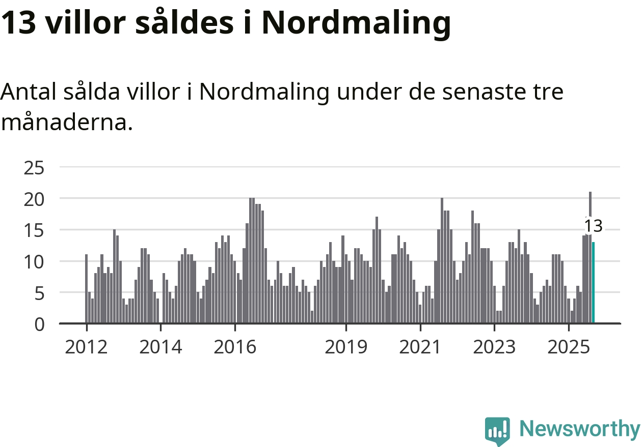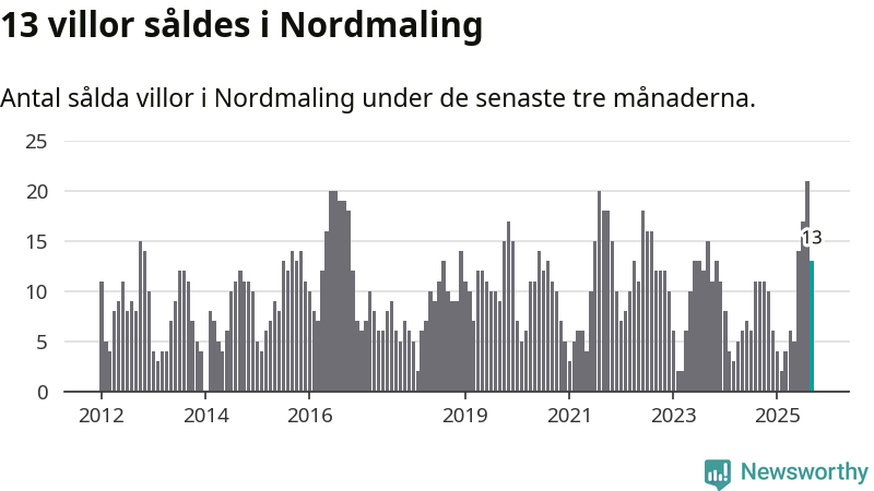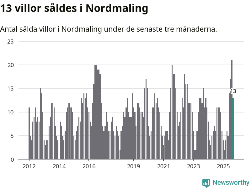 Mellan juli och september gjordes sammanlagt 13 affärer med villor i Nordmalings kommun. Det kan jämföras med elva vid motsvarande tid i fjol.