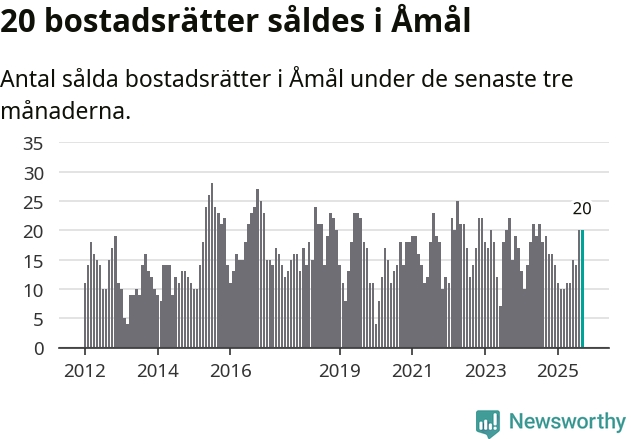 Mellan juli och september gjordes sammanlagt 20 affärer med bostadsrätter i Åmåls kommun. Det kan jämföras med 19 vid motsvarande tid i fjol.