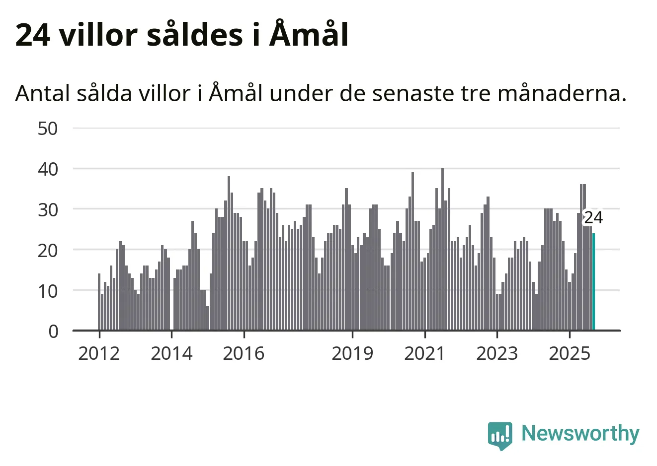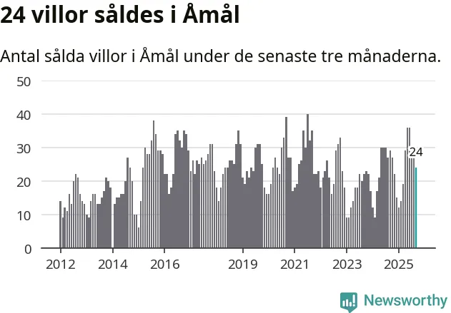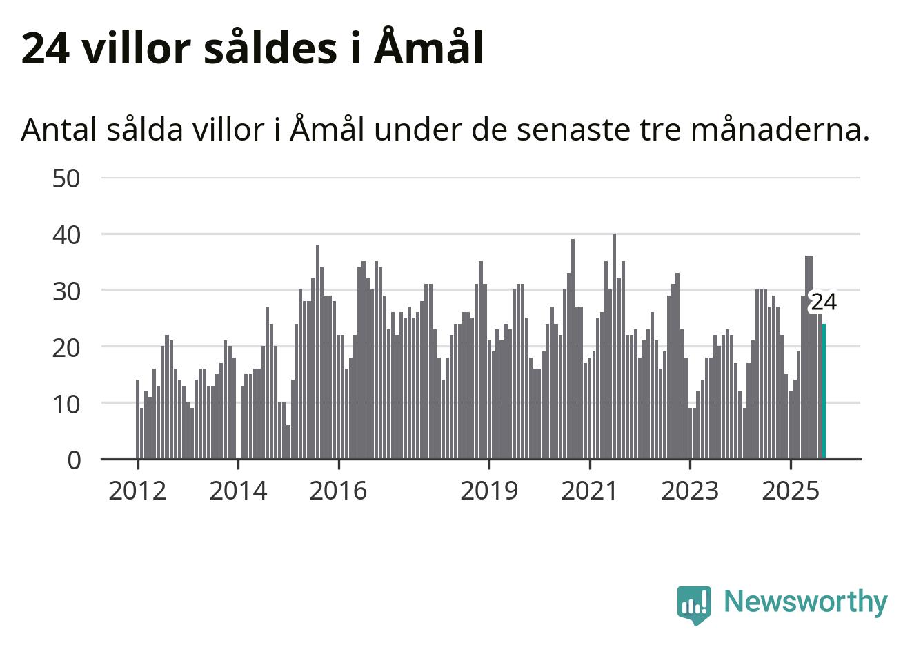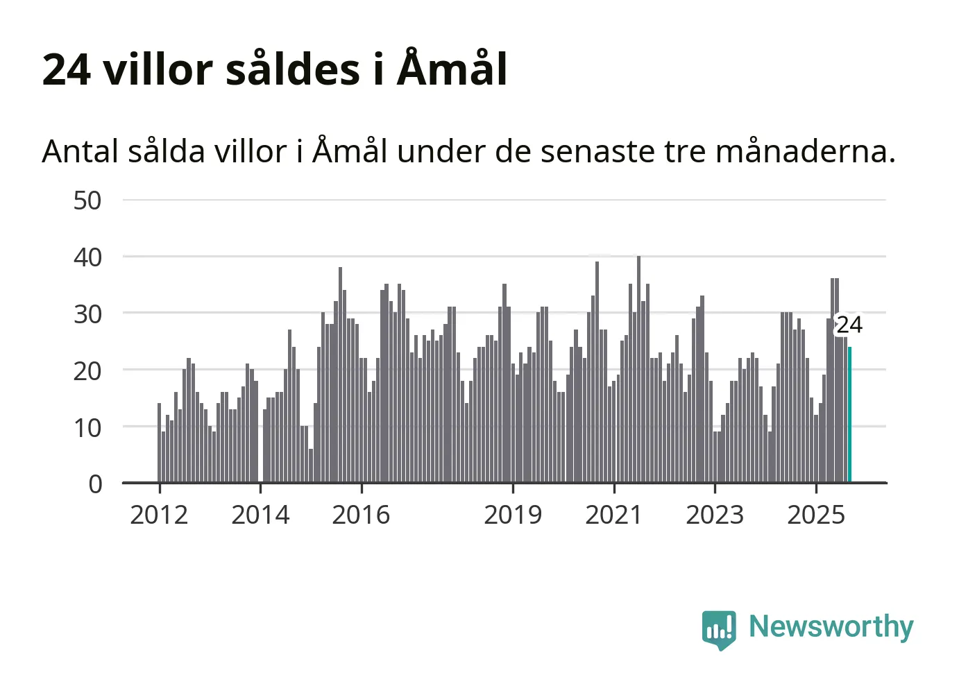 Mellan juli och september gjordes sammanlagt 24 affärer med villor i Åmåls kommun. Det kan jämföras med 29 vid motsvarande tid i fjol.