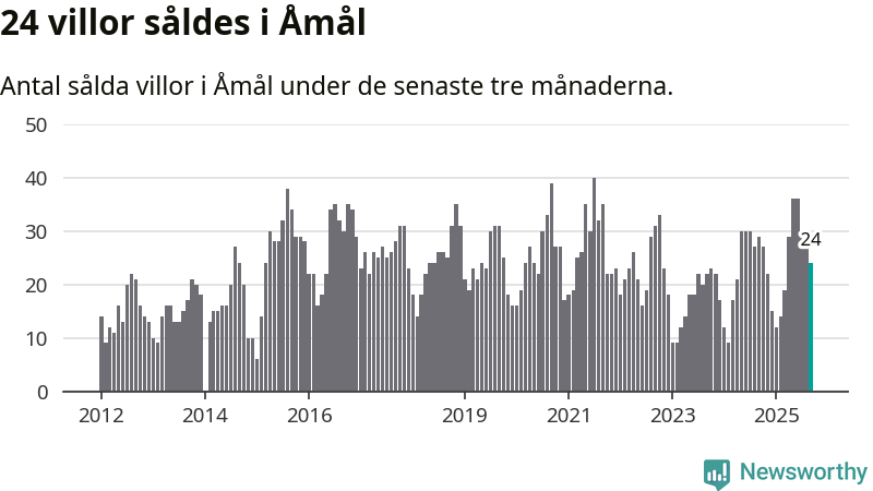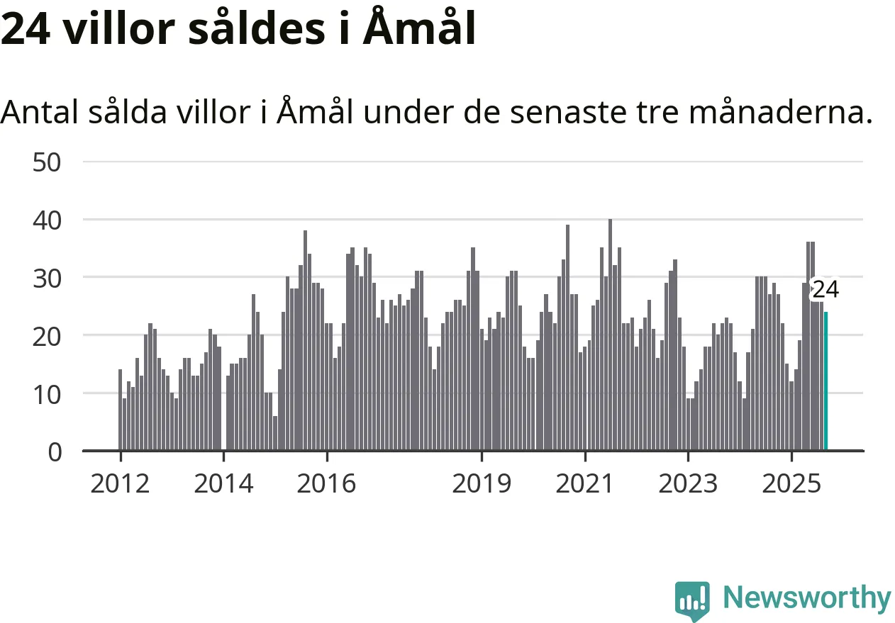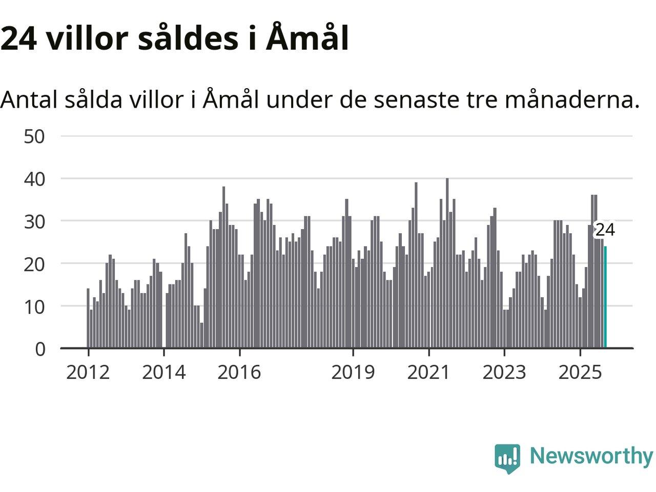 Mellan juli och september gjordes sammanlagt 24 affärer med villor i Åmåls kommun. Det kan jämföras med 29 vid motsvarande tid i fjol.
