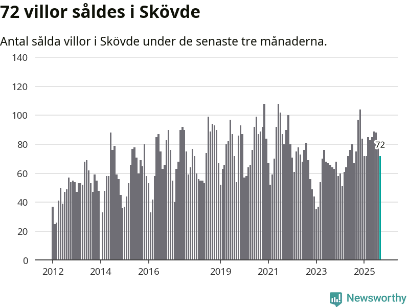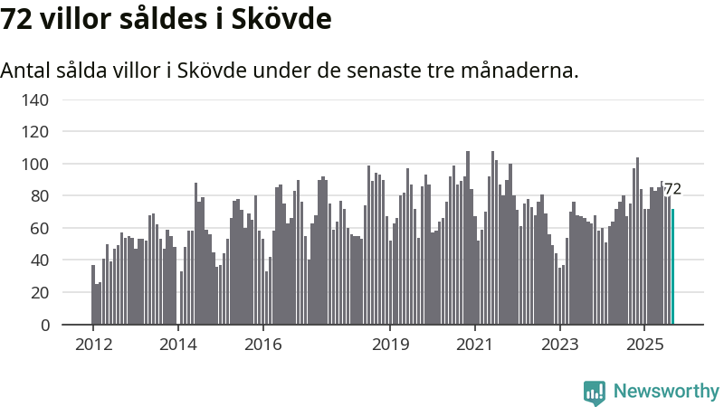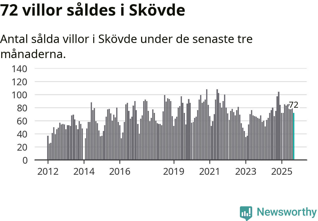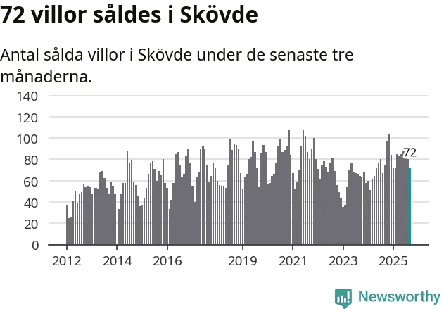 Sammanlagt såldes 72 villor i Skövde kommun mellan juli och september till ett genomsnittligt pris på 3,2 miljoner kronor. I fjol gjordes 75 affärer vid den här tiden på året.