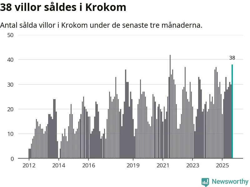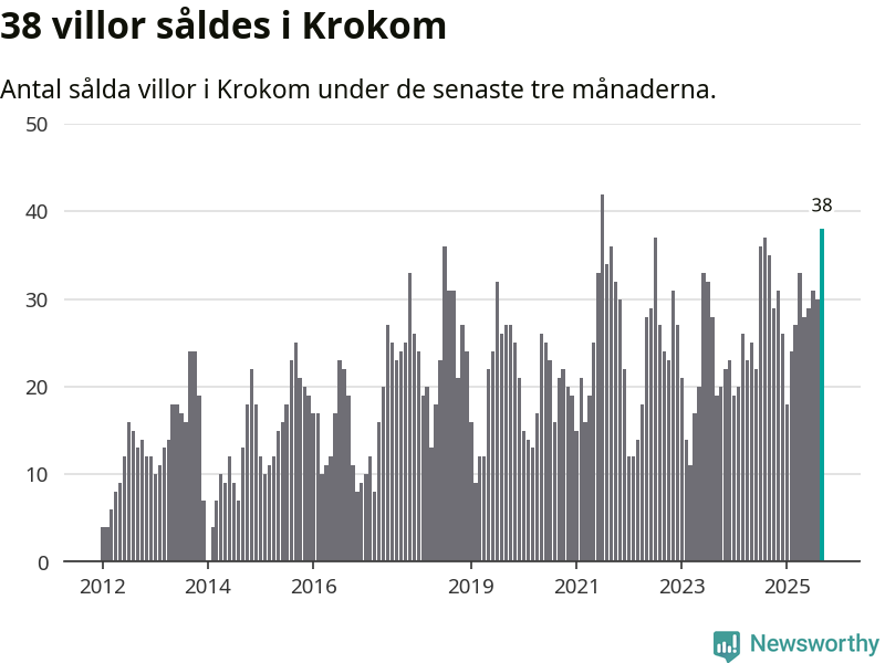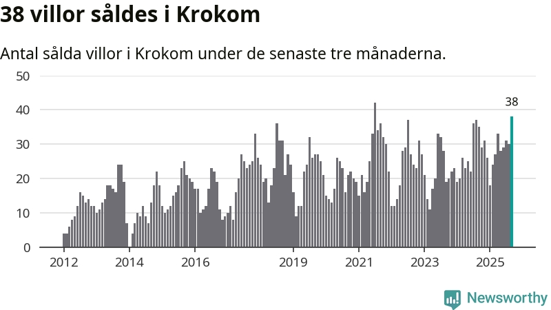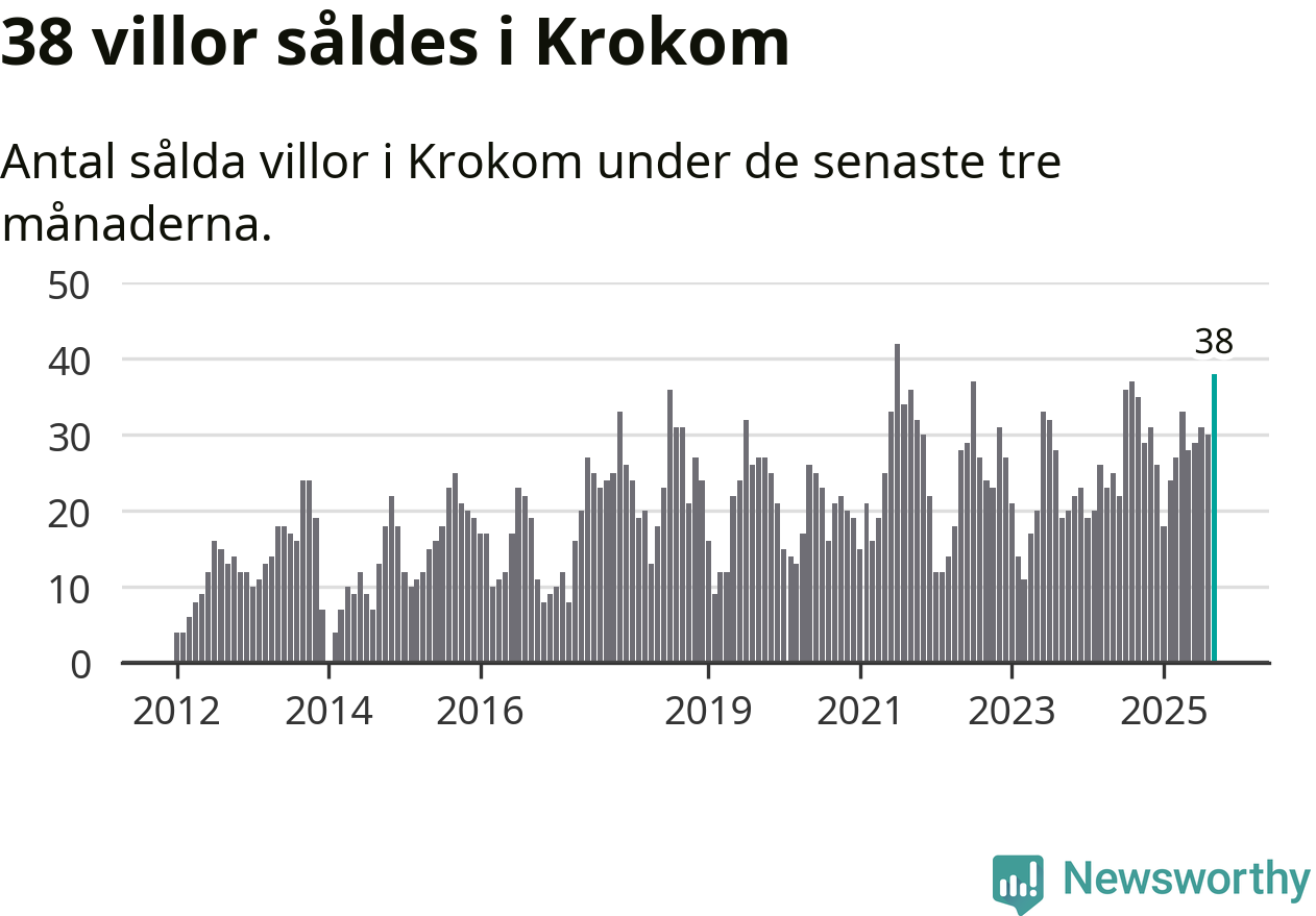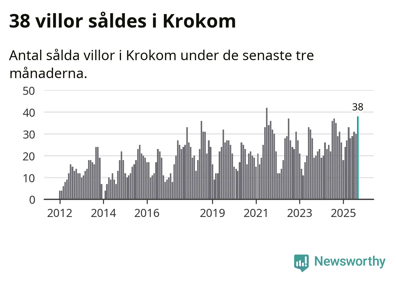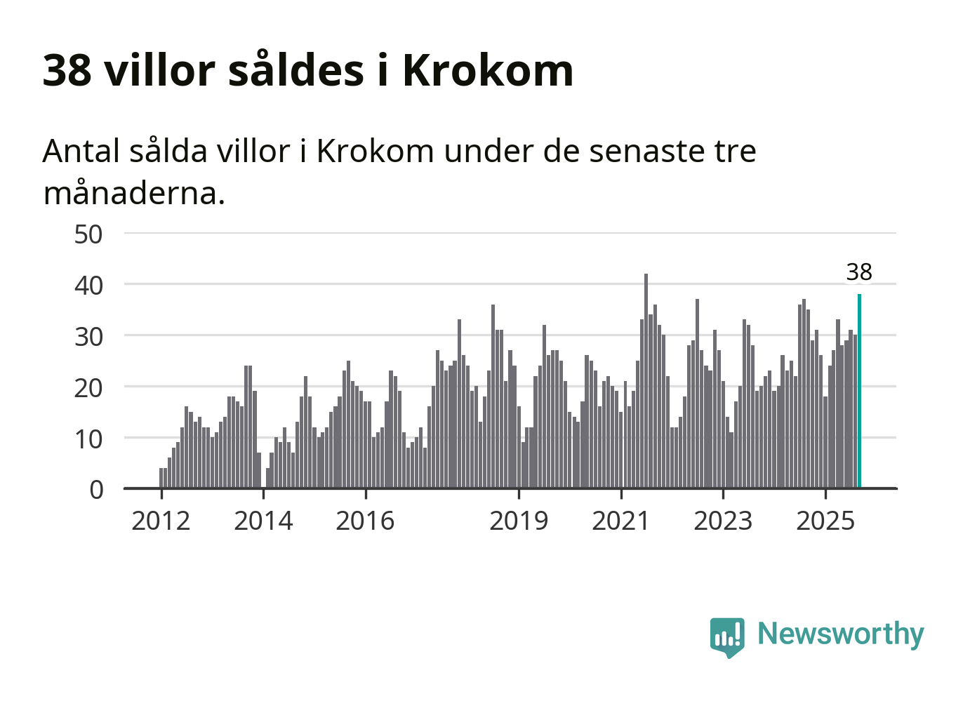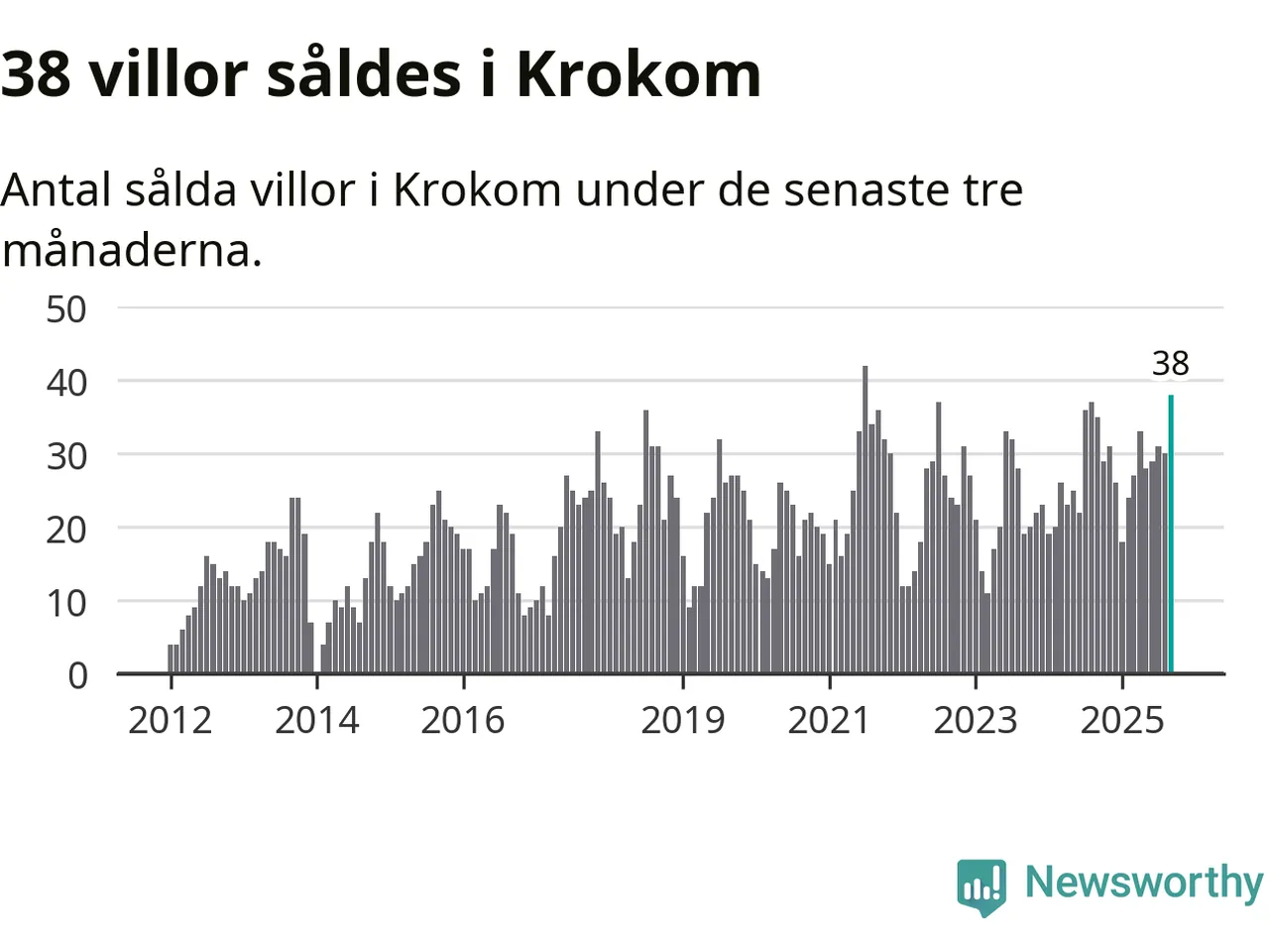 Mellan juli och september såldes 38 villor i Krokoms kommun. Det är fler än någon tremånadersperiod sedan 2021.