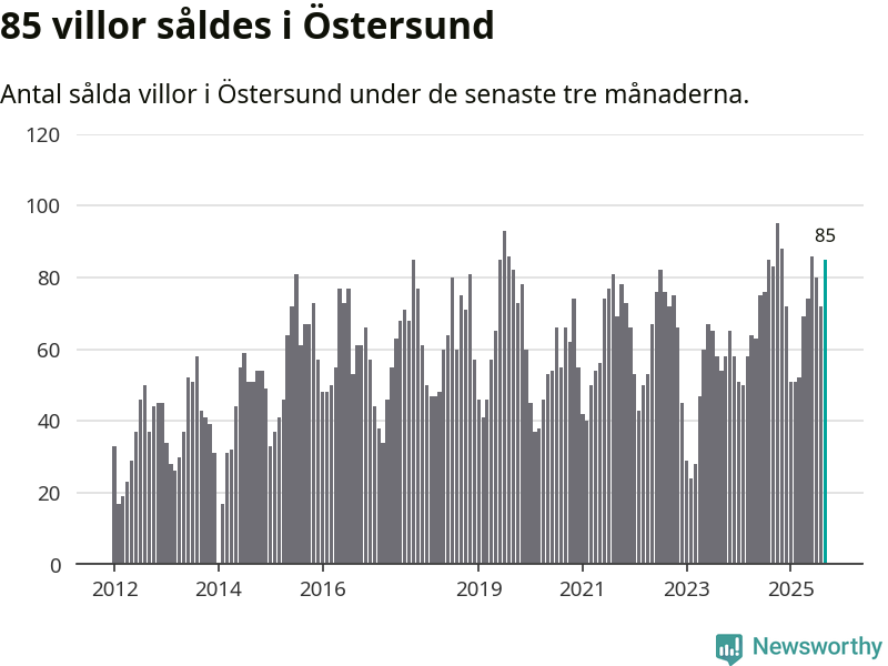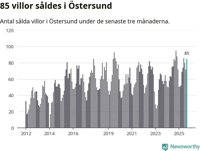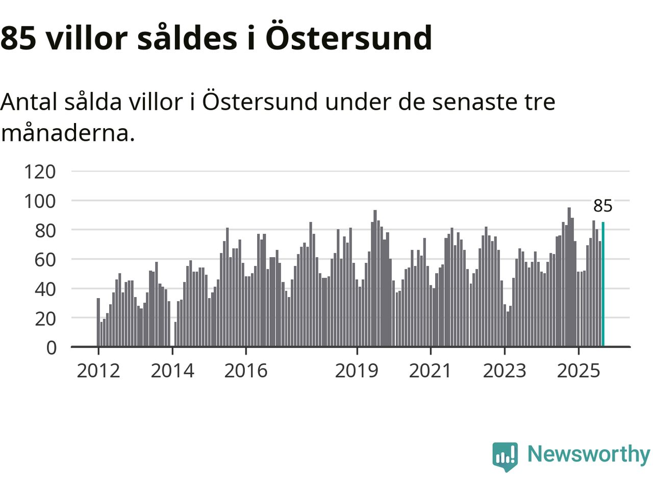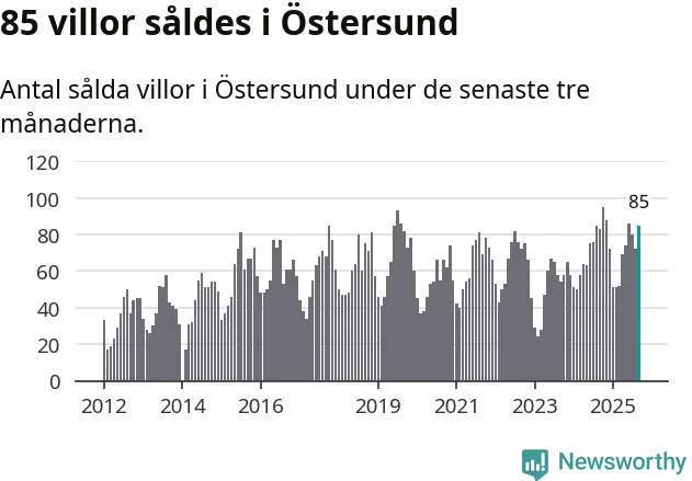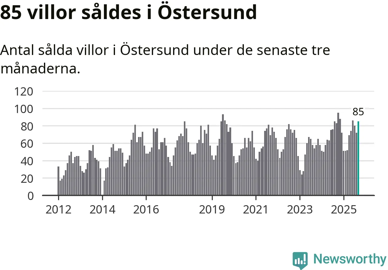 Sammanlagt såldes 85 villor i Östersunds kommun mellan juli och september till ett genomsnittligt pris på 3,7 miljoner kronor. I fjol gjordes 83 affärer vid den här tiden på året.