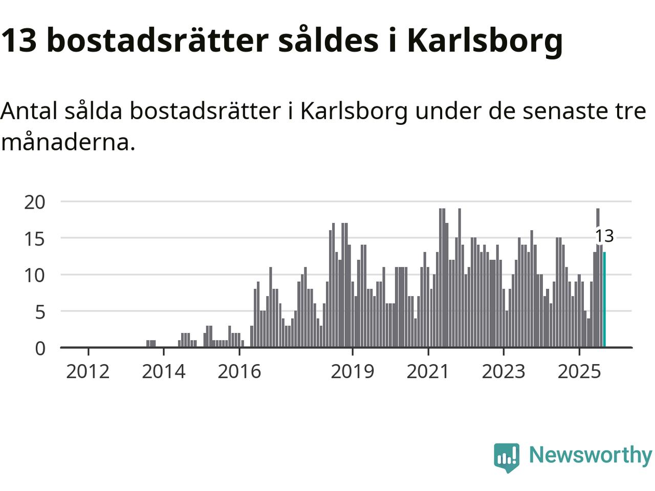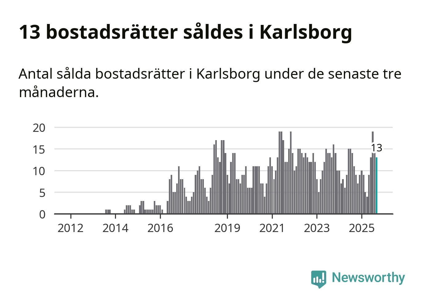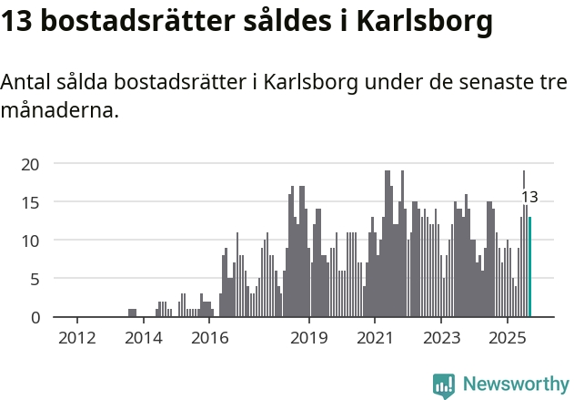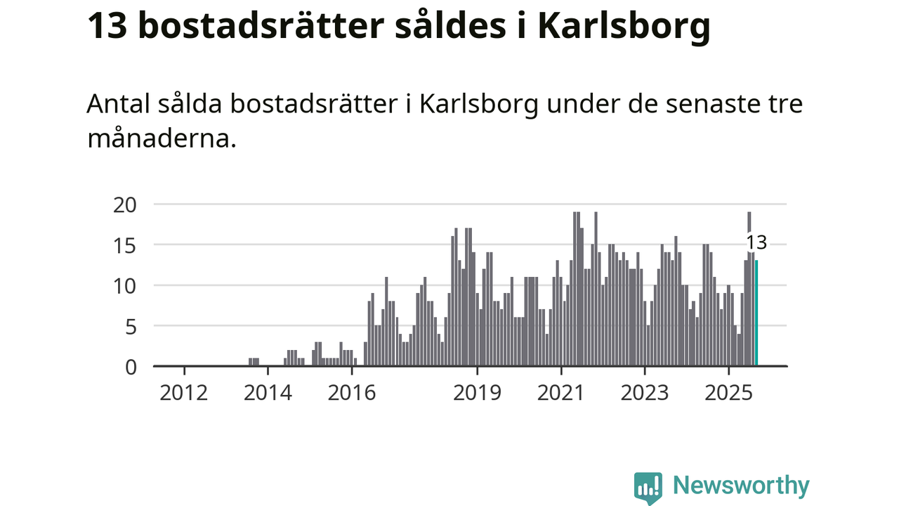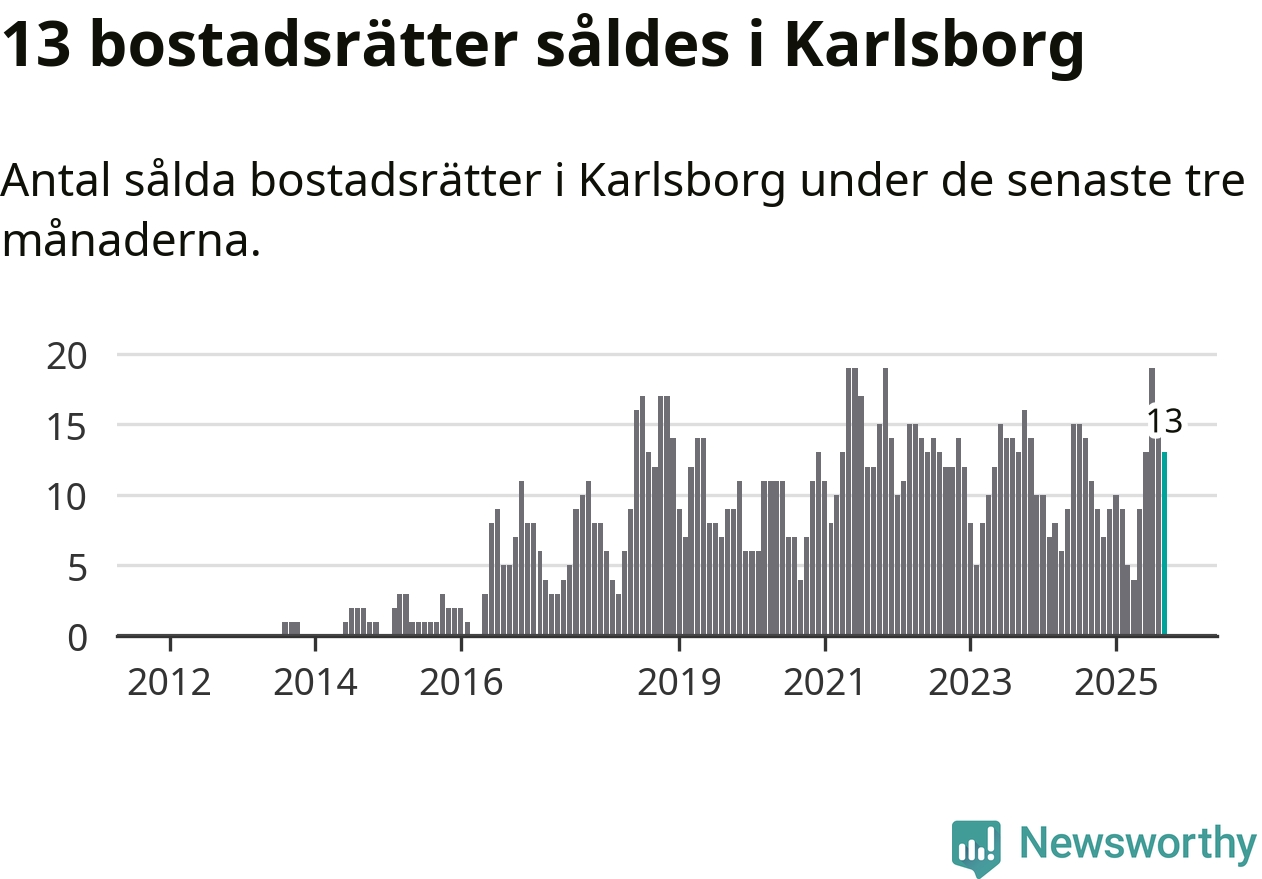 Mellan juli och september gjordes sammanlagt 13 affärer med bostadsrätter i Karlsborgs kommun. Det kan jämföras med elva vid motsvarande tid i fjol.