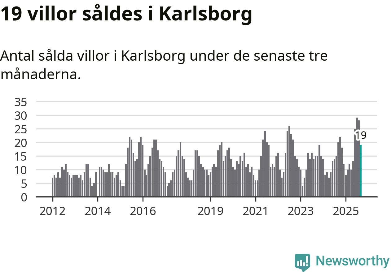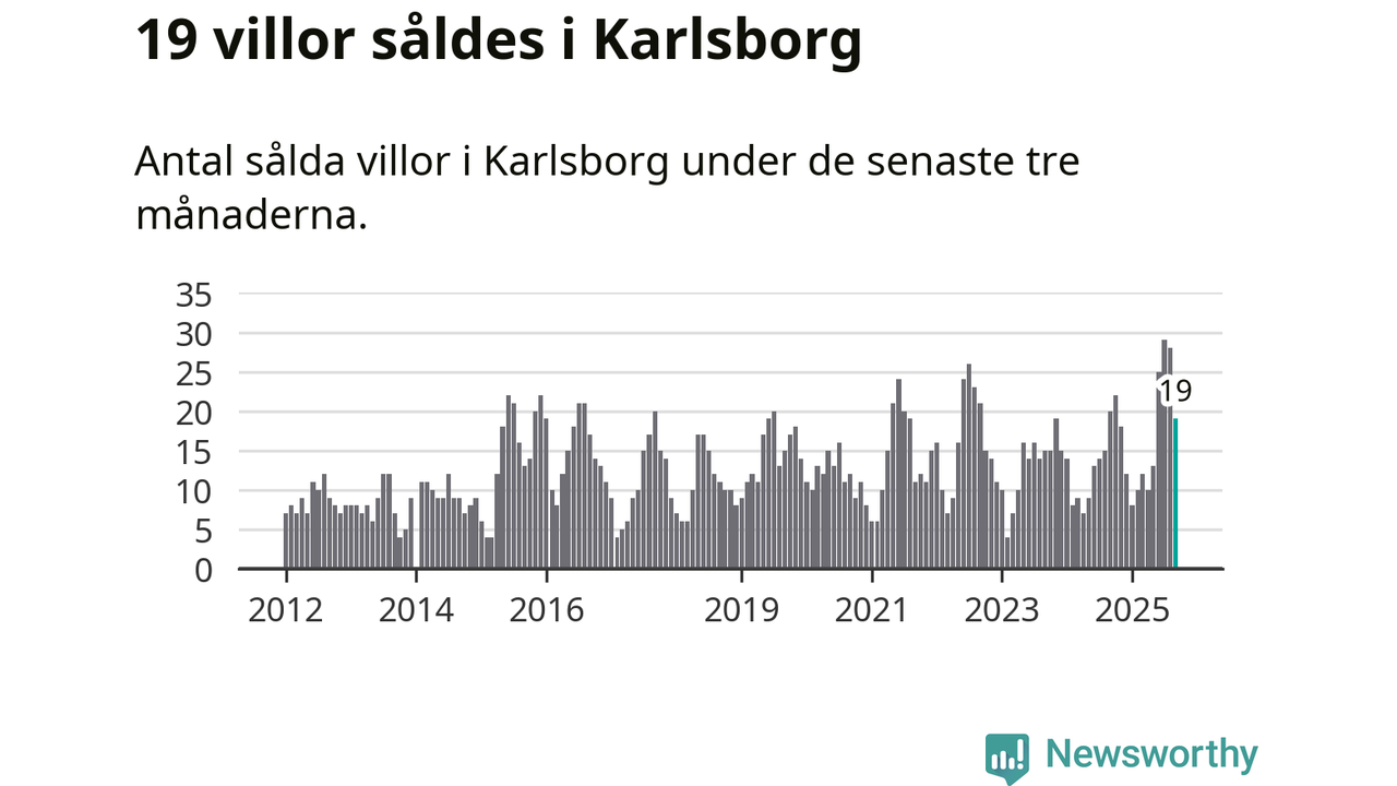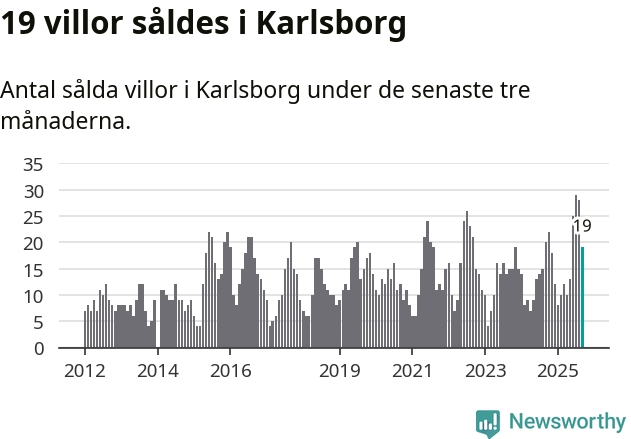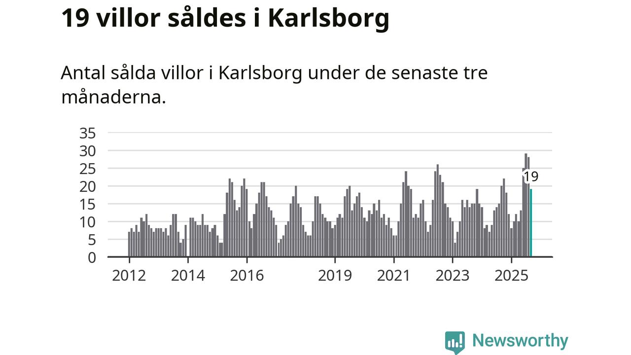 Mellan juli och september gjordes sammanlagt 19 affärer med villor i Karlsborgs kommun. Det kan jämföras med 20 vid motsvarande tid i fjol.
