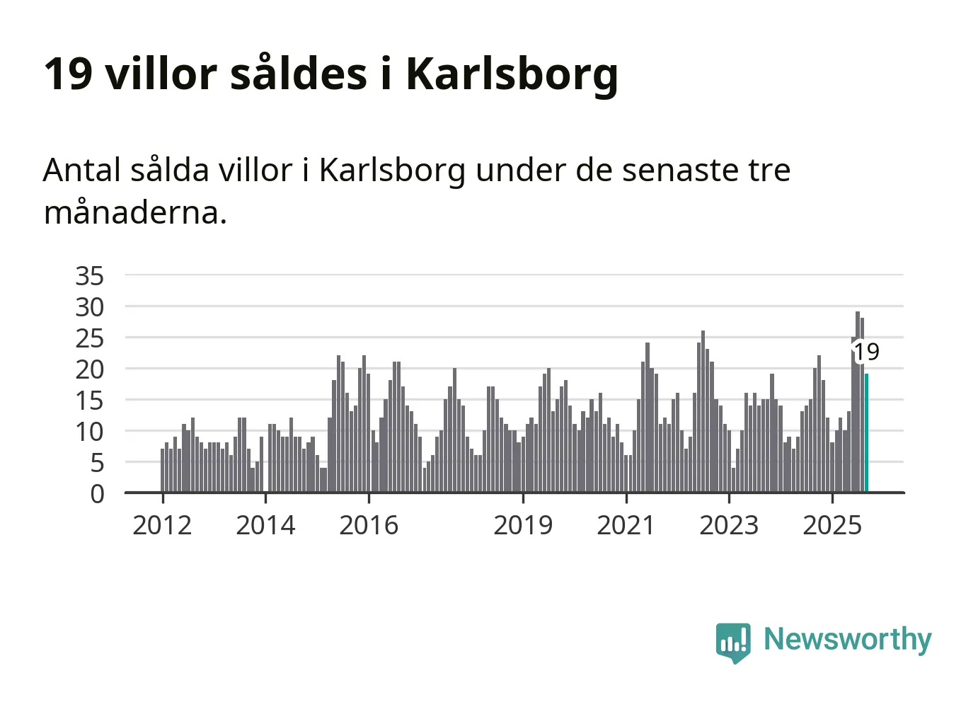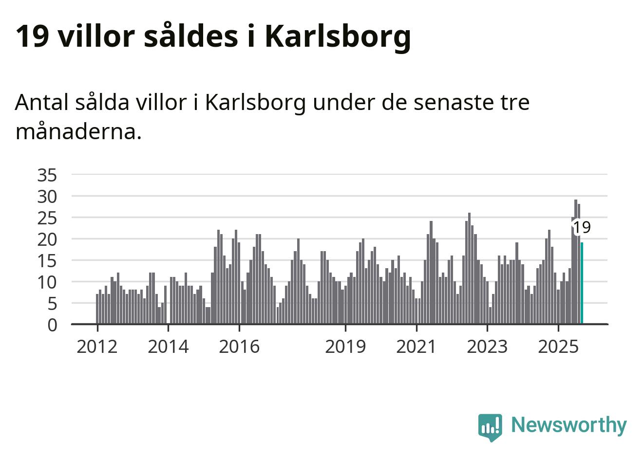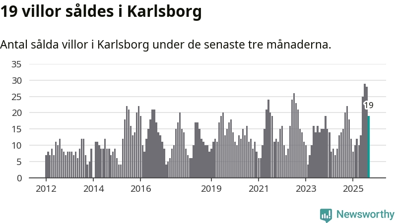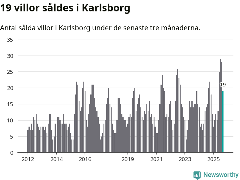 Mellan juli och september gjordes sammanlagt 19 affärer med villor i Karlsborgs kommun. Det kan jämföras med 20 vid motsvarande tid i fjol.