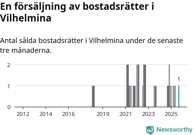 Mellan juli och september gjordes sammanlagt en affär med bostadsrätter i Vilhelmina kommun. Det är lika många affärer som vid motsvarande tid i fjol.