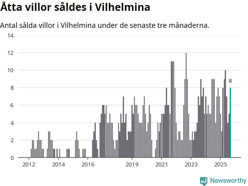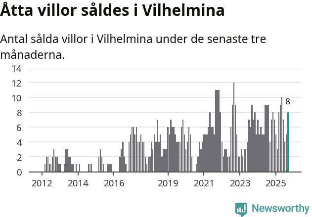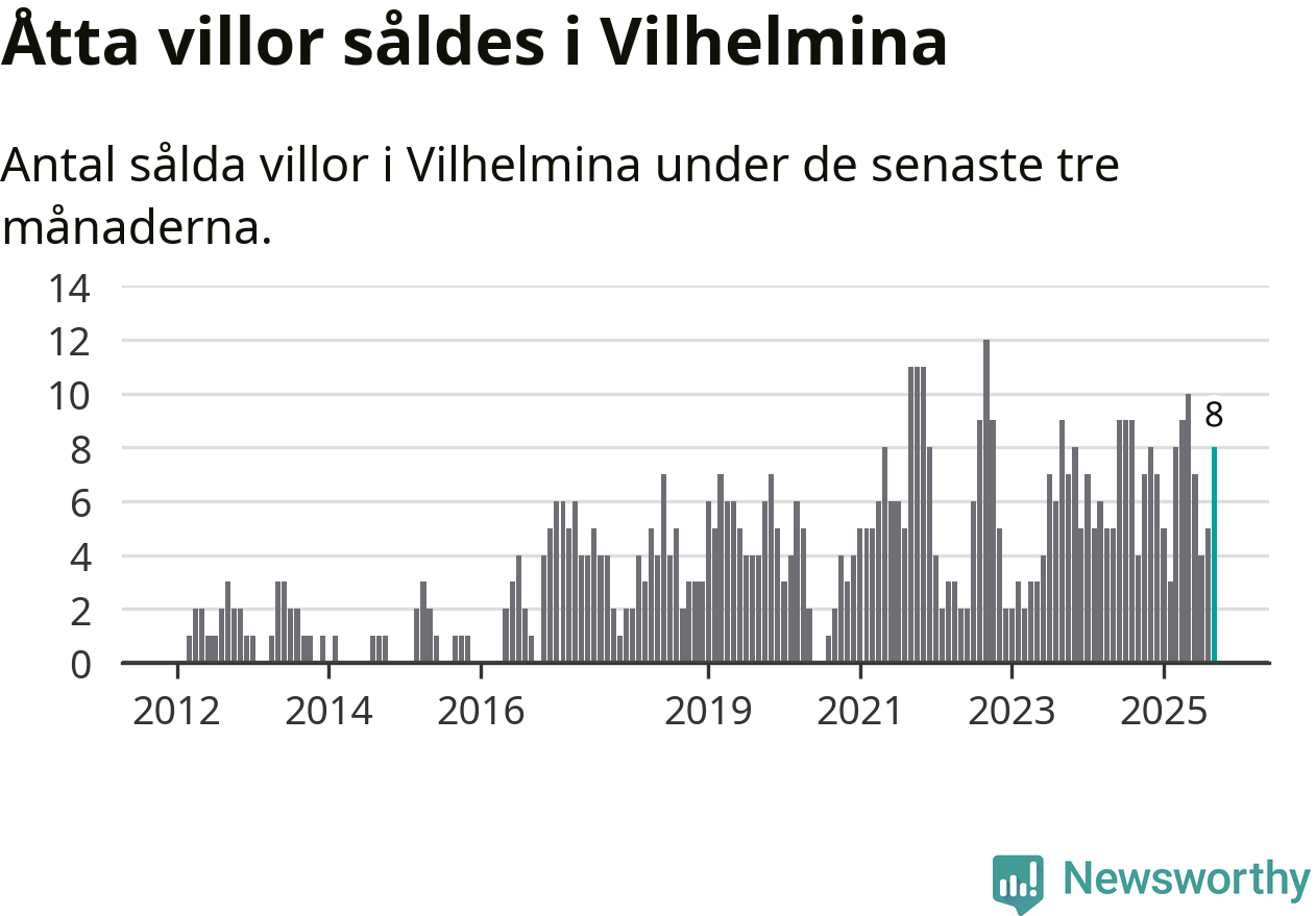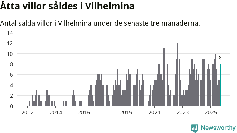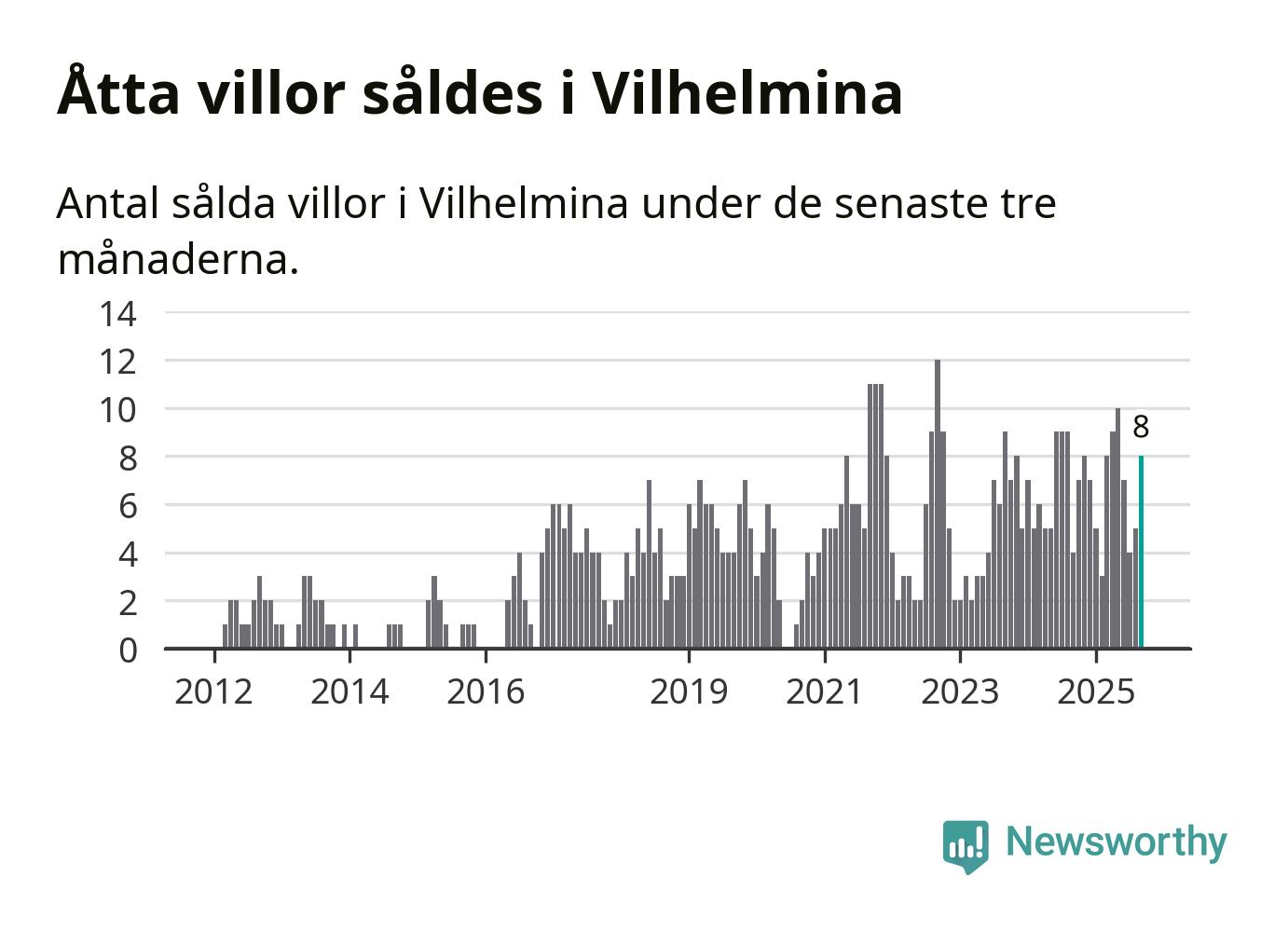 Mellan juli och september gjordes sammanlagt åtta affärer med villor i Vilhelmina kommun. Det kan jämföras med fyra vid motsvarande tid i fjol.
