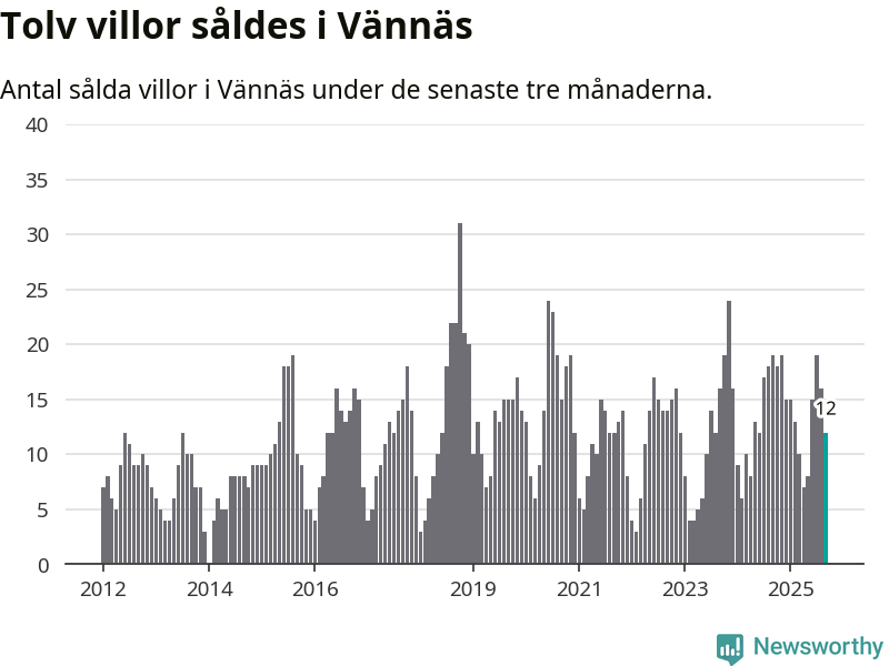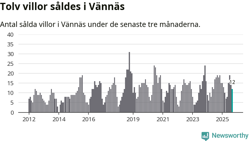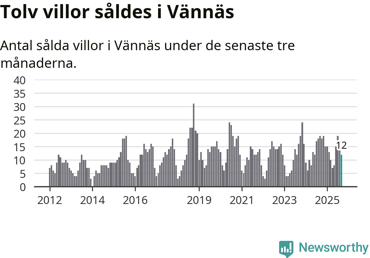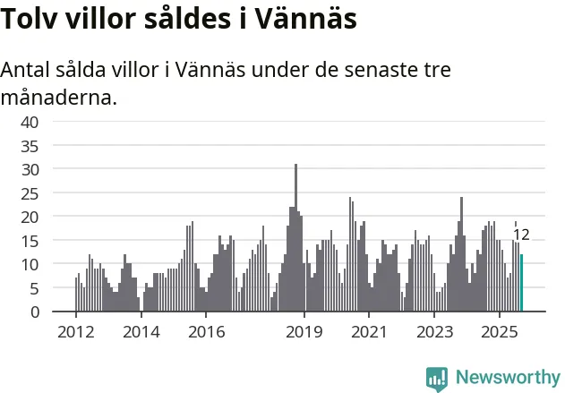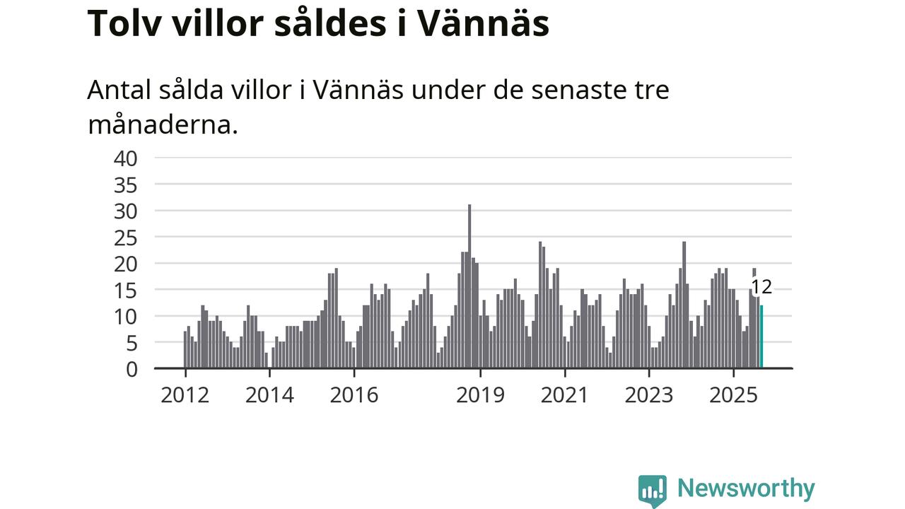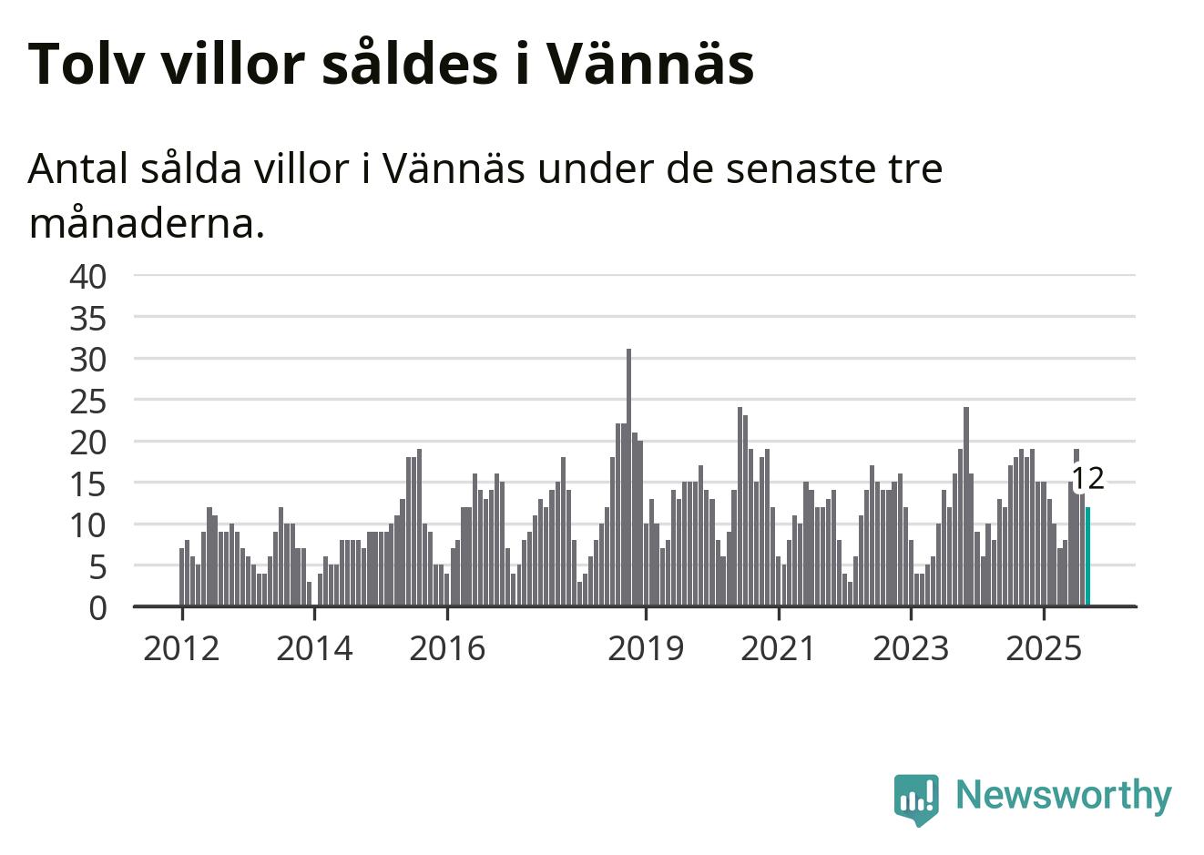 Mellan juli och september gjordes sammanlagt tolv affärer med villor i Vännäs kommun. Det kan jämföras med 19 vid motsvarande tid i fjol.
