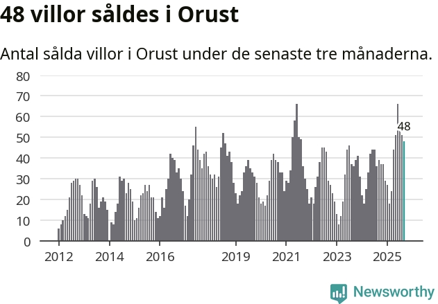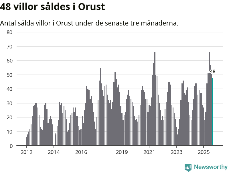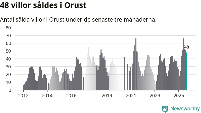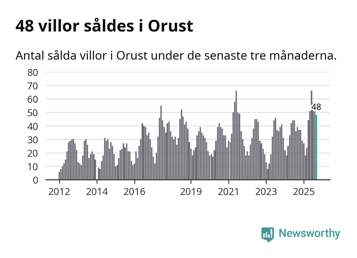 Mellan juli och september gjordes sammanlagt 48 affärer med villor i Orusts kommun. Det kan jämföras med 39 vid motsvarande tid i fjol.