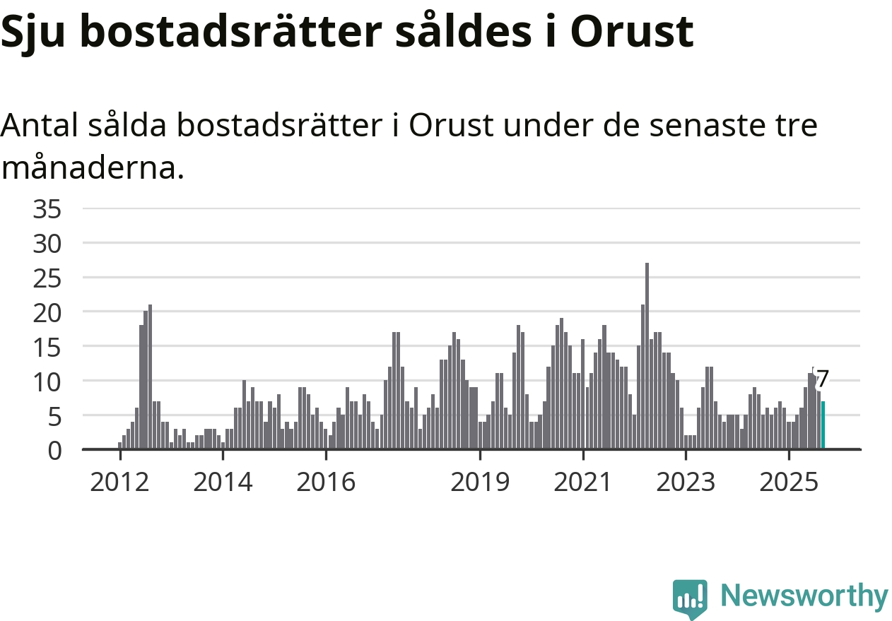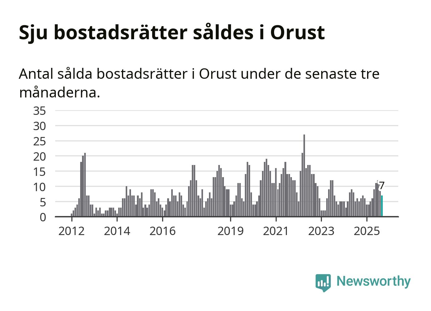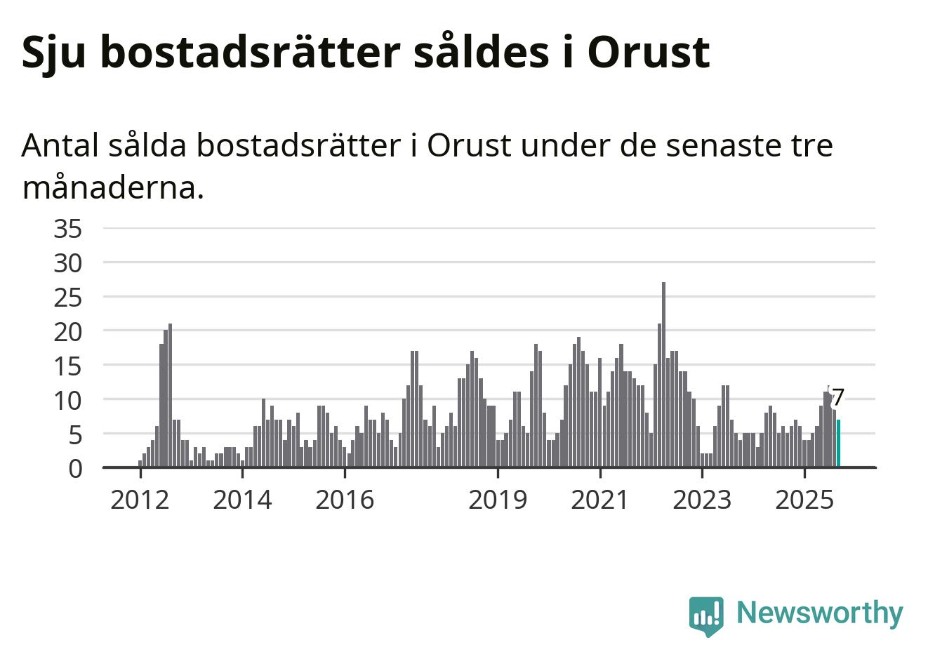 Mellan juli och september gjordes sammanlagt sju affärer med bostadsrätter i Orusts kommun. Det kan jämföras med fem vid motsvarande tid i fjol.