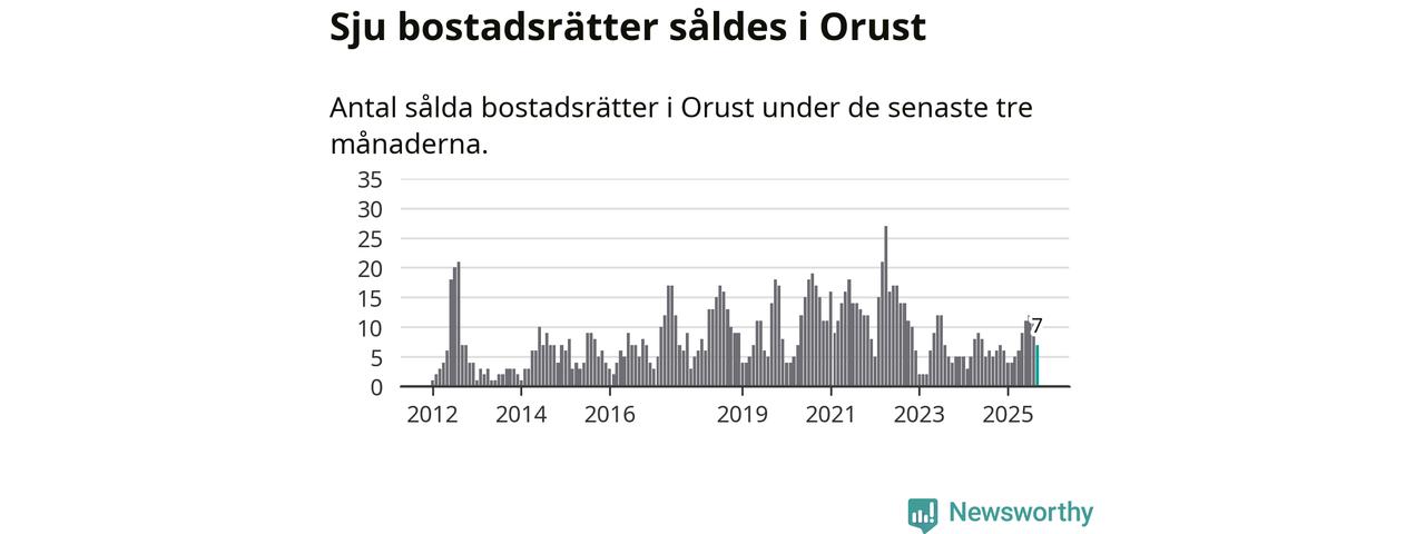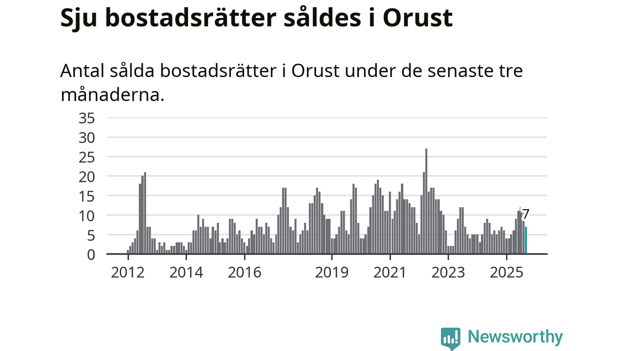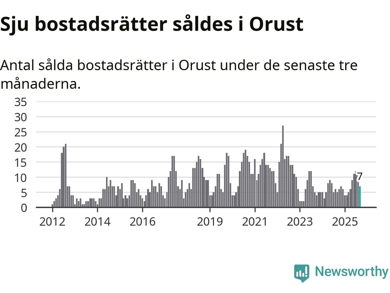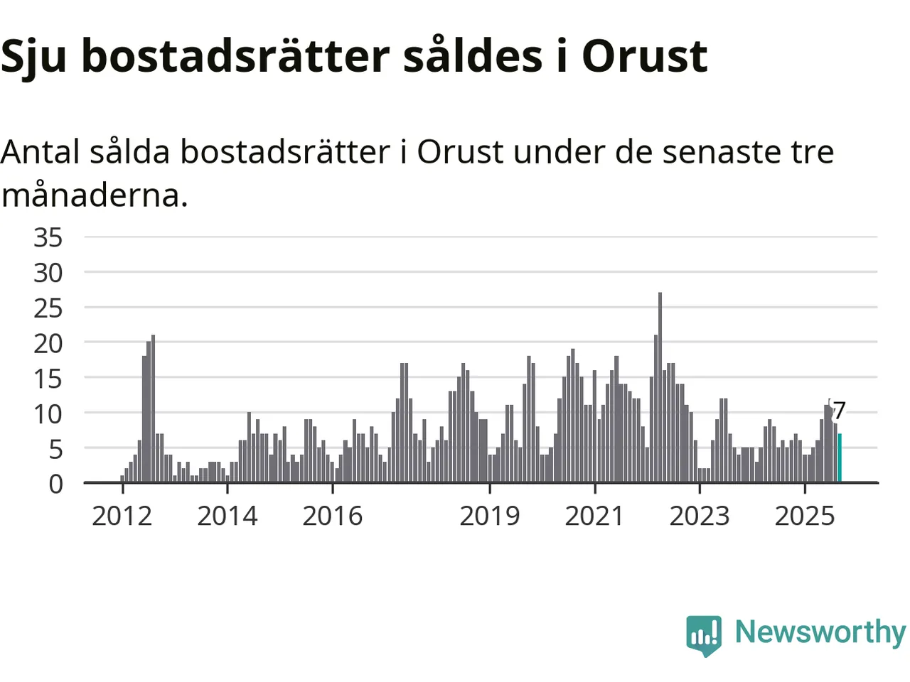 Mellan juli och september gjordes sammanlagt sju affärer med bostadsrätter i Orusts kommun. Det kan jämföras med fem vid motsvarande tid i fjol.