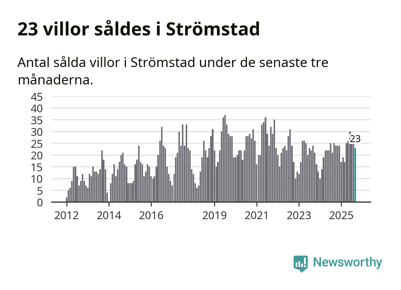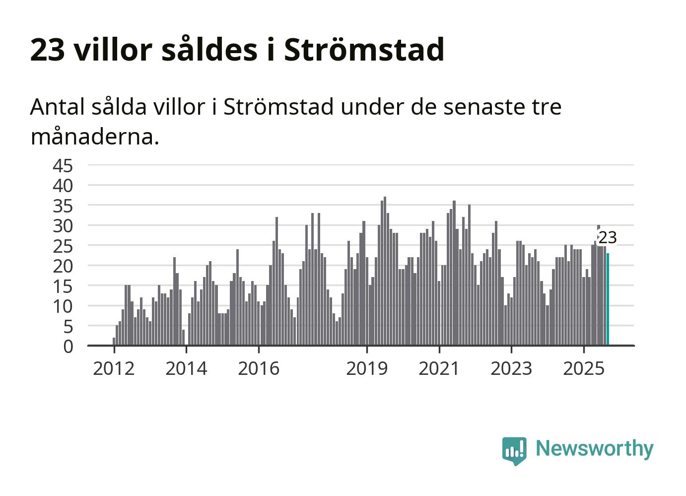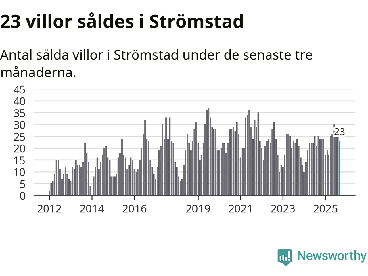 Mellan juli och september gjordes sammanlagt 23 affärer med villor i Strömstads kommun. Det kan jämföras med 25 vid motsvarande tid i fjol.