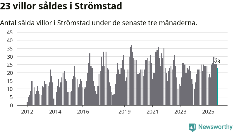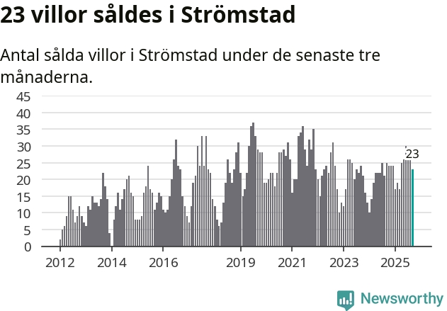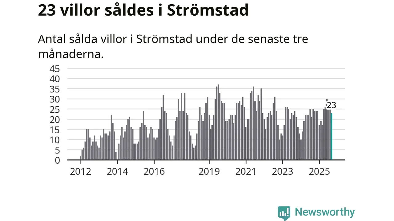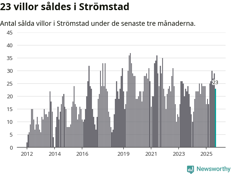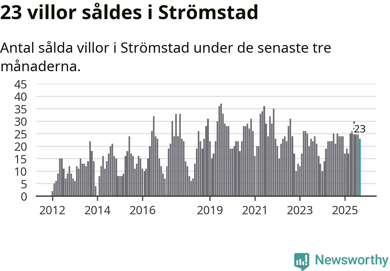 Mellan juli och september gjordes sammanlagt 23 affärer med villor i Strömstads kommun. Det kan jämföras med 25 vid motsvarande tid i fjol.