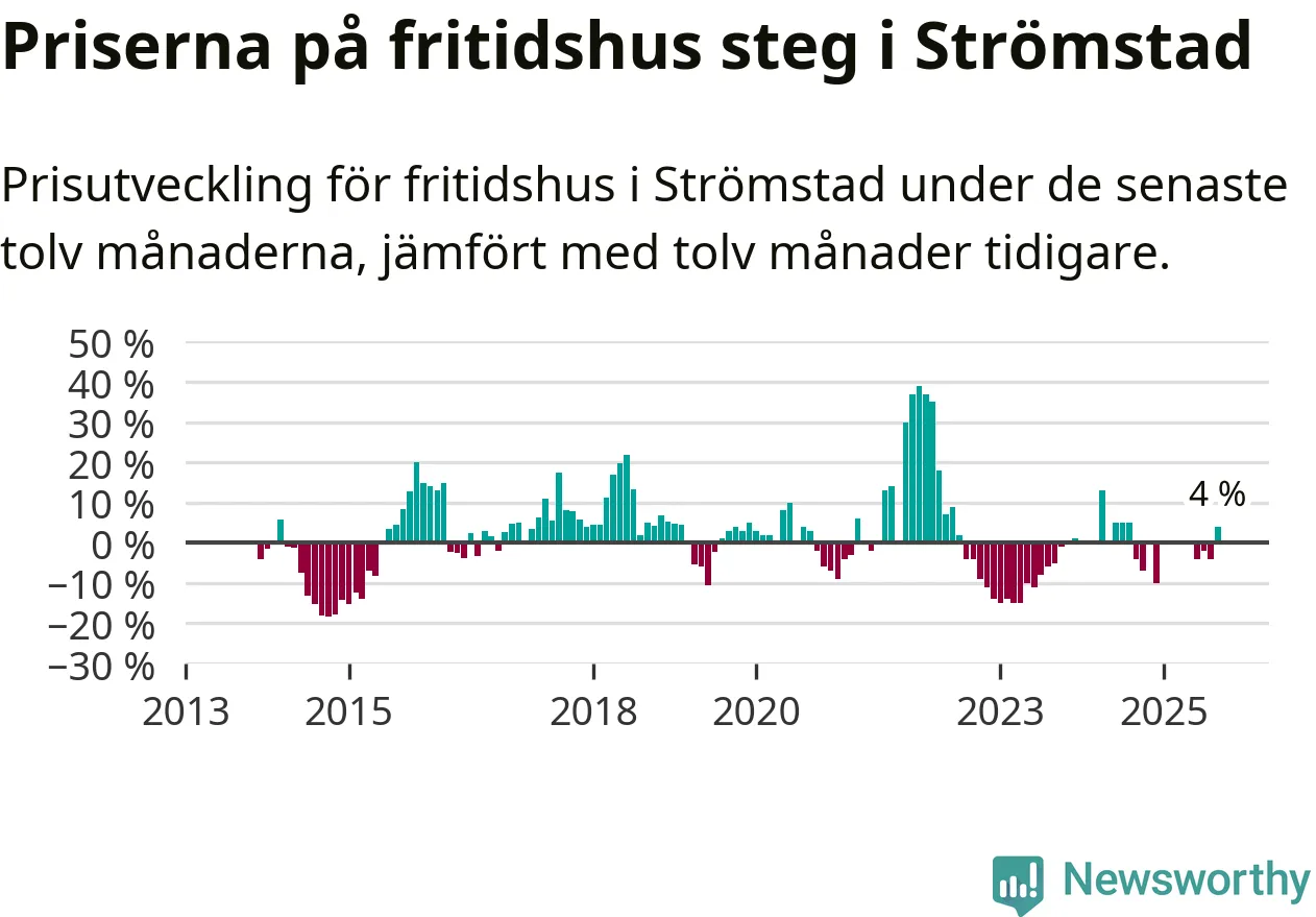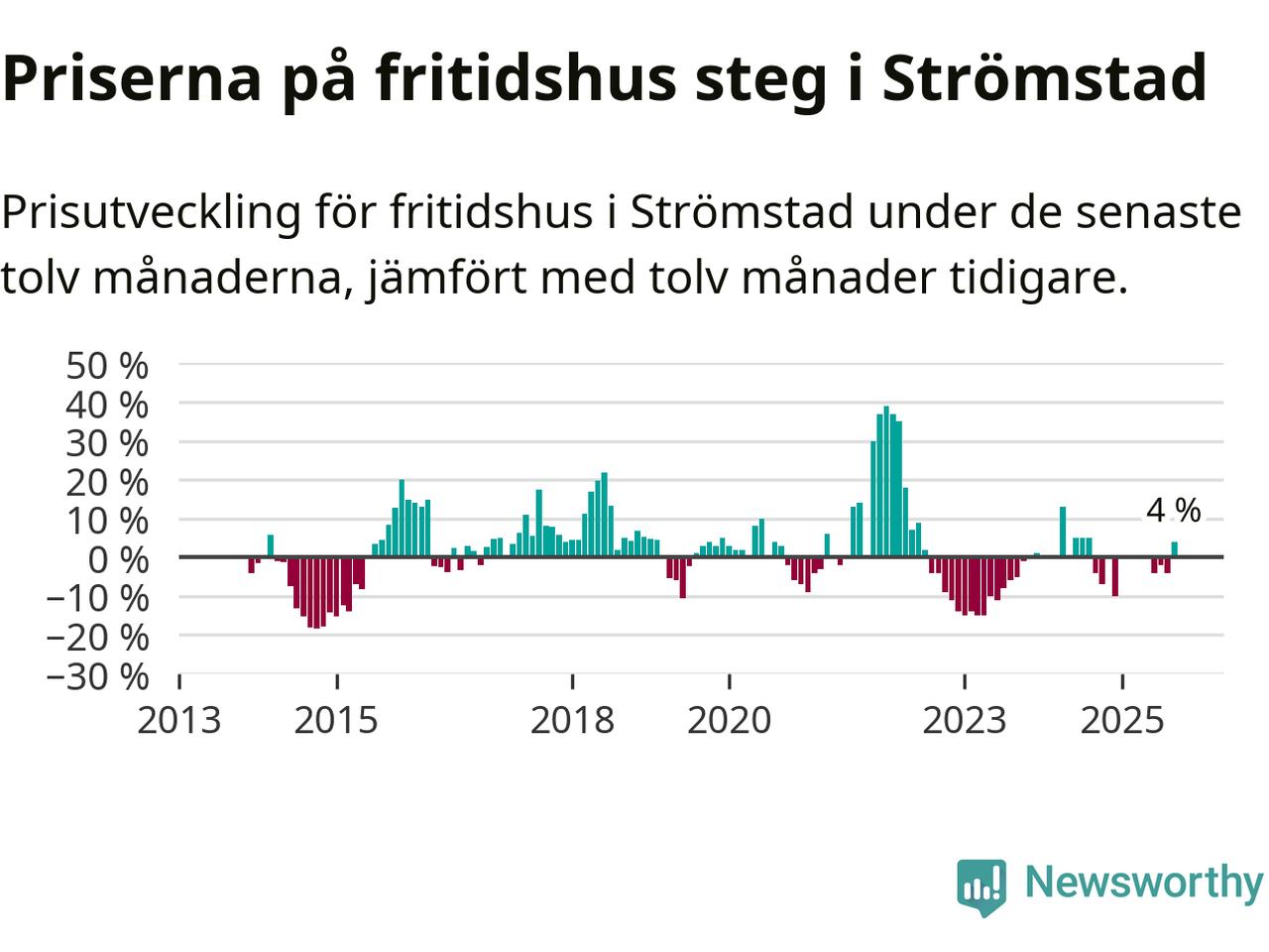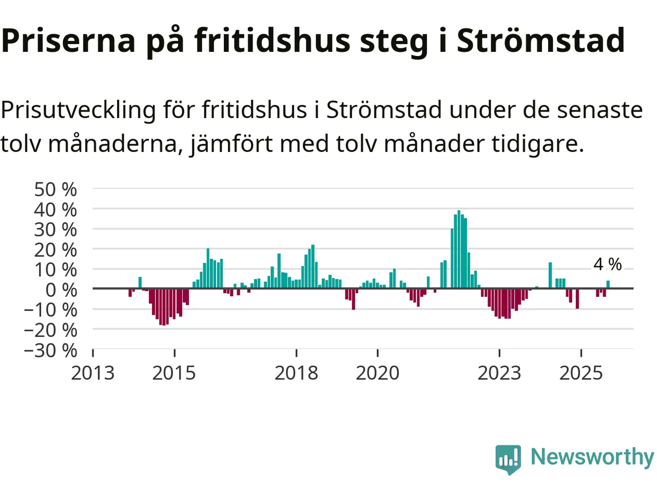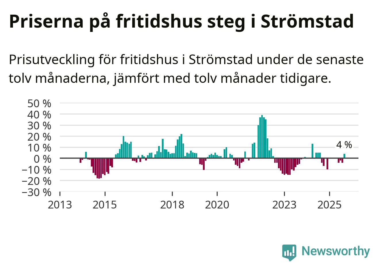 Priserna på fritidshus har gått upp i Strömstads kommun. Medelpriset på försäljningarna under de senaste tolv månaderna visar på en uppgång med 4 procent.