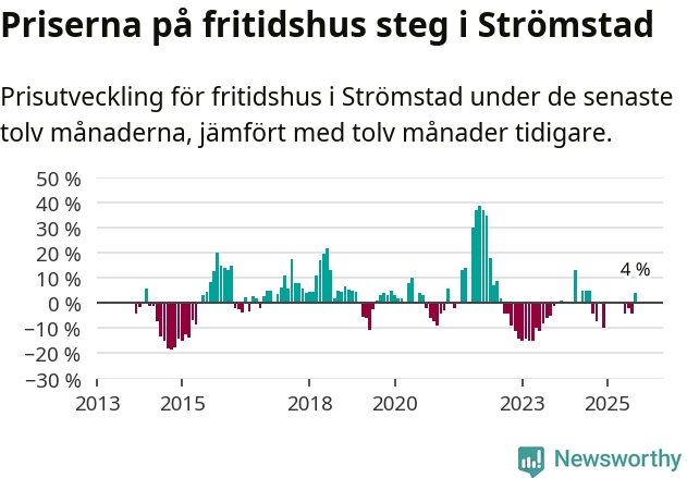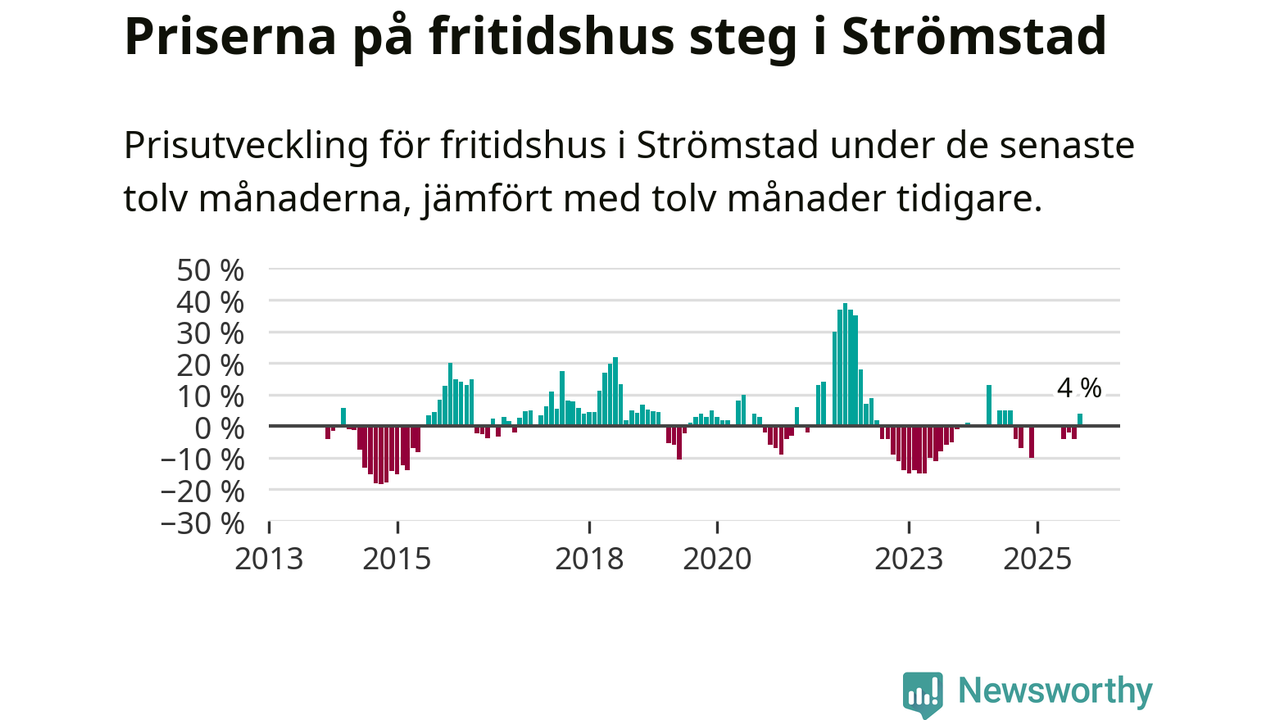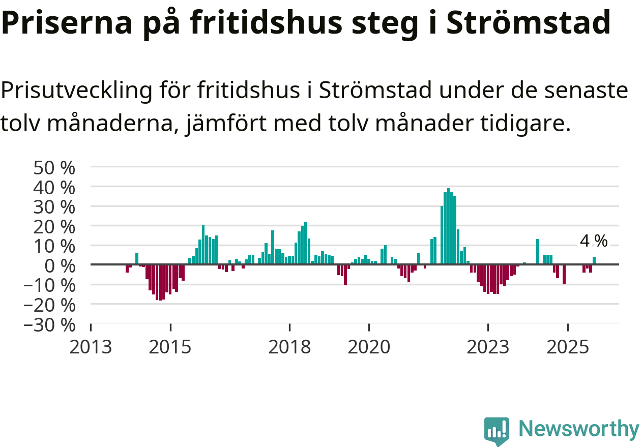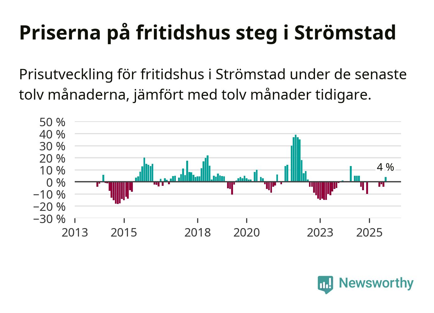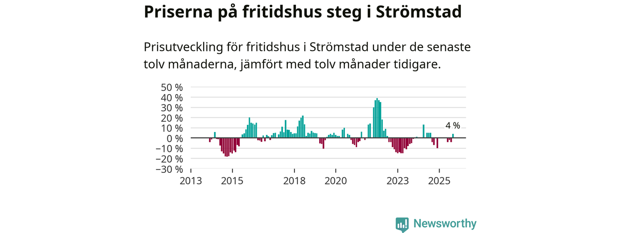 Priserna på fritidshus har gått upp i Strömstads kommun. Medelpriset på försäljningarna under de senaste tolv månaderna visar på en uppgång med 4 procent.