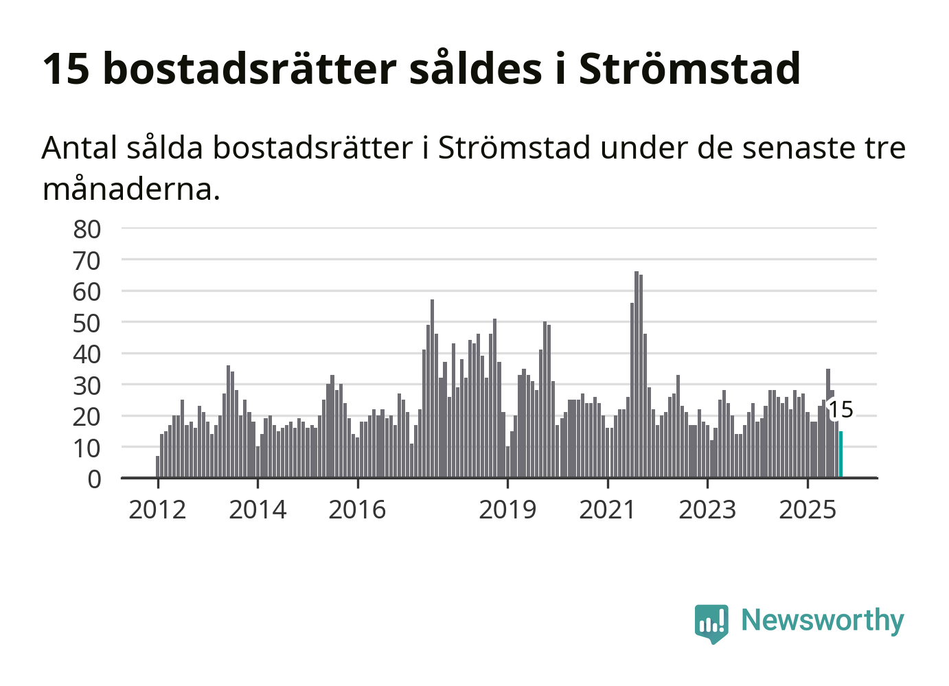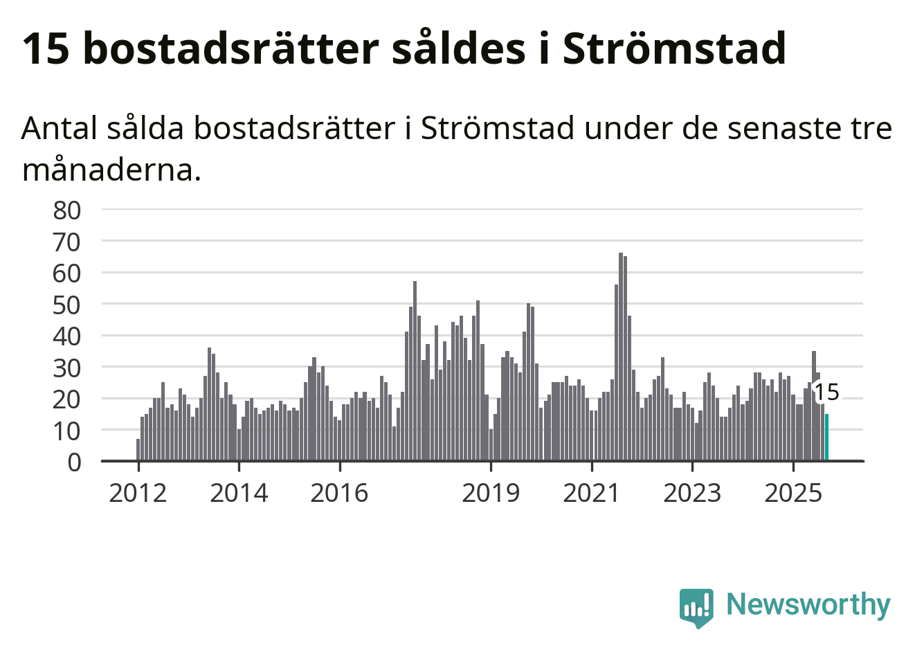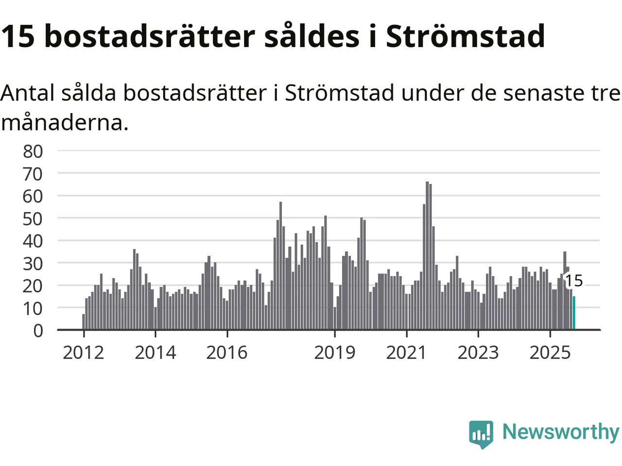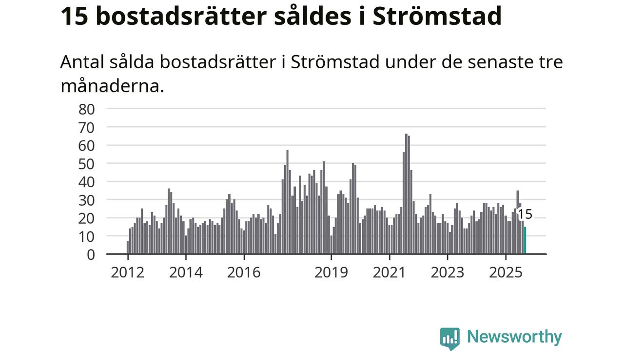 Mellan juli och september gjordes sammanlagt 15 affärer med bostadsrätter i Strömstads kommun. Det kan jämföras med 22 vid motsvarande tid i fjol.