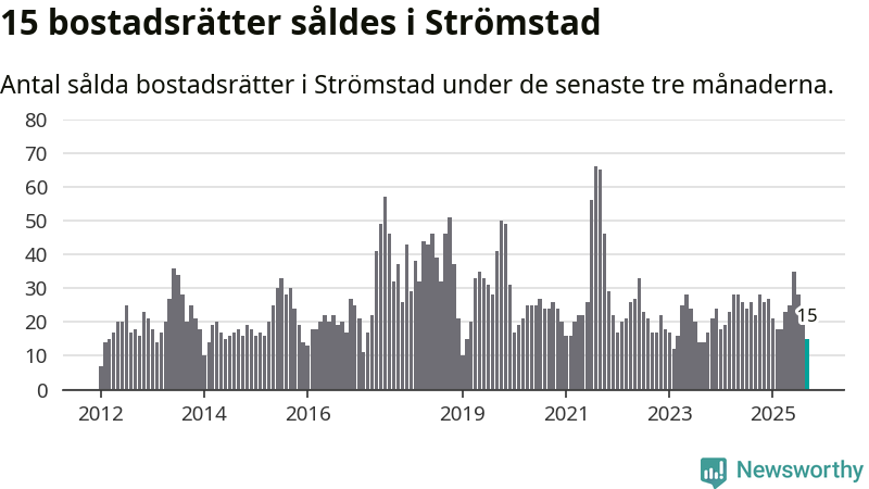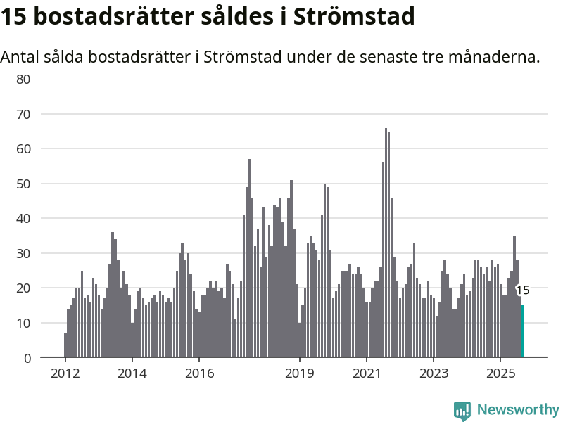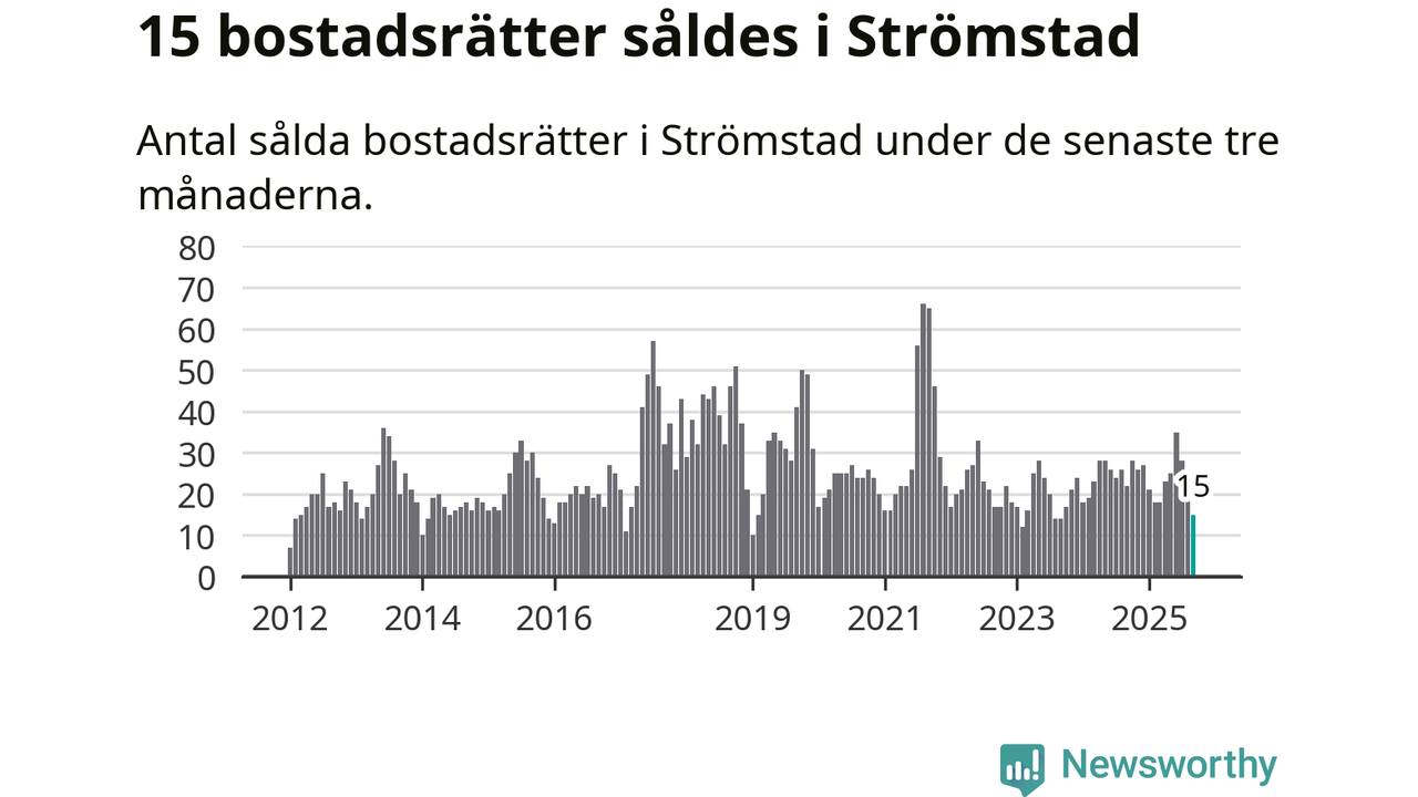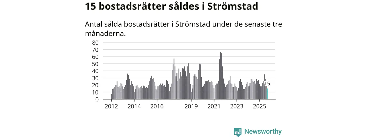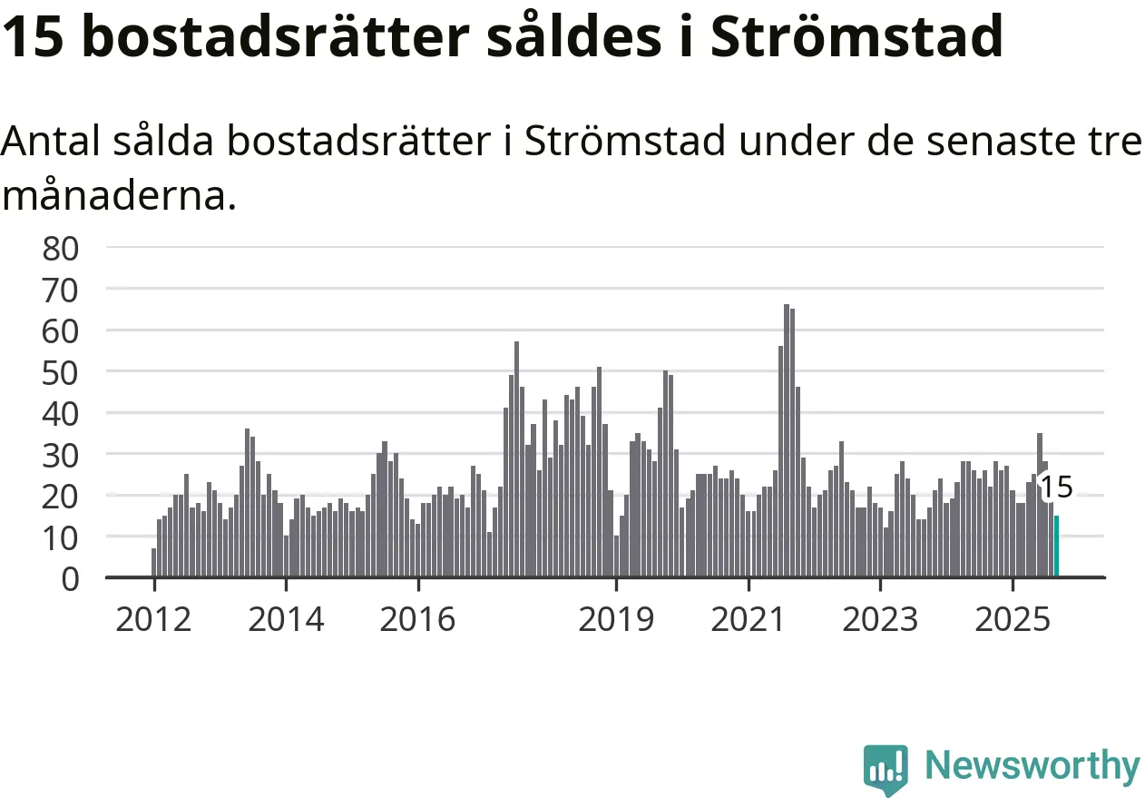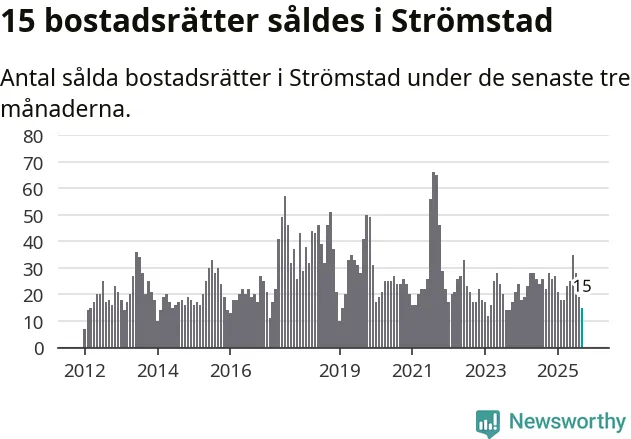 Mellan juli och september gjordes sammanlagt 15 affärer med bostadsrätter i Strömstads kommun. Det kan jämföras med 22 vid motsvarande tid i fjol.
