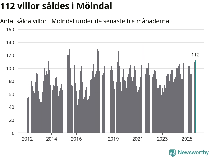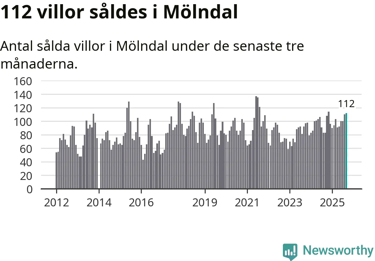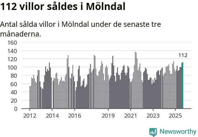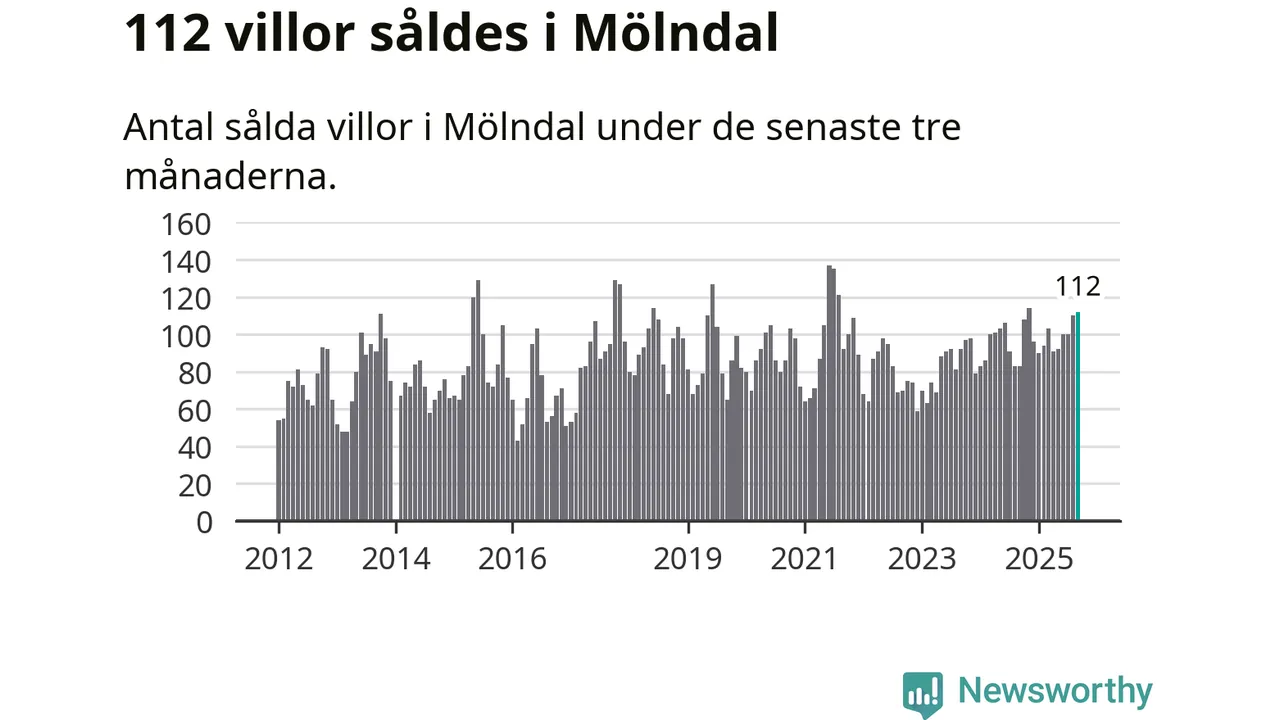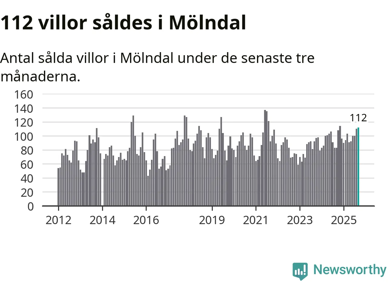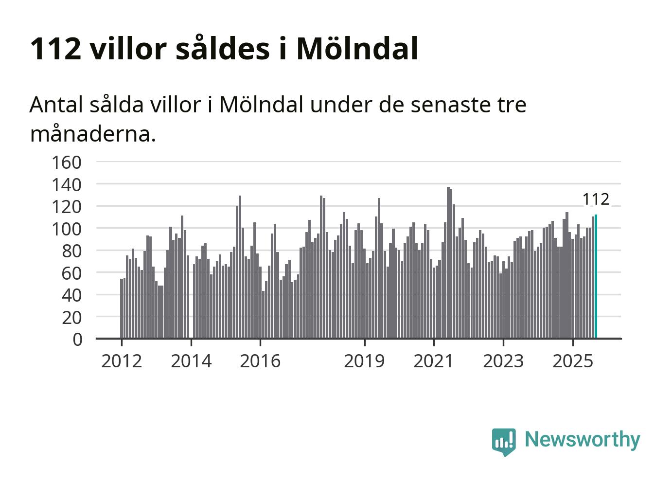 Sammanlagt såldes 112 villor i Mölndals kommun mellan juli och september till ett genomsnittligt pris på 5,8 miljoner kronor. I fjol gjordes 83 affärer vid den här tiden på året.