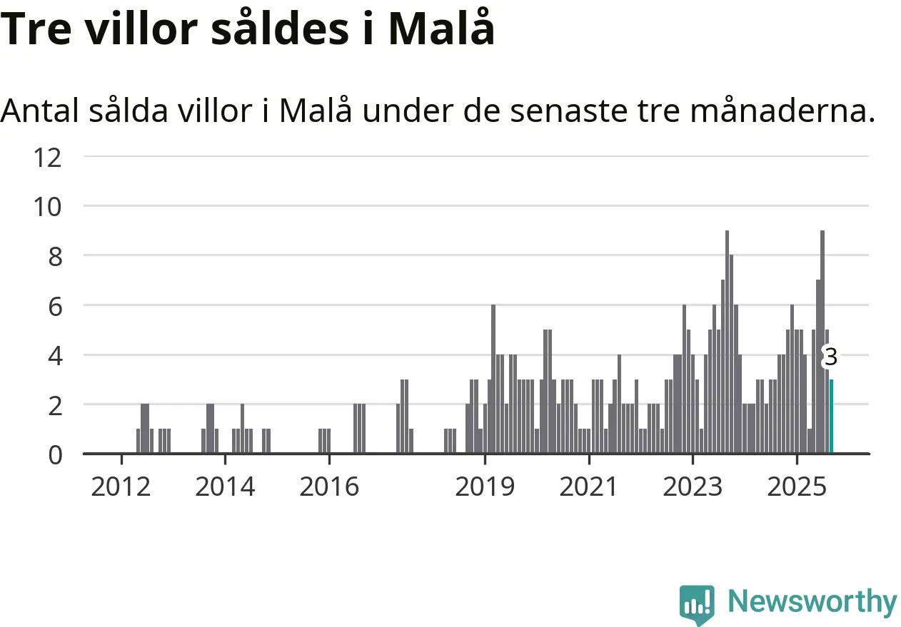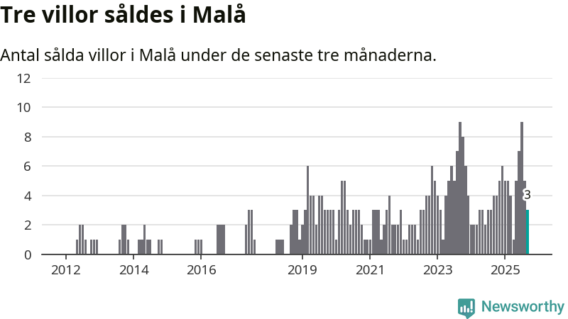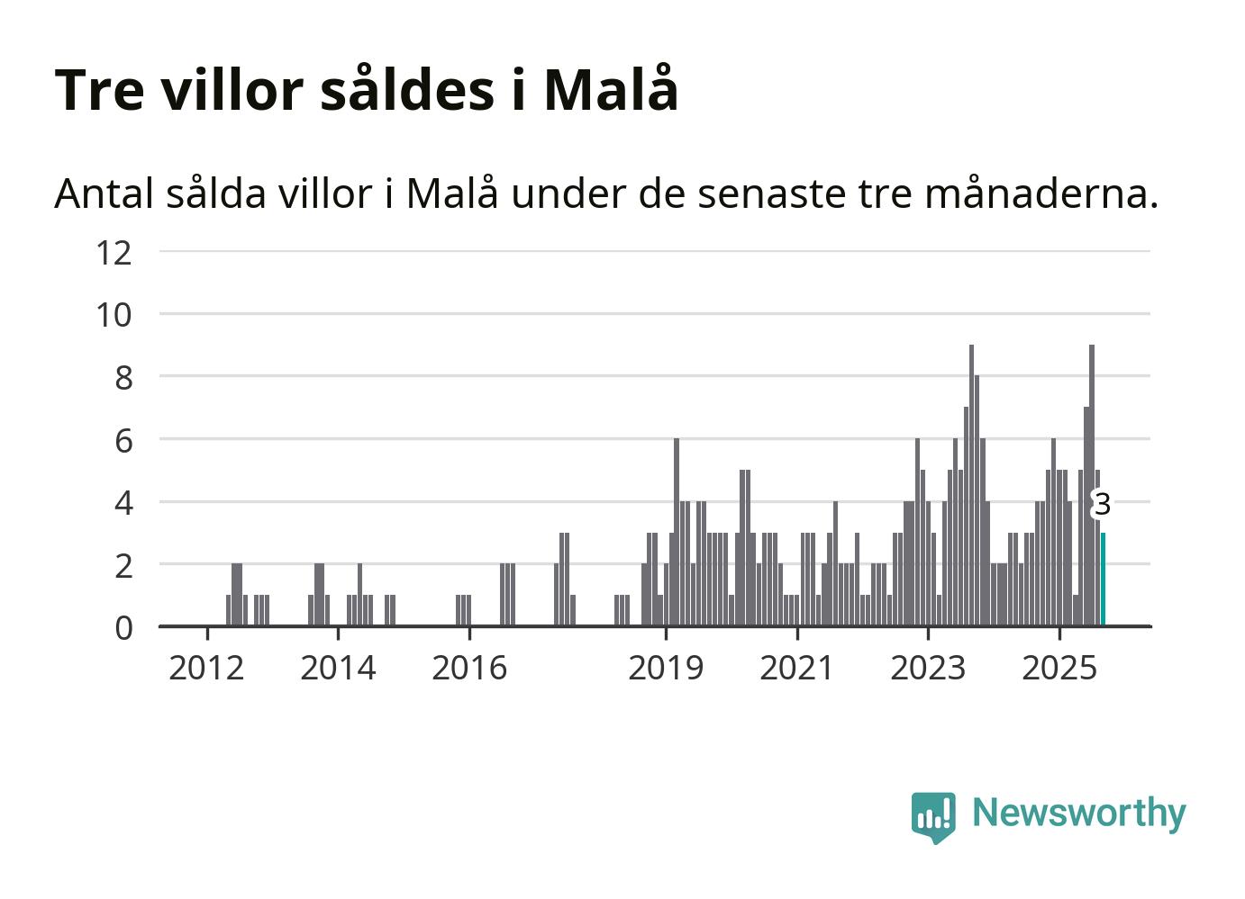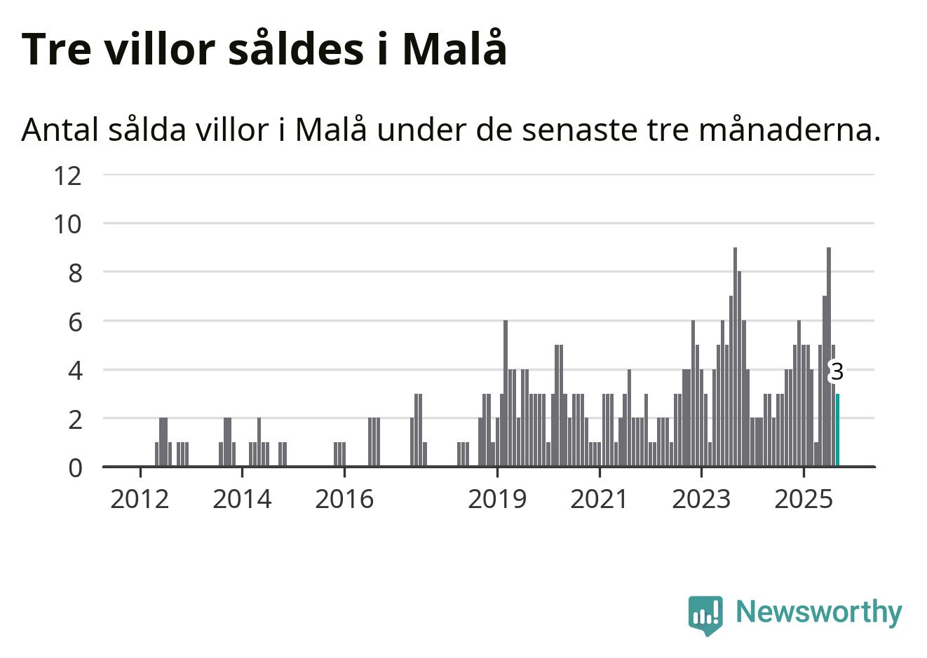 Mellan juli och september gjordes sammanlagt tre affärer med villor i Malå kommun. Det kan jämföras med fyra vid motsvarande tid i fjol.