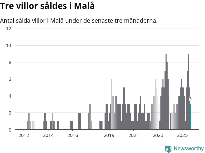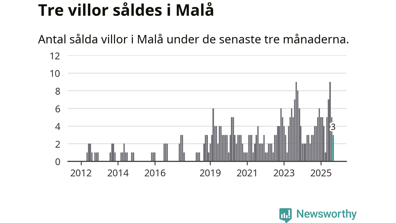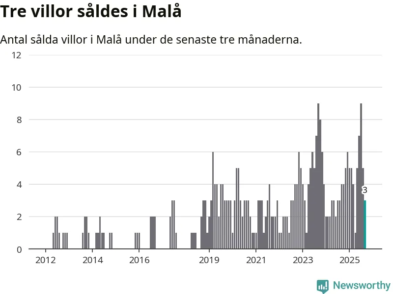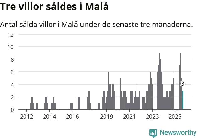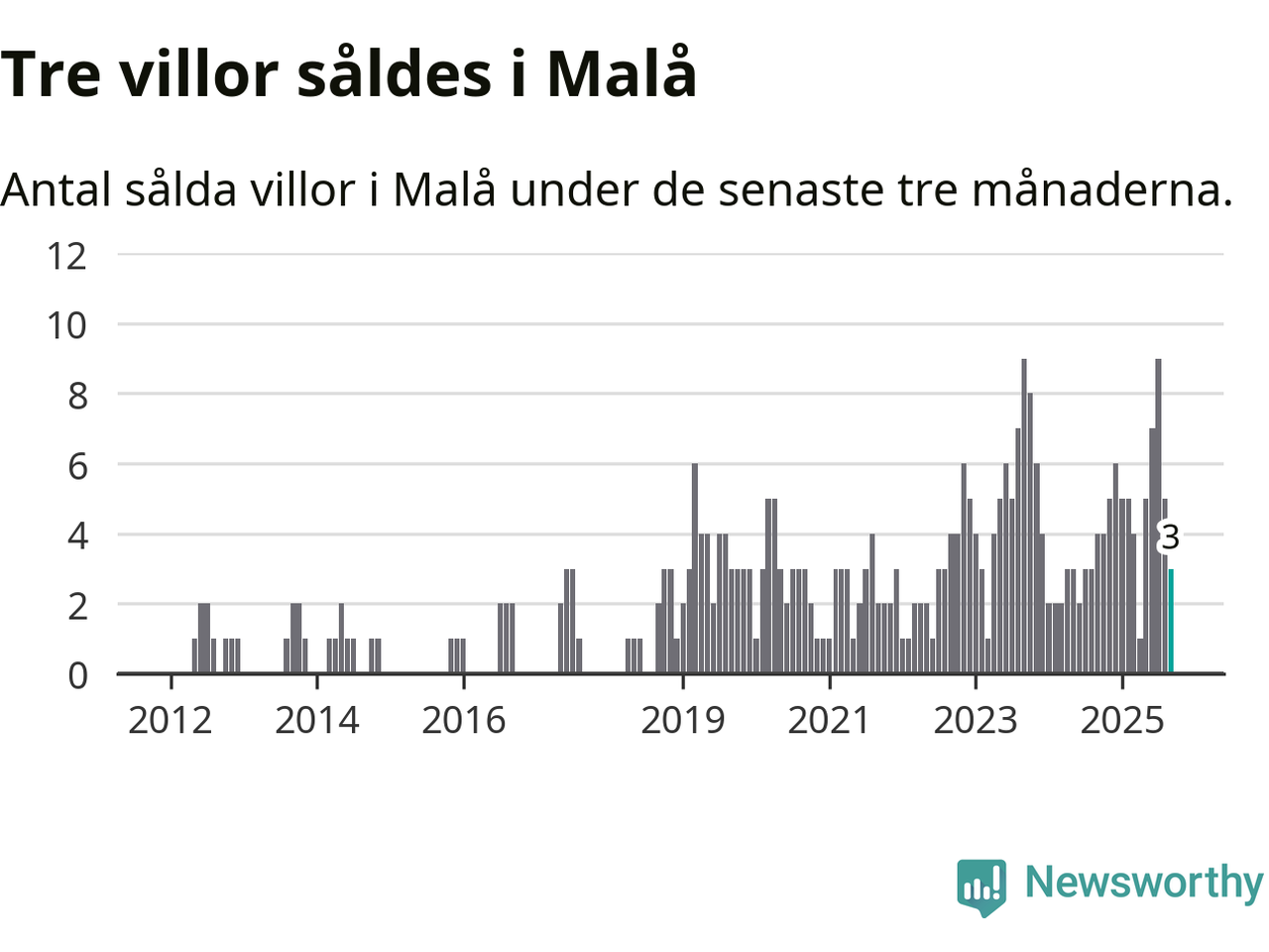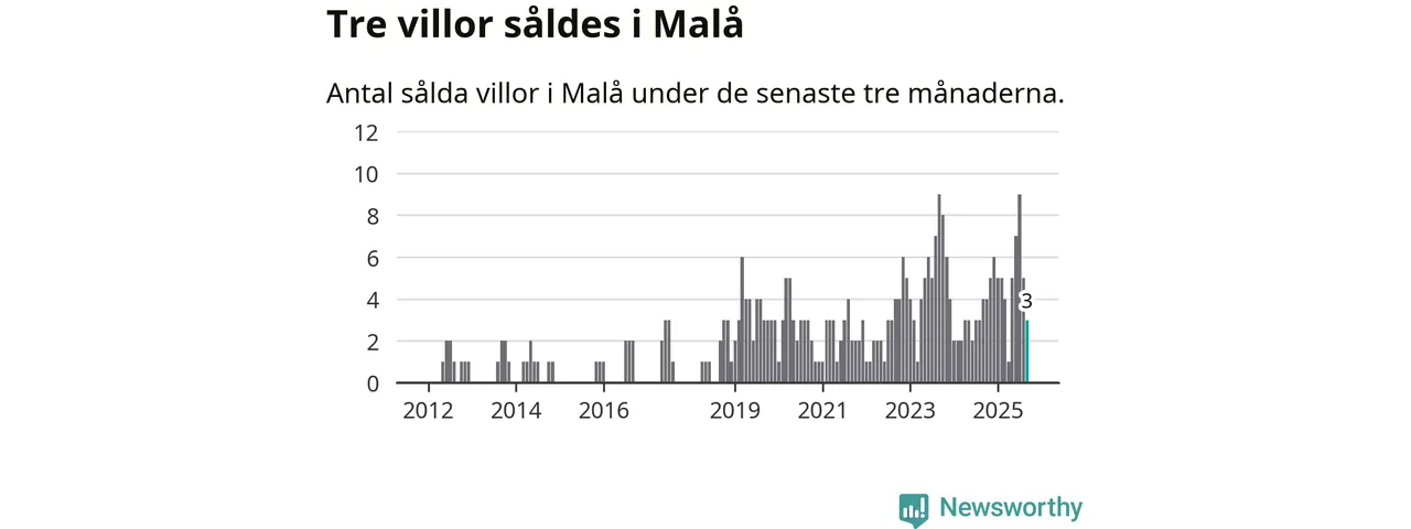 Mellan juli och september gjordes sammanlagt tre affärer med villor i Malå kommun. Det kan jämföras med fyra vid motsvarande tid i fjol.
