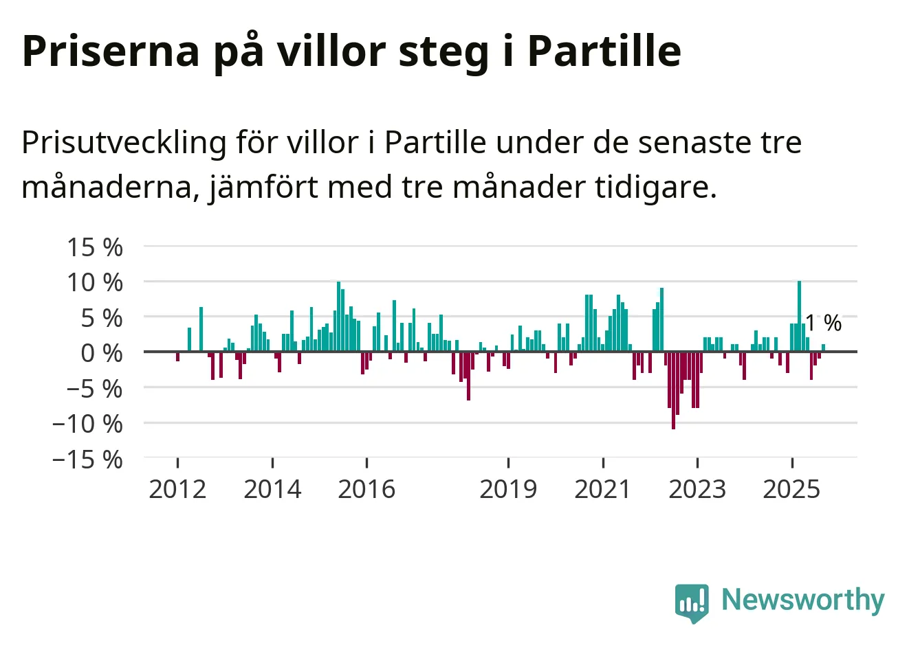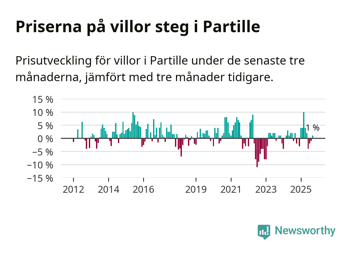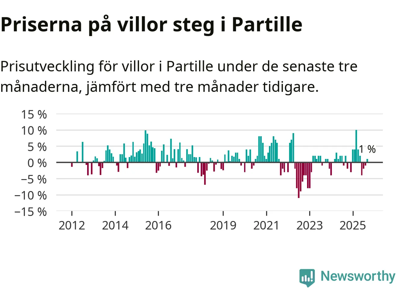 Villapriserna har gått upp i Partille kommun. Medelpriset på försäljningarna under de senaste tre månaderna visar på en uppgång med 1 procent.