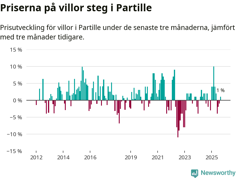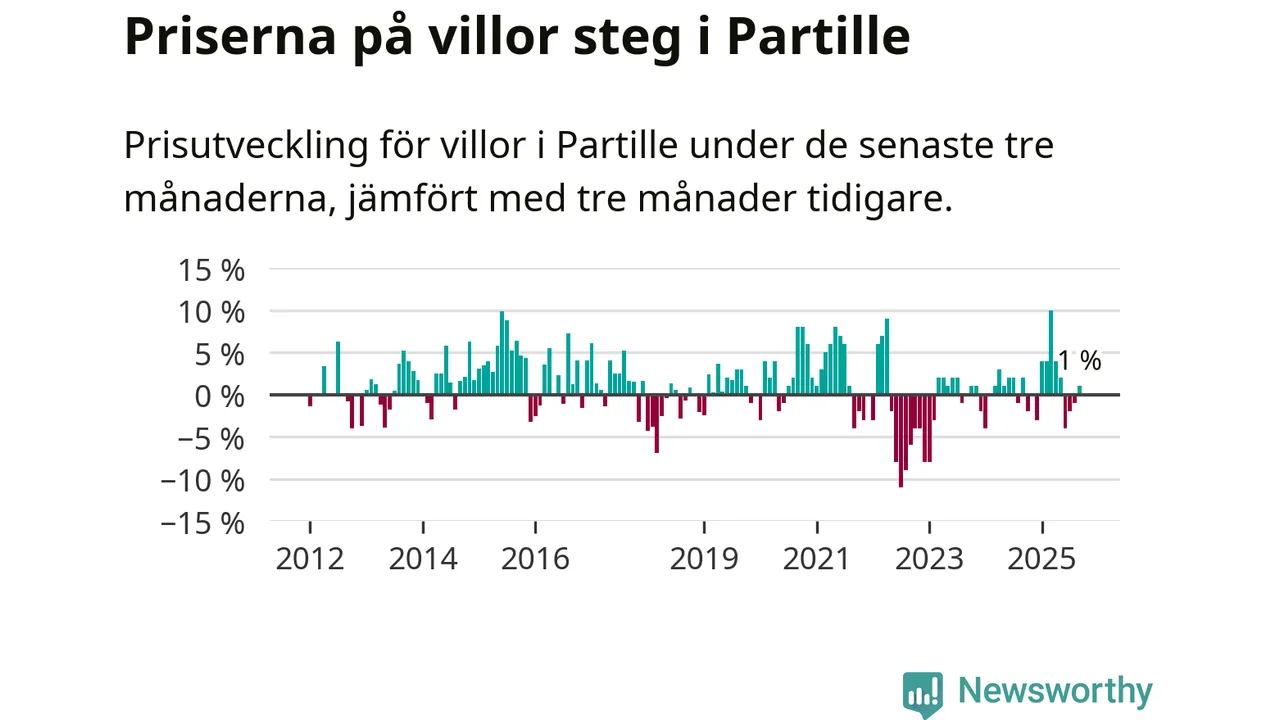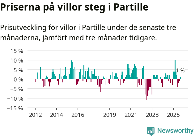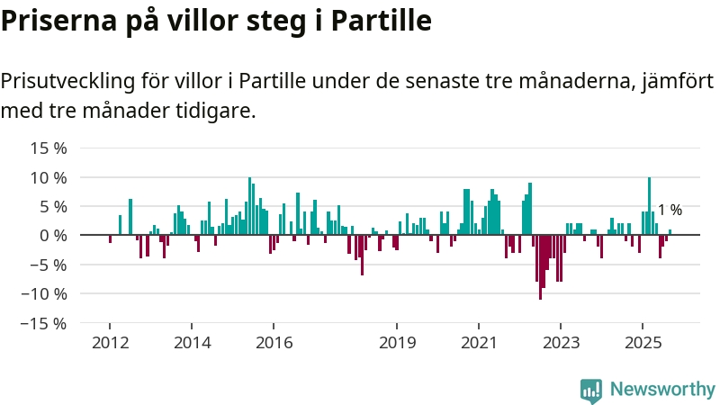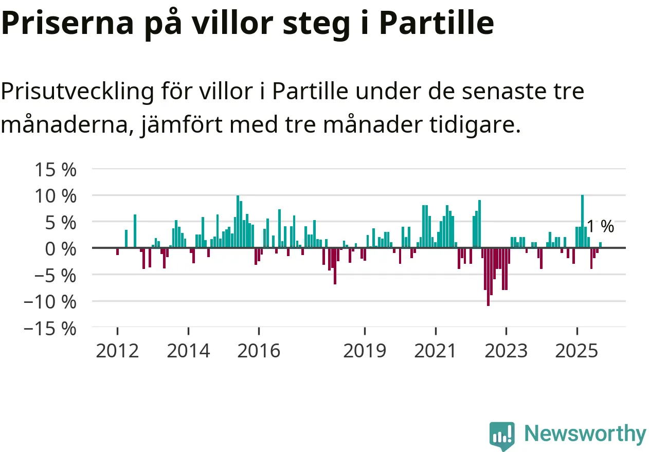 Villapriserna har gått upp i Partille kommun. Medelpriset på försäljningarna under de senaste tre månaderna visar på en uppgång med 1 procent.