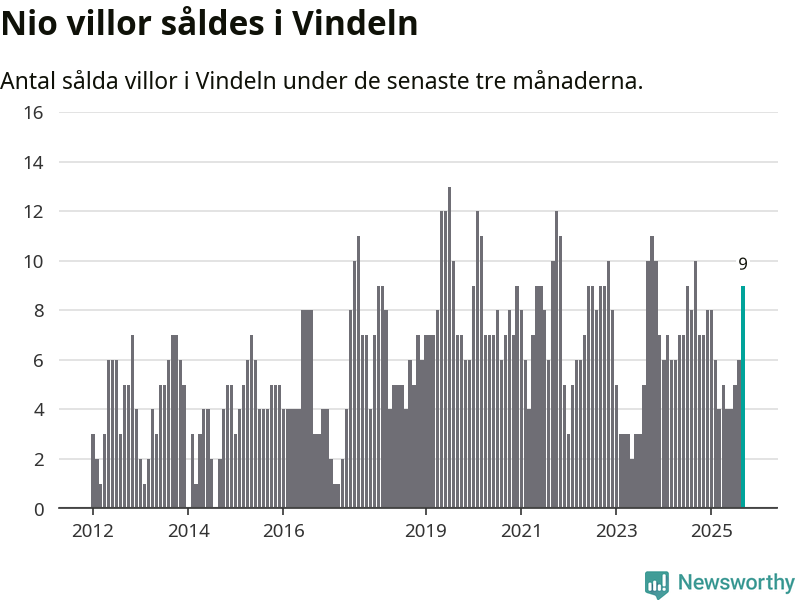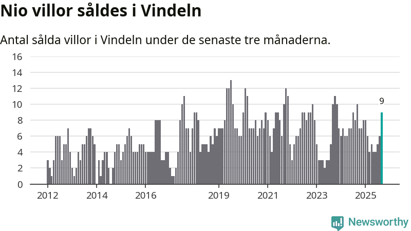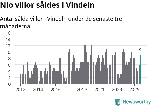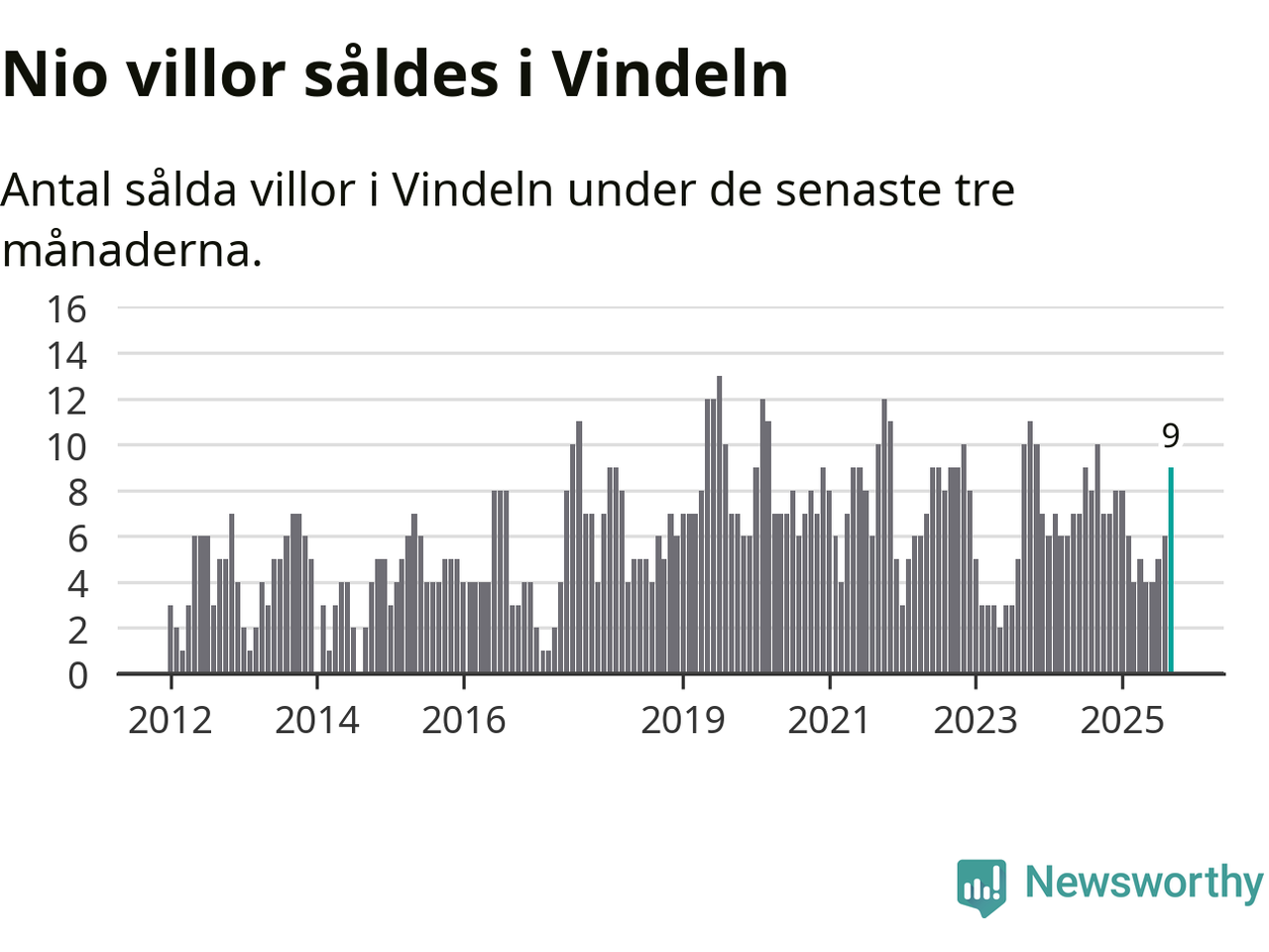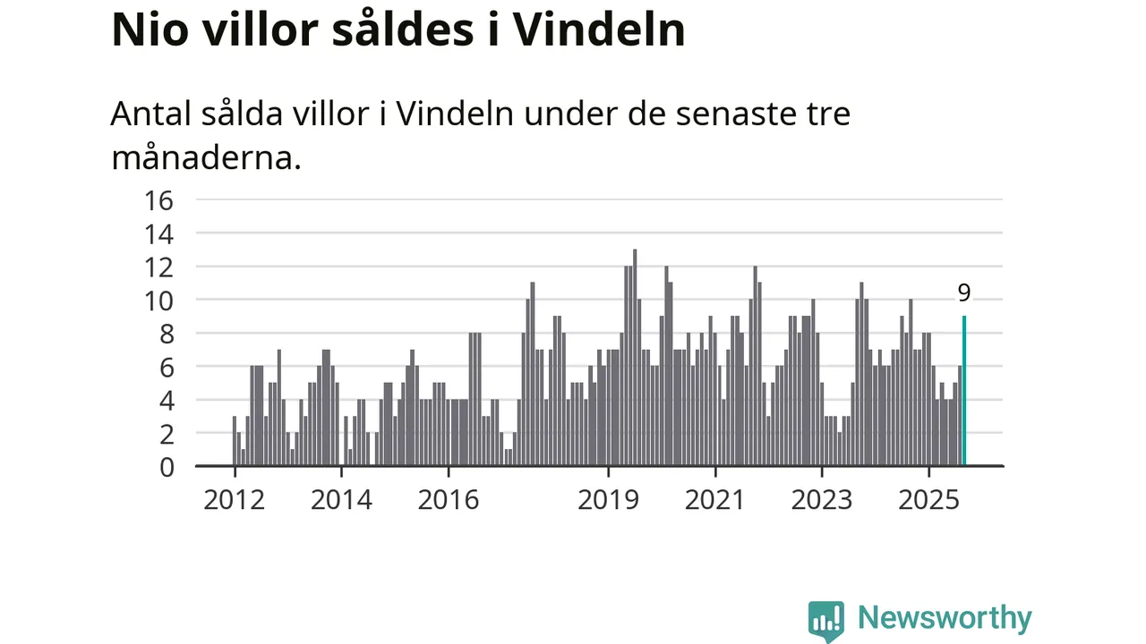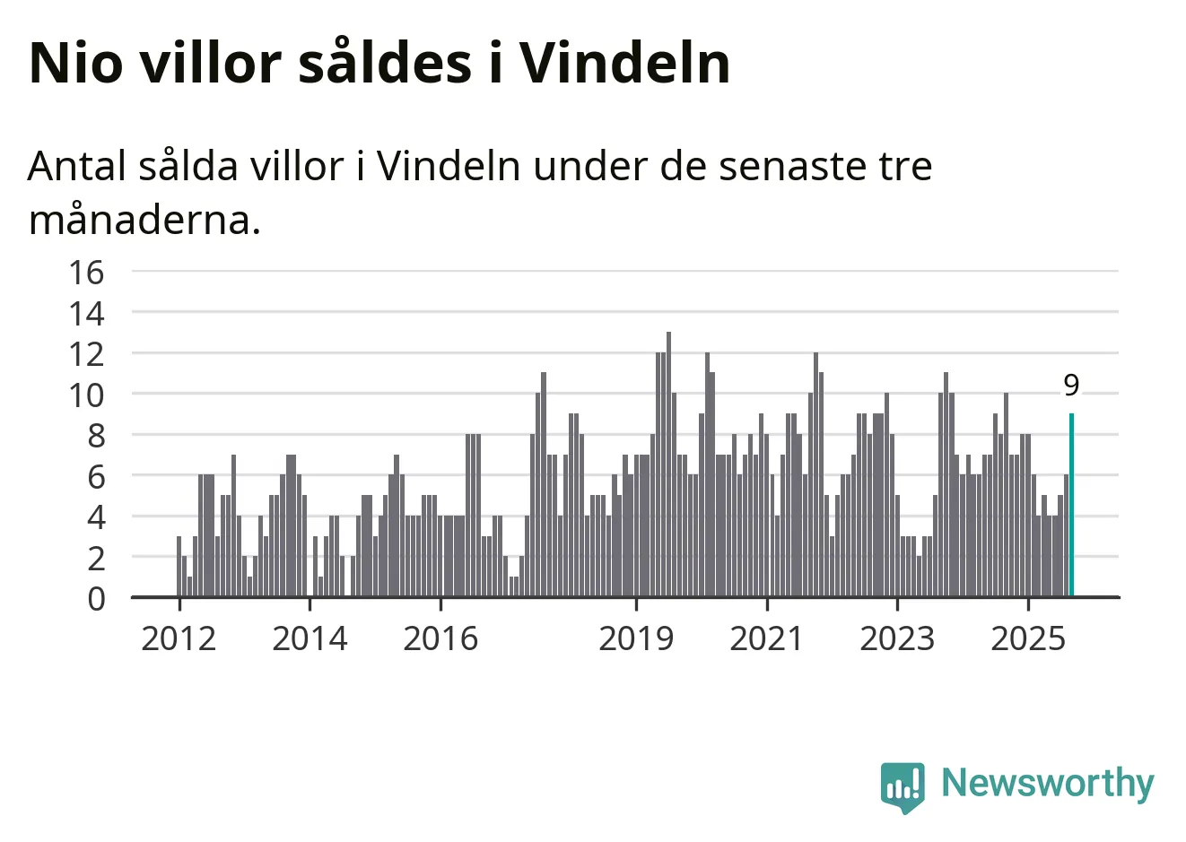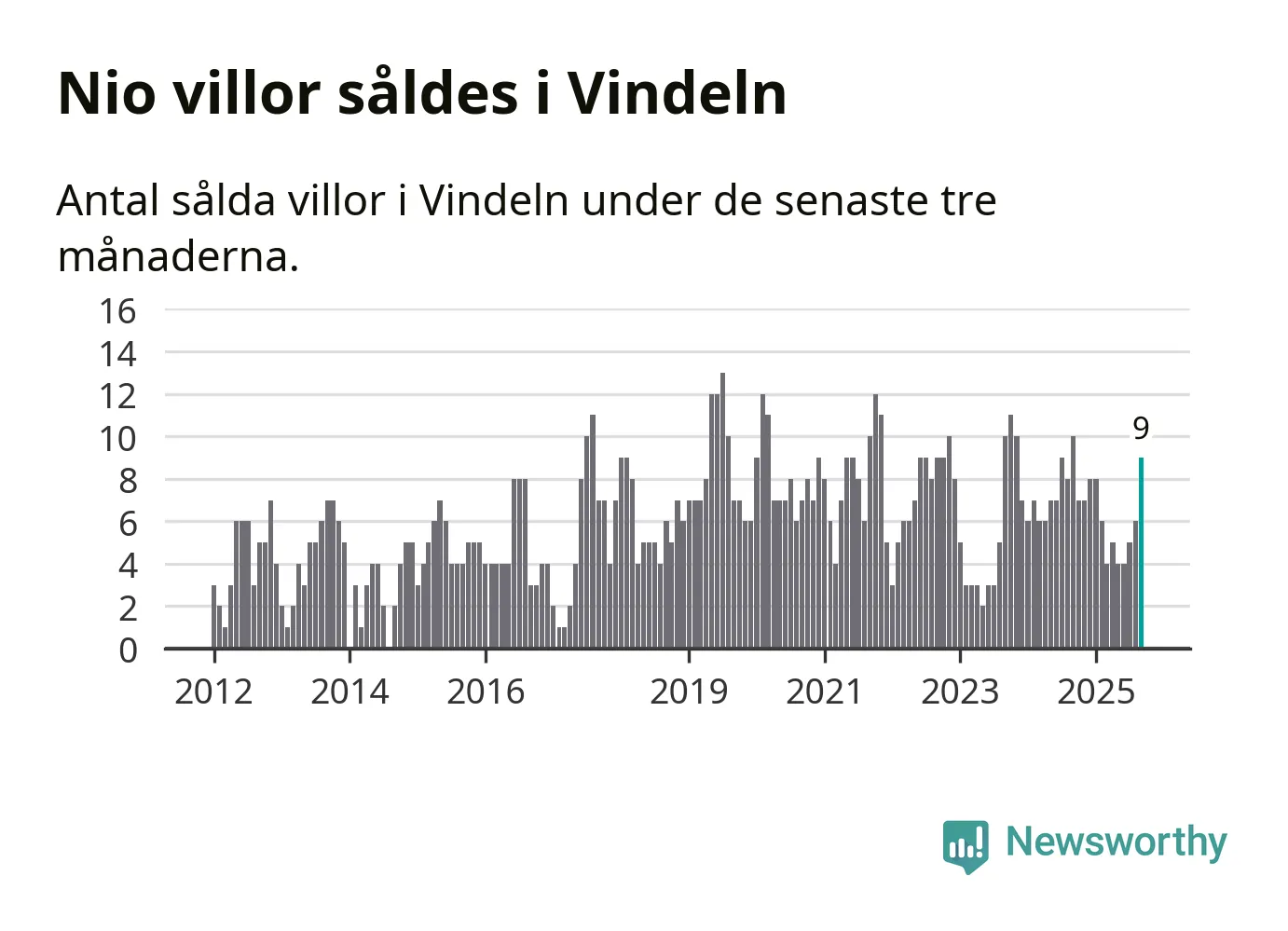 Mellan juli och september gjordes sammanlagt nio affärer med villor i Vindelns kommun. Det kan jämföras med tio vid motsvarande tid i fjol.