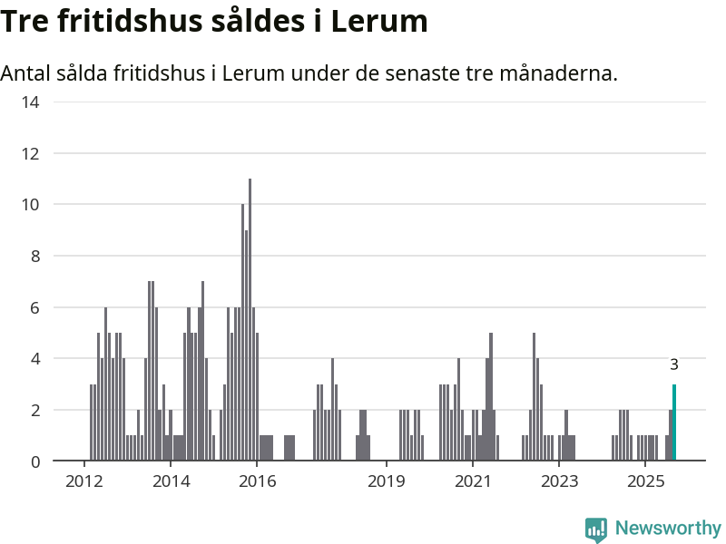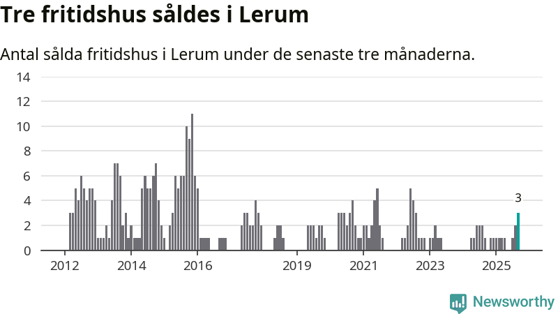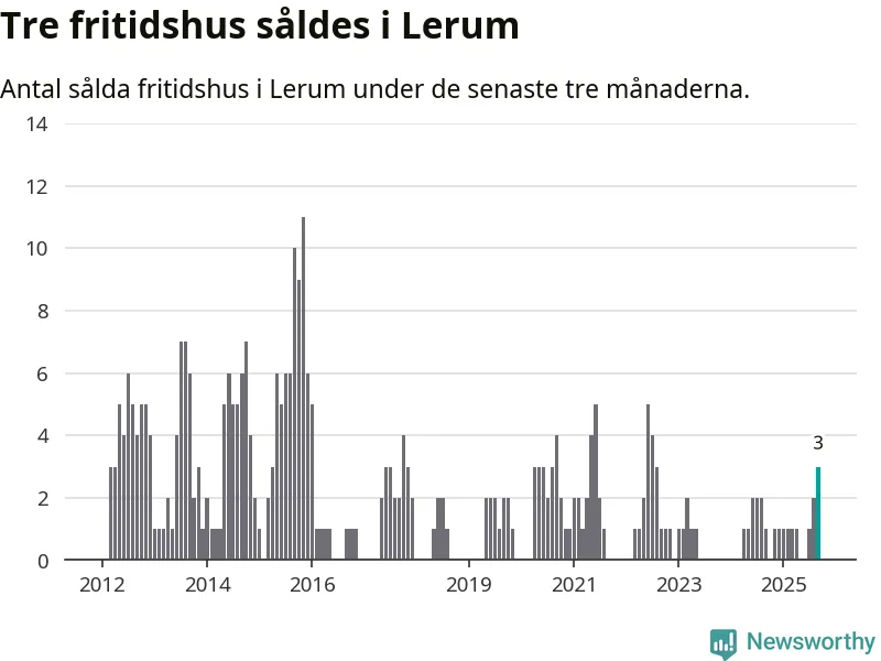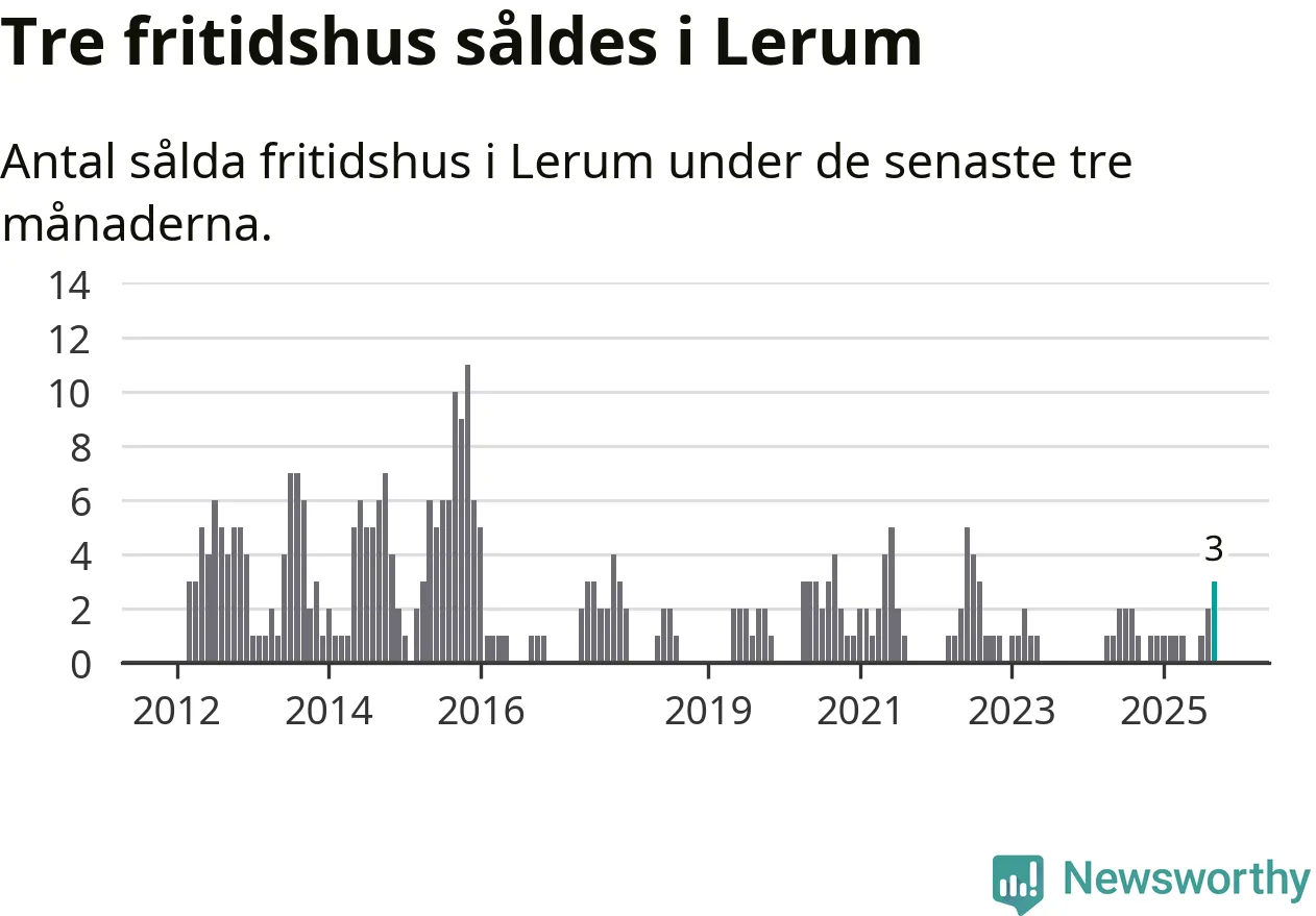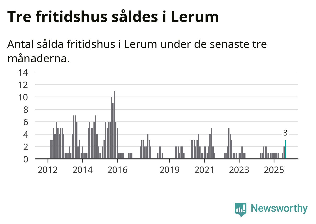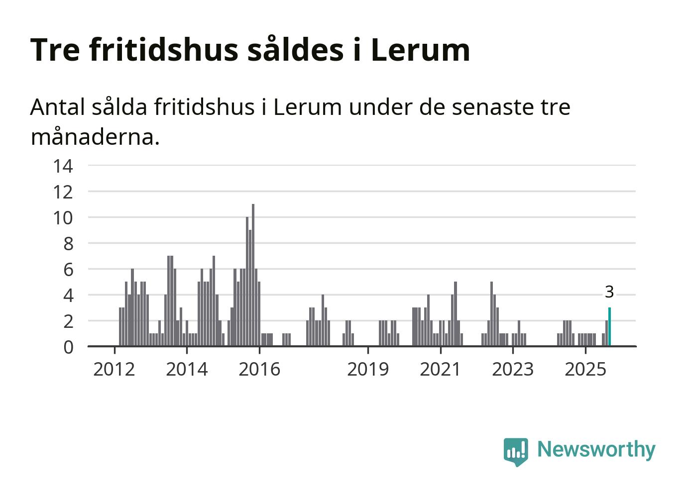 Mellan juli och september gjordes sammanlagt tre affärer med fritidshus i Lerums kommun. Det kan jämföras med ett vid motsvarande tid i fjol.