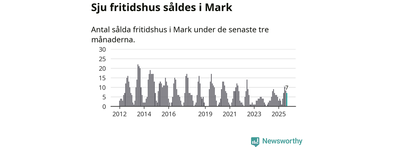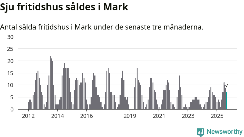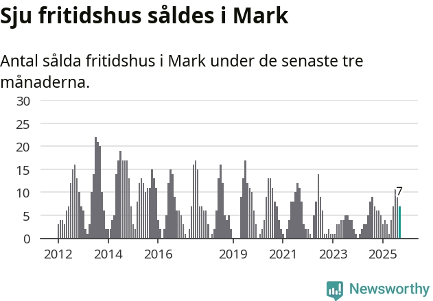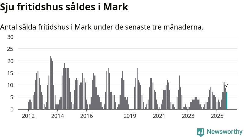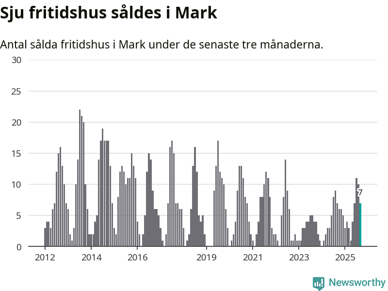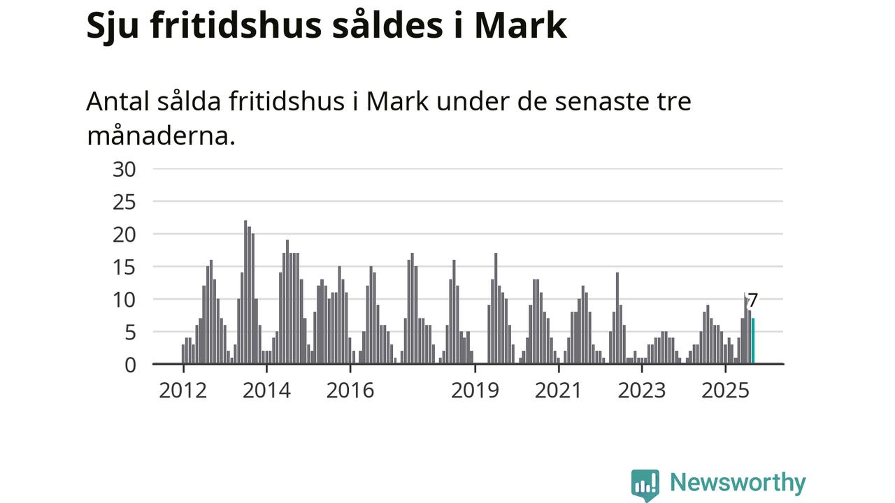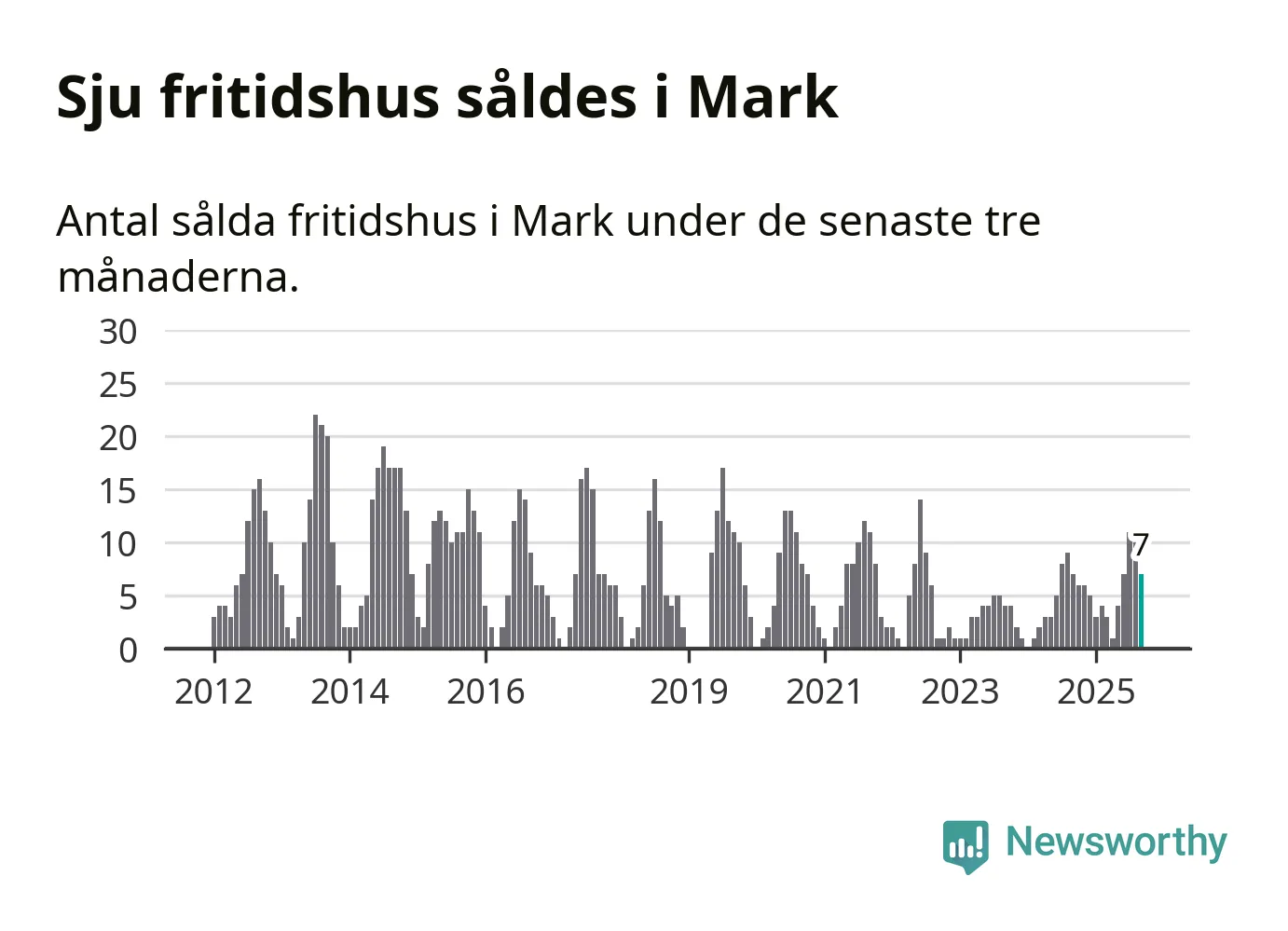 Mellan juli och september gjordes sammanlagt sju affärer med fritidshus i Marks kommun. Det är lika många affärer som vid motsvarande tid i fjol.