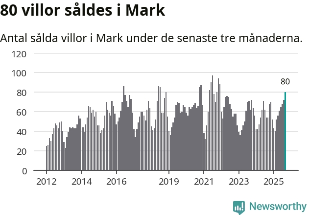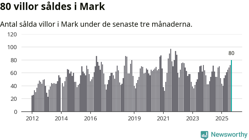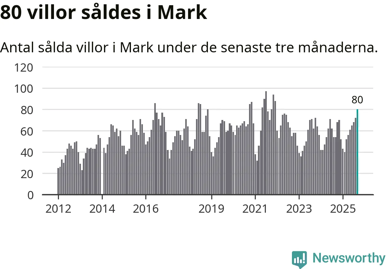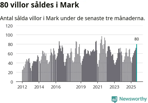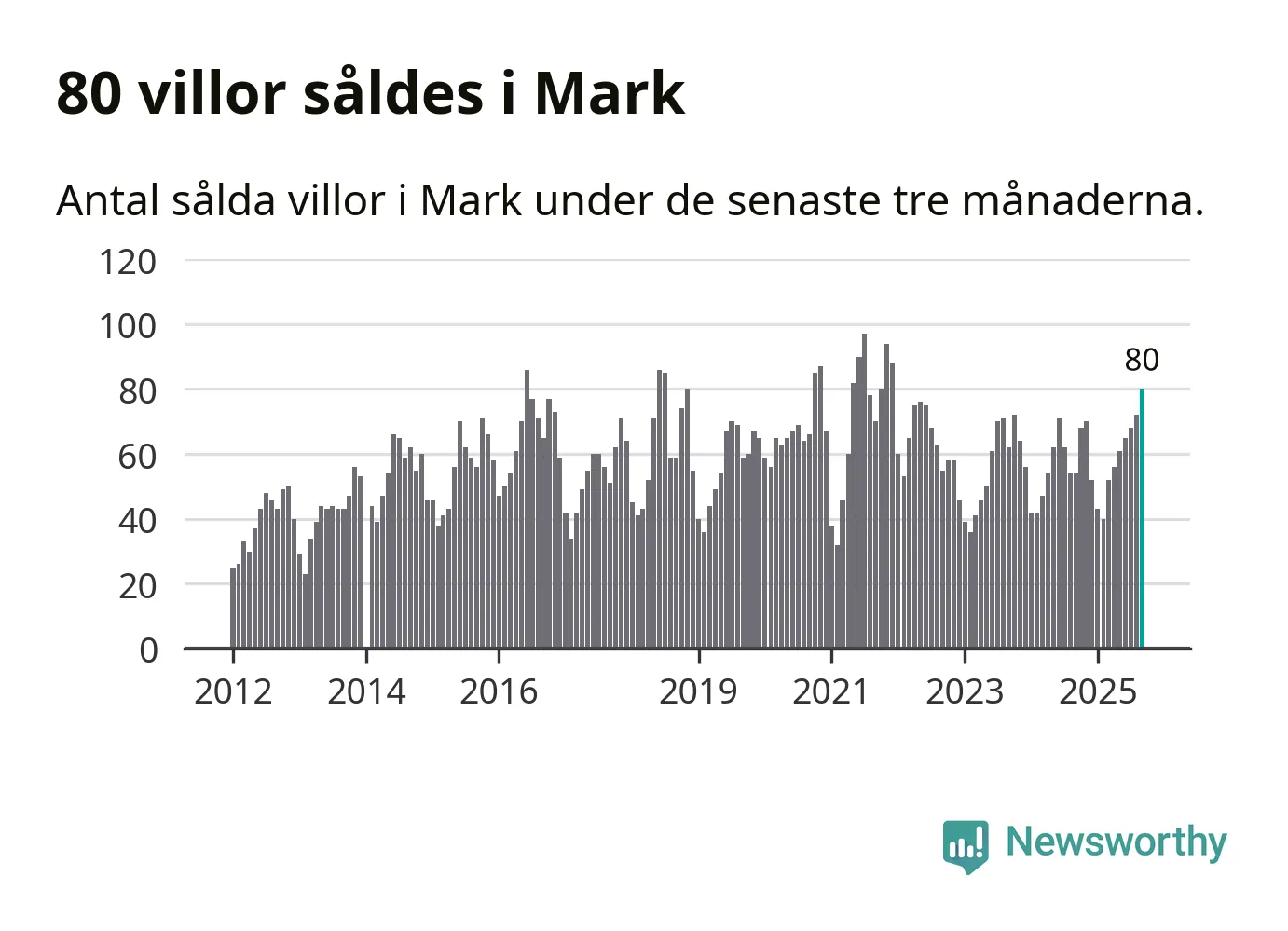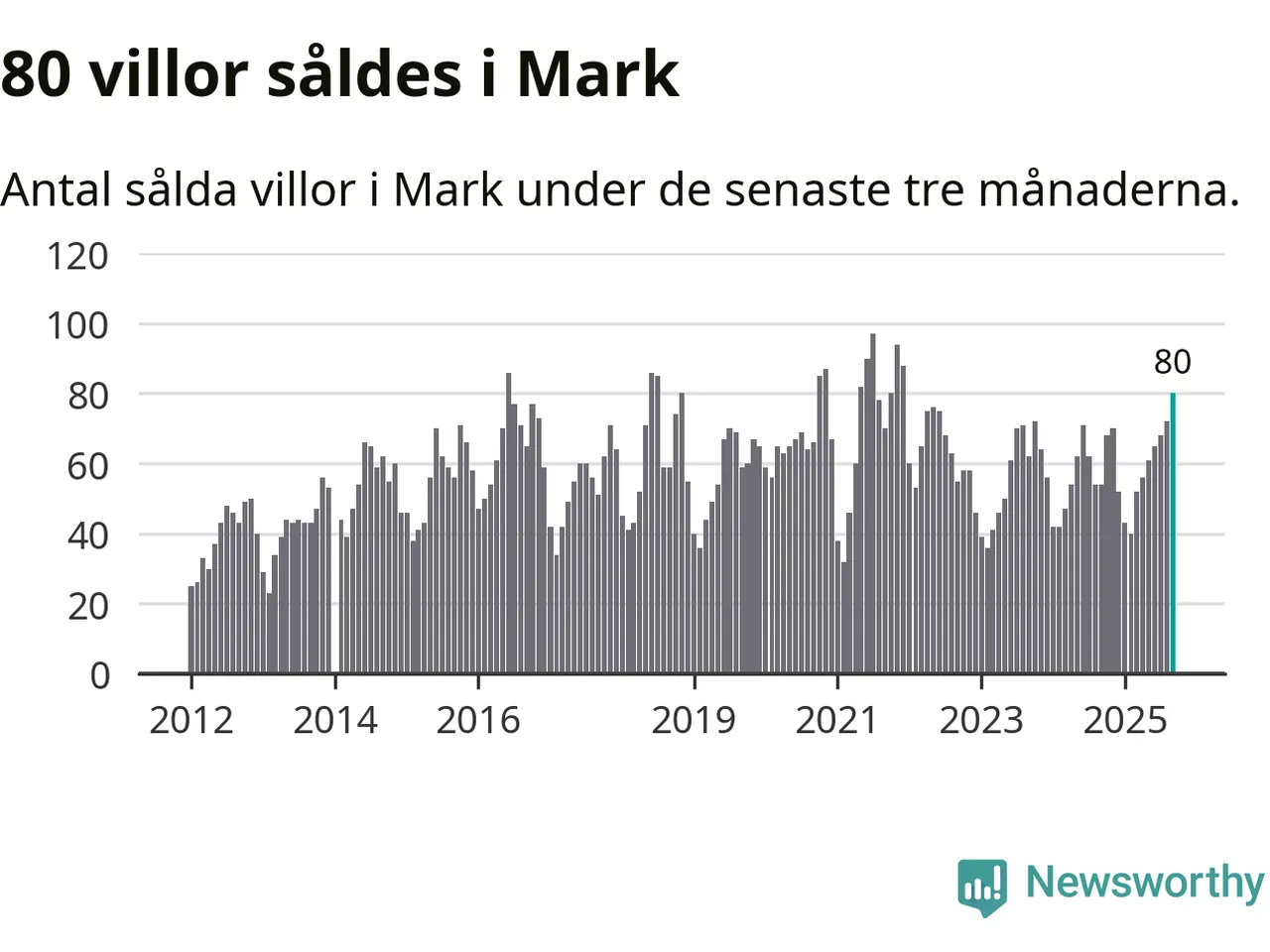 Mellan juli och september såldes 80 villor i Marks kommun. Det är fler än någon tremånadersperiod sedan 2021.