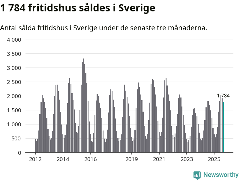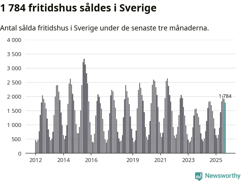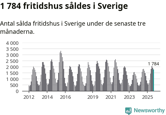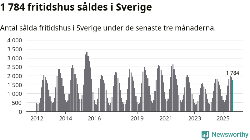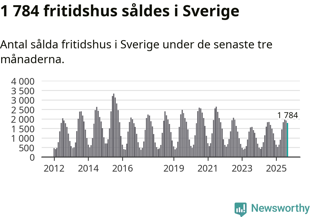 Sammanlagt såldes 1 784 fritidshus i Sverige mellan juli och september till ett genomsnittligt pris på 2,3 miljoner kronor. I fjol gjordes 1 689 affärer vid den här tiden på året.