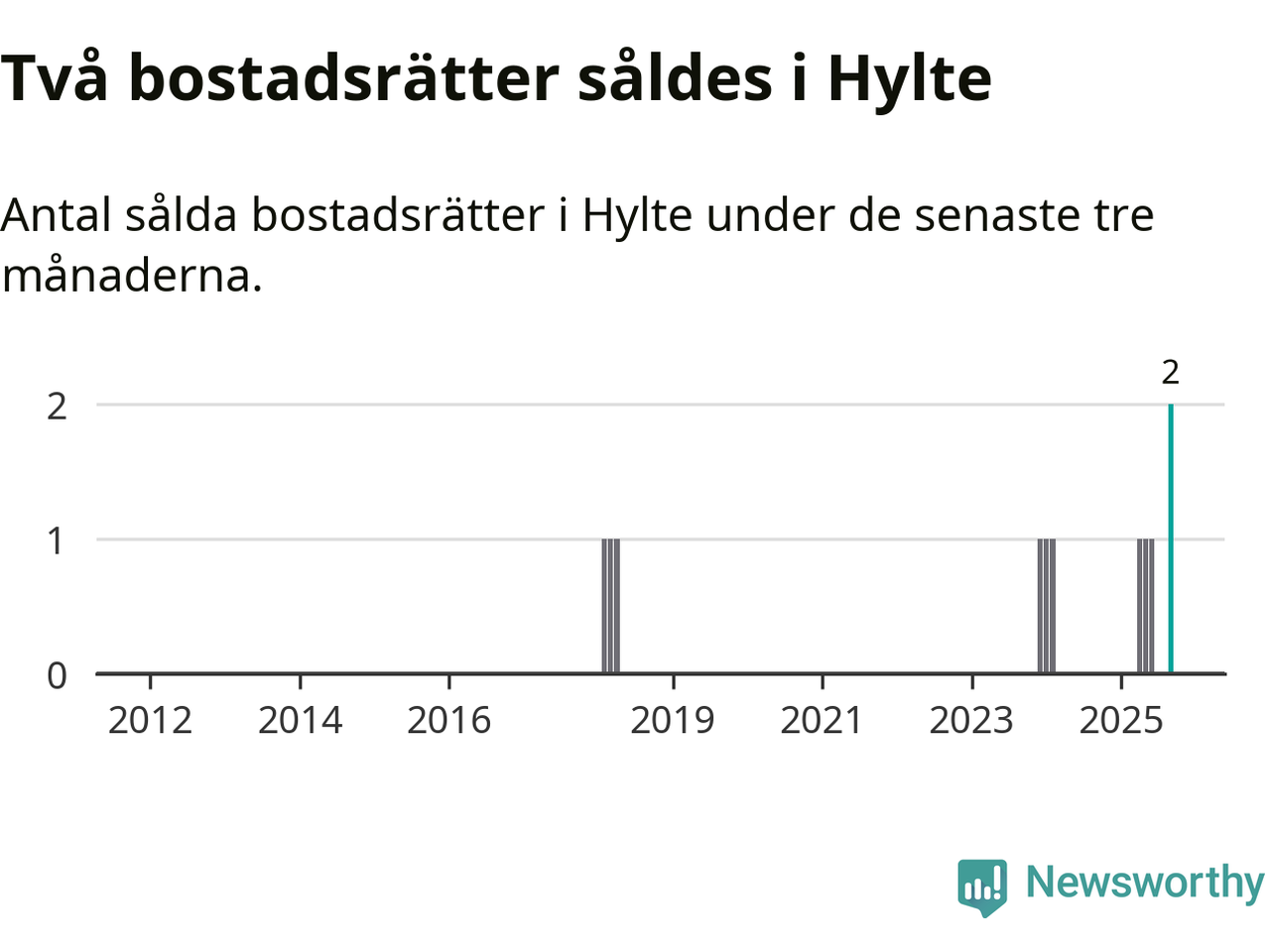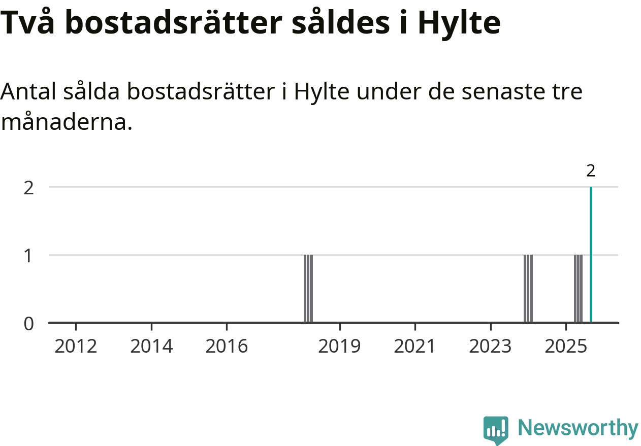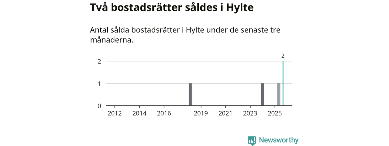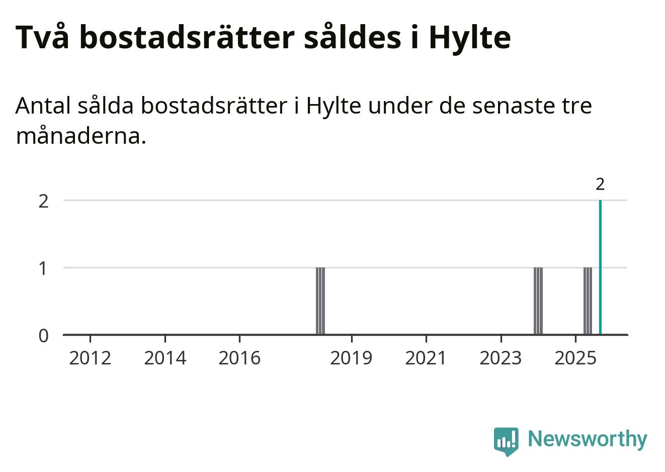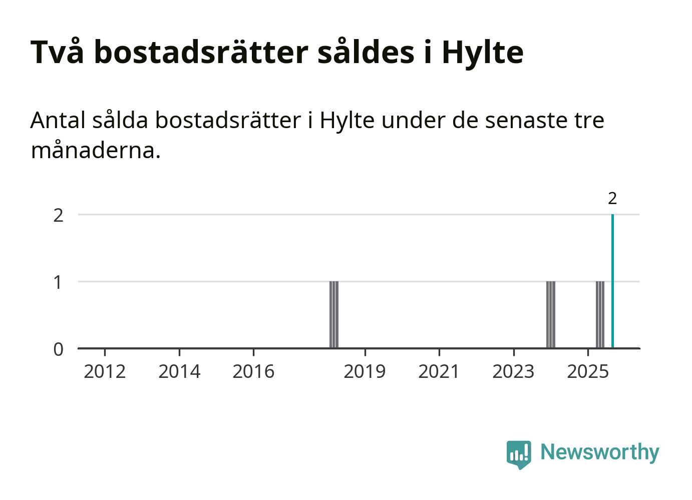 Mellan juli och september gjordes sammanlagt två affärer med bostadsrätter i Hylte kommun.