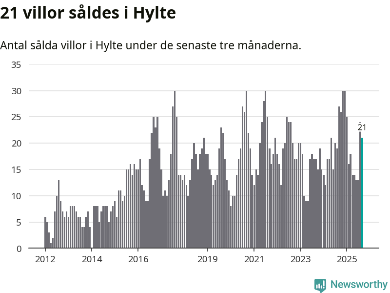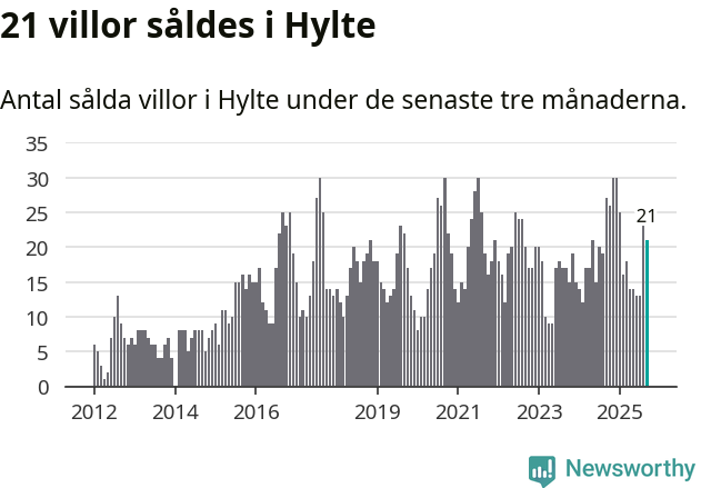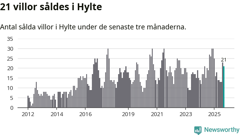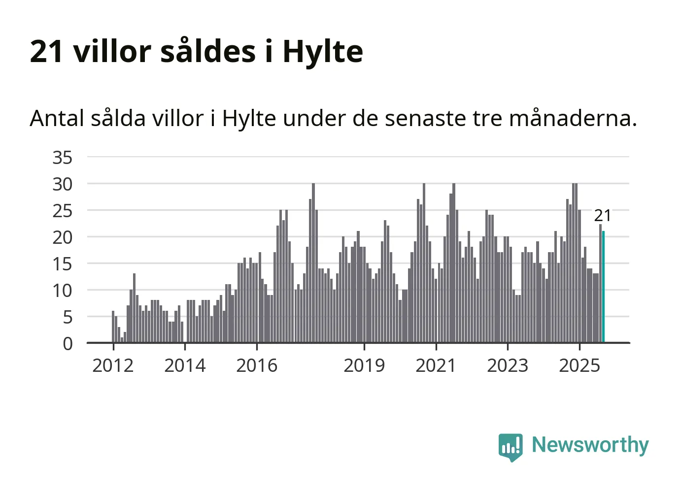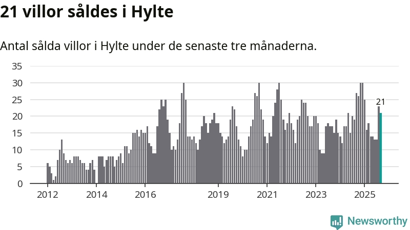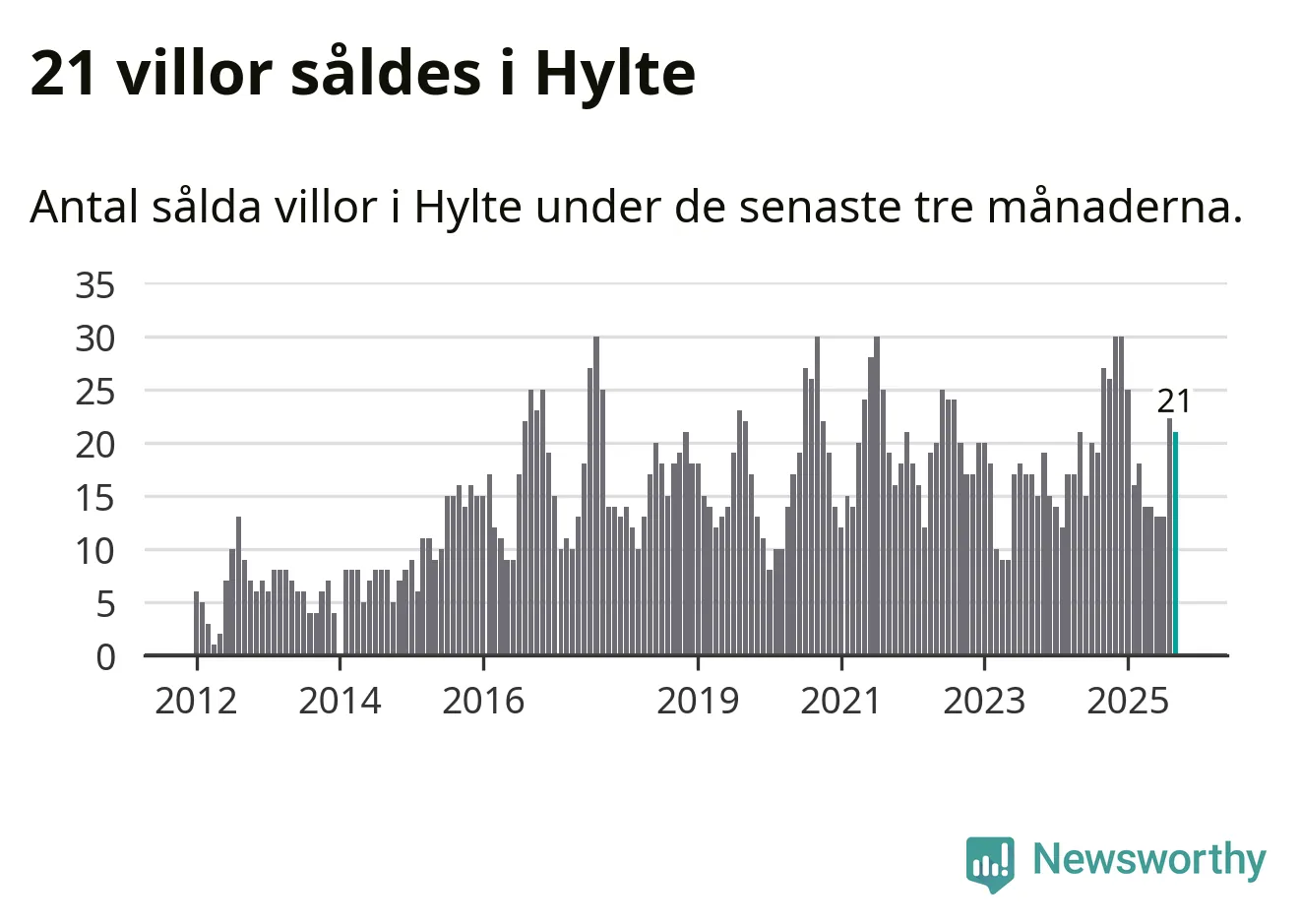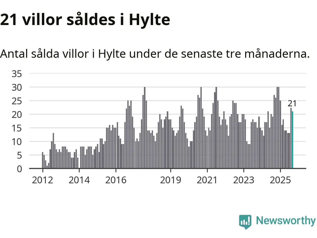 Mellan juli och september gjordes sammanlagt 21 affärer med villor i Hylte kommun. Det kan jämföras med 27 vid motsvarande tid i fjol.