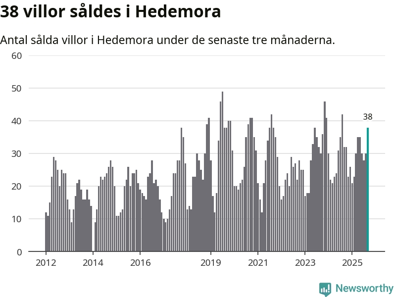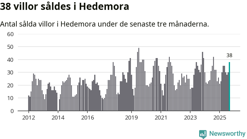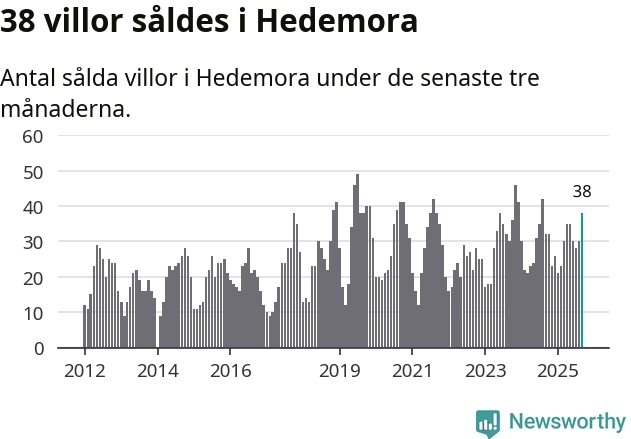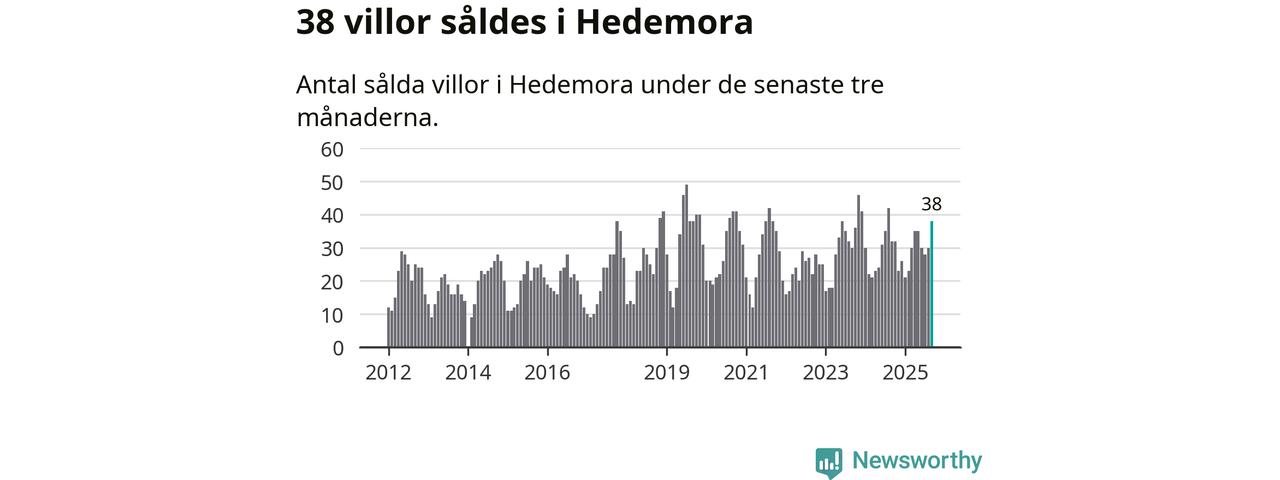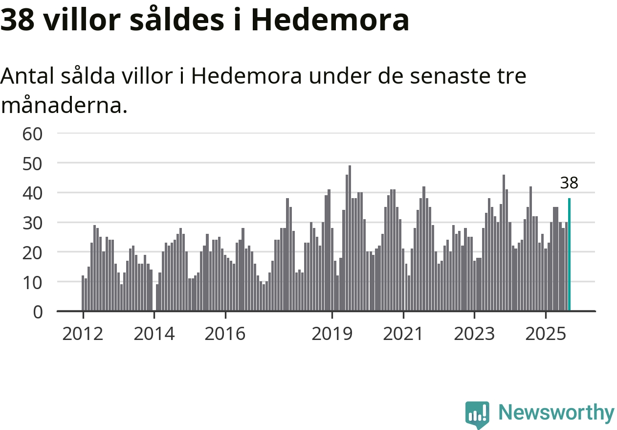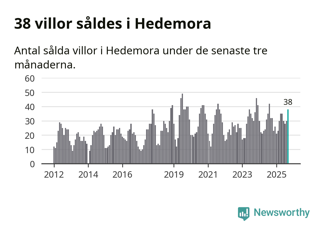 Mellan juli och september gjordes sammanlagt 38 affärer med villor i Hedemora kommun. Det kan jämföras med 32 vid motsvarande tid i fjol.