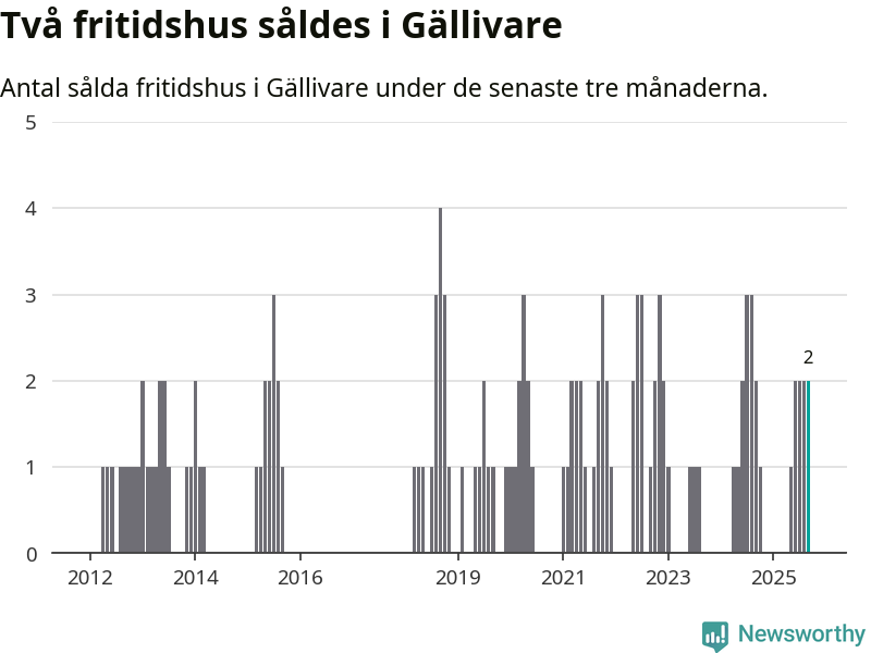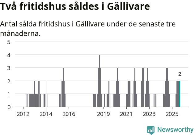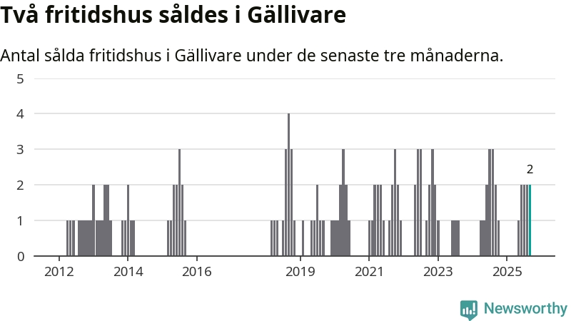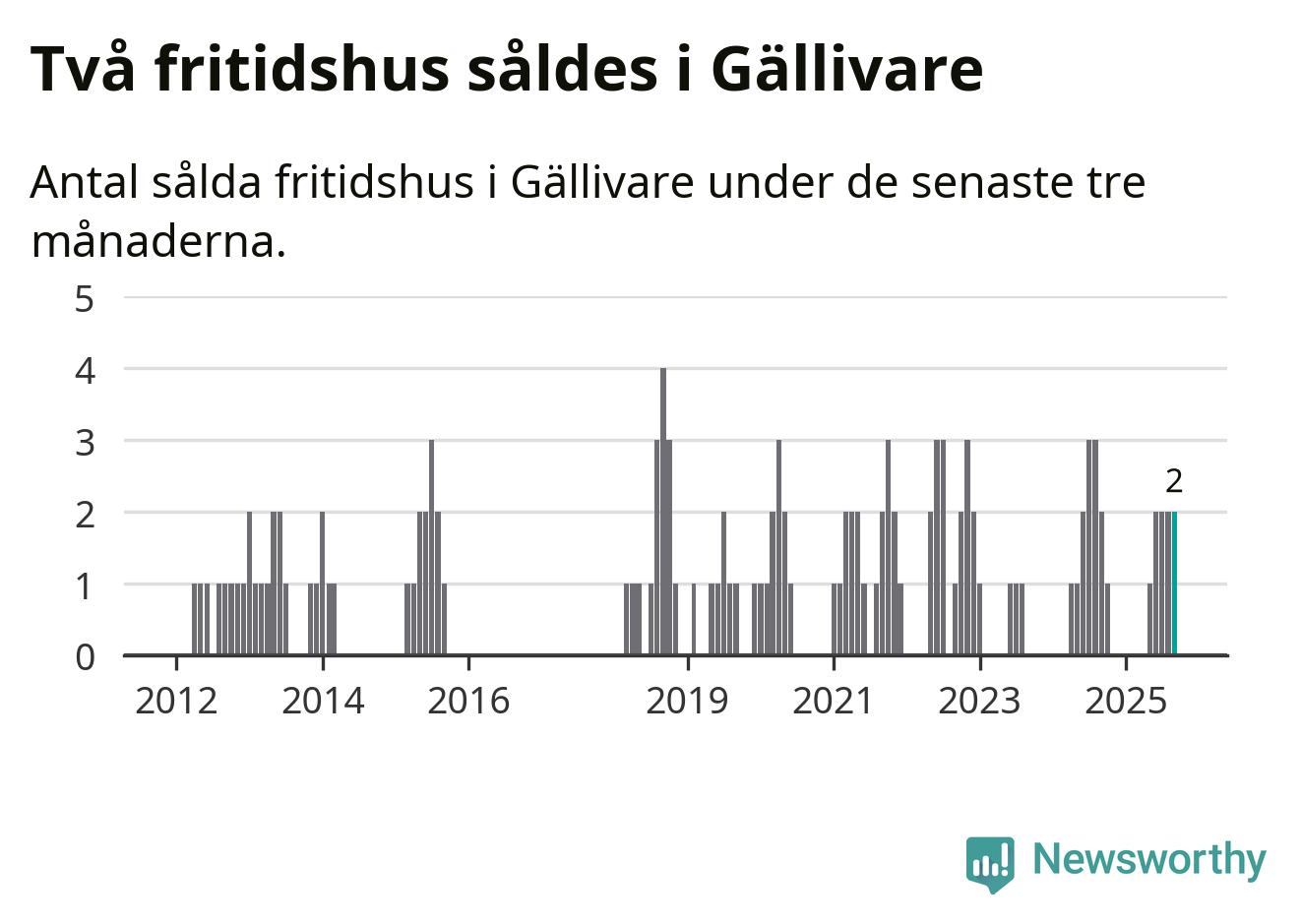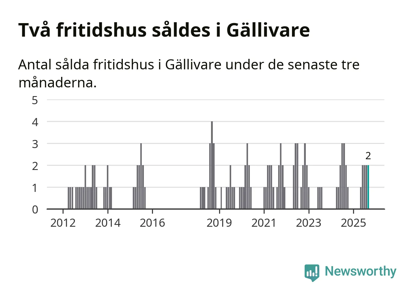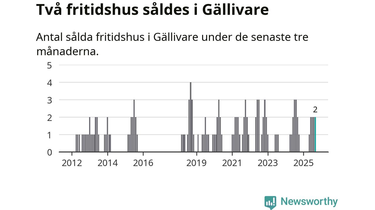 Mellan juli och september gjordes sammanlagt två affärer med fritidshus i Gällivare kommun. Det är lika många affärer som vid motsvarande tid i fjol.