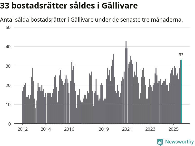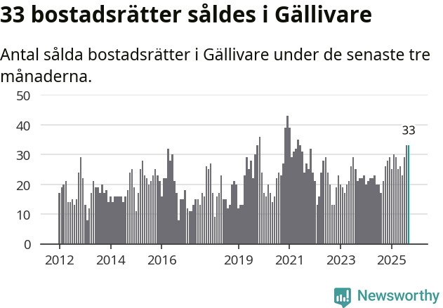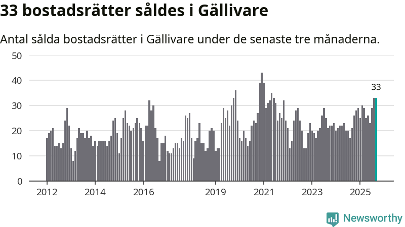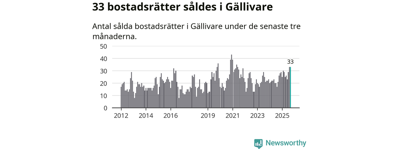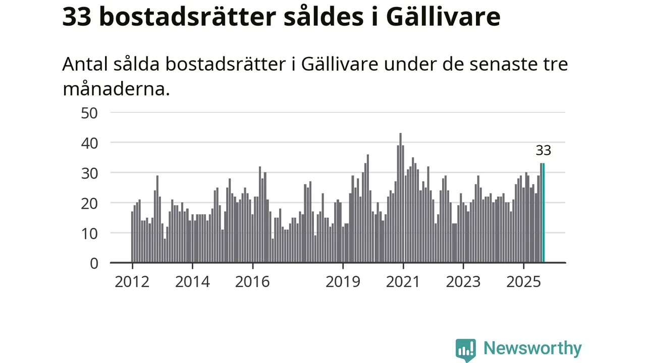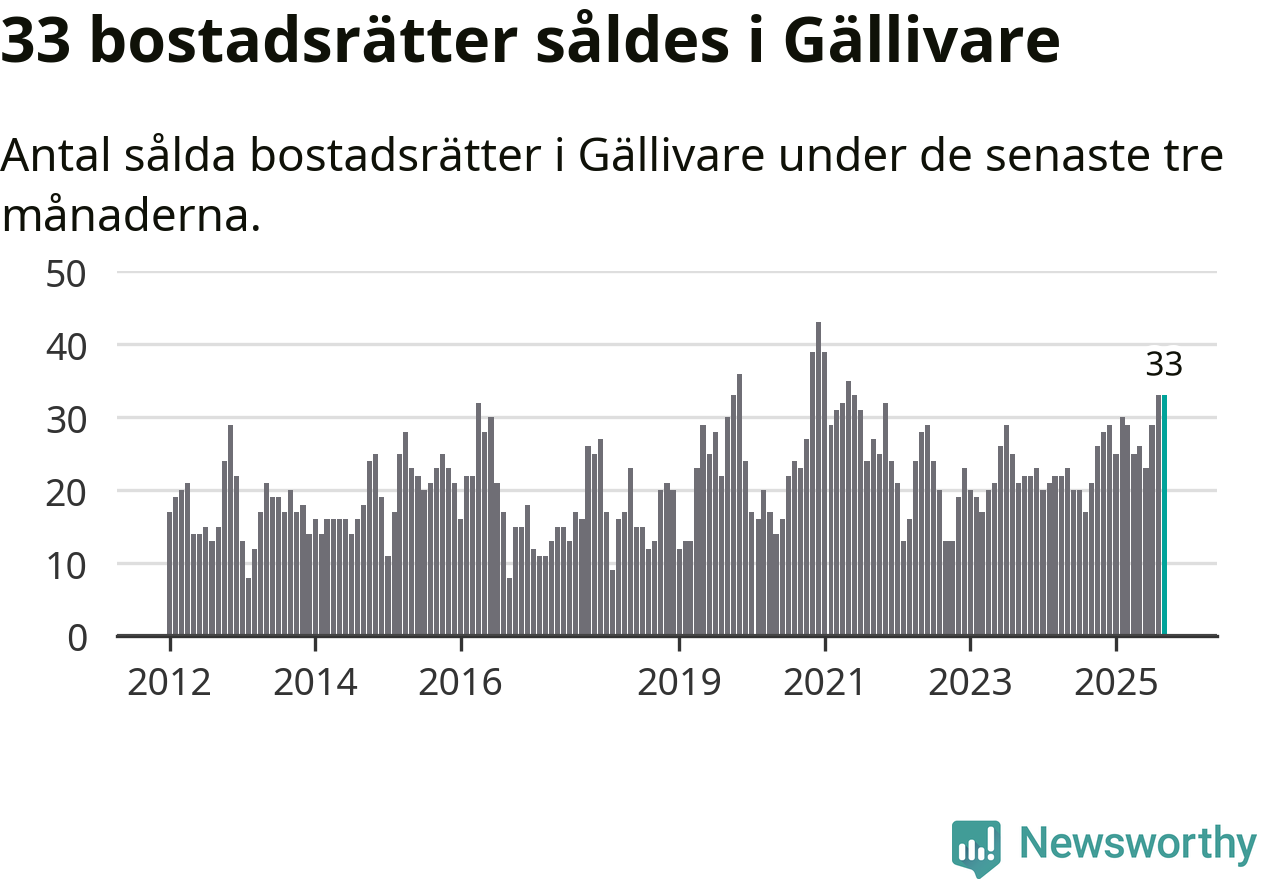 Mellan juli och september gjordes sammanlagt 33 affärer med bostadsrätter i Gällivare kommun. Det kan jämföras med 21 vid motsvarande tid i fjol.