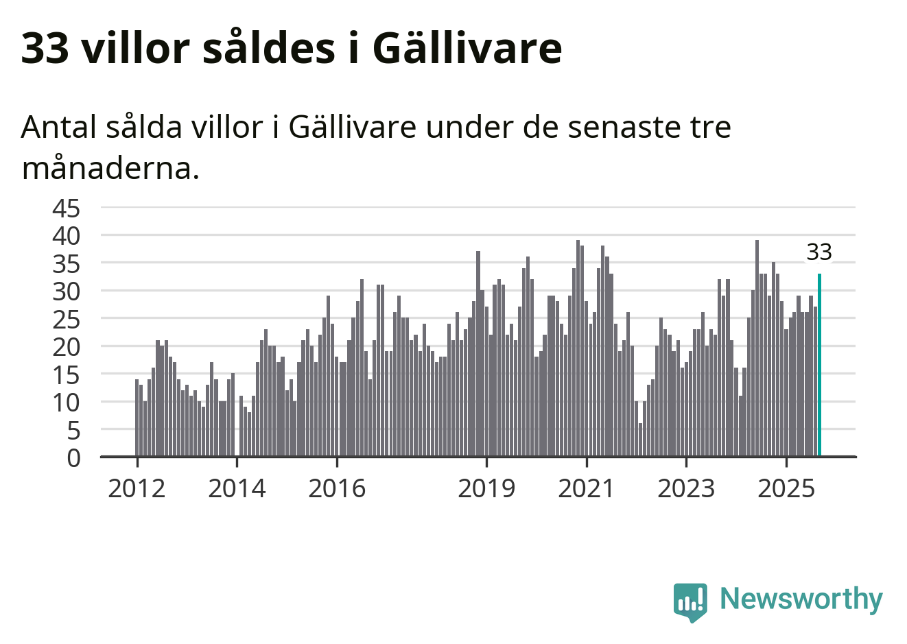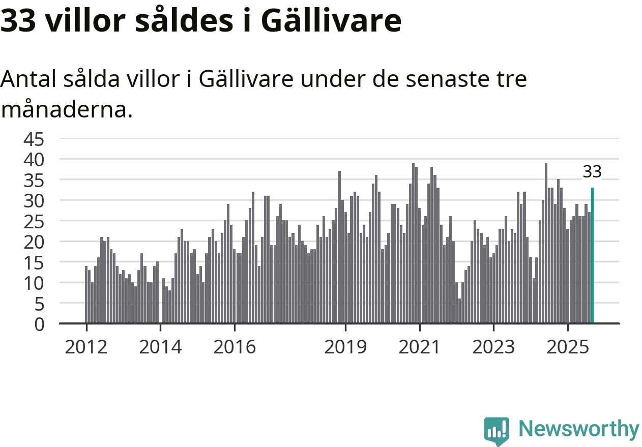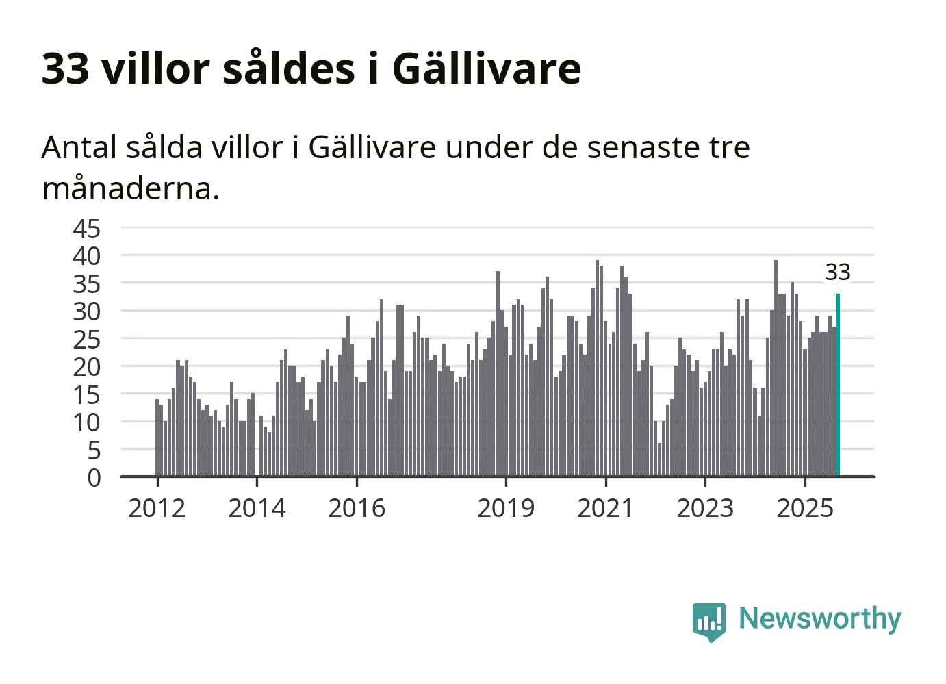 Mellan juli och september gjordes sammanlagt 33 affärer med villor i Gällivare kommun. Det kan jämföras med 29 vid motsvarande tid i fjol.