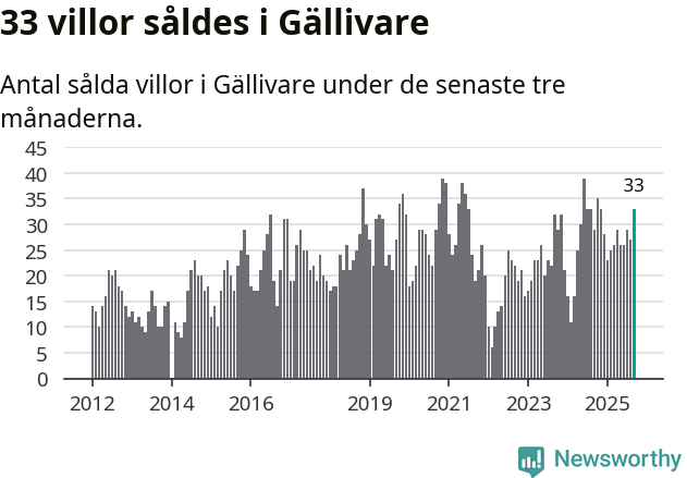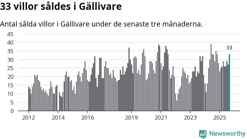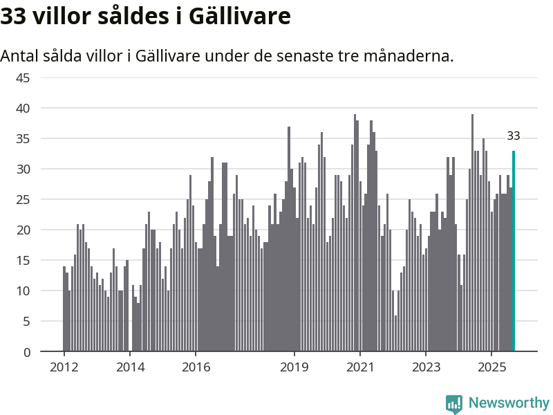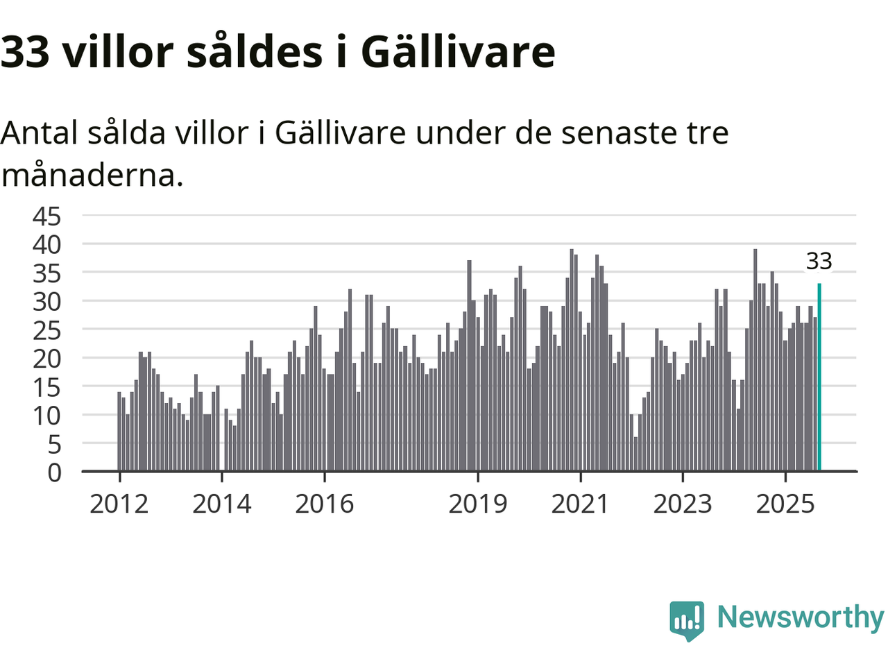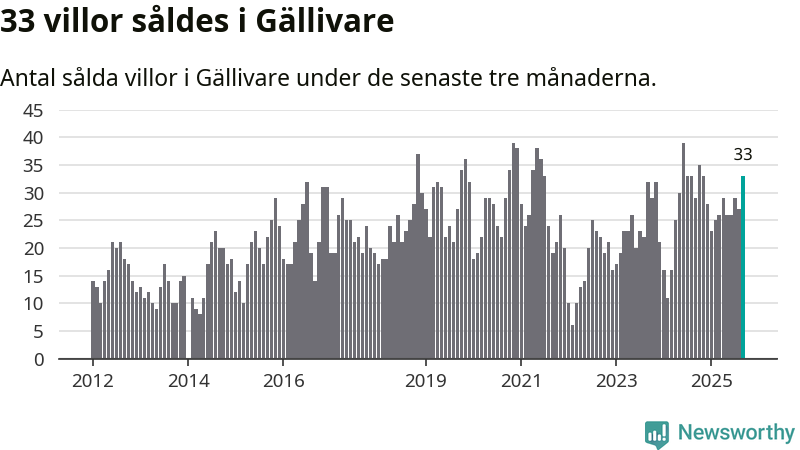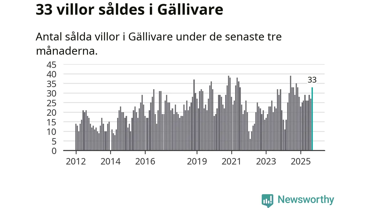Mellan juli och september gjordes sammanlagt 33 affärer med villor i Gällivare kommun. Det kan jämföras med 29 vid motsvarande tid i fjol.