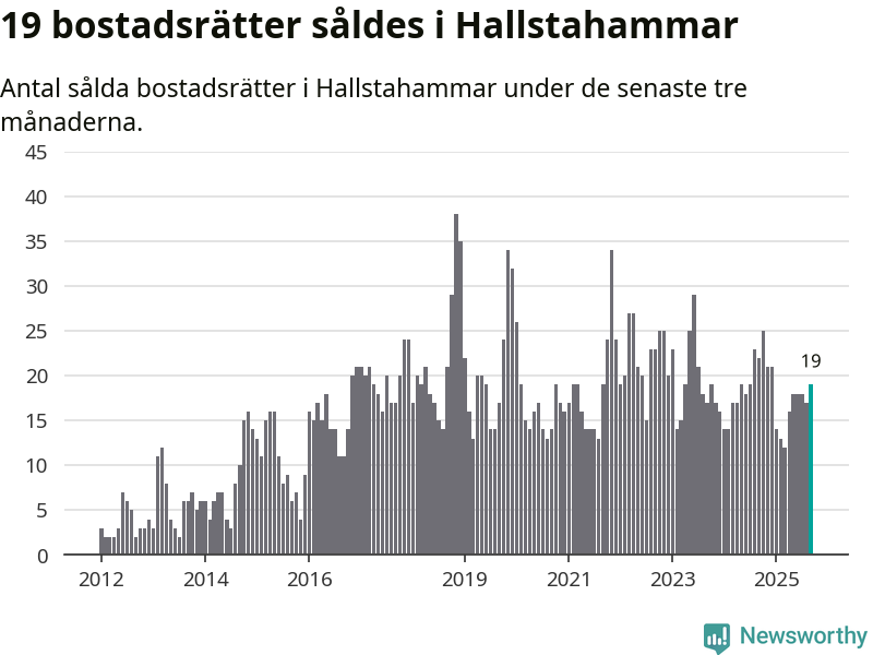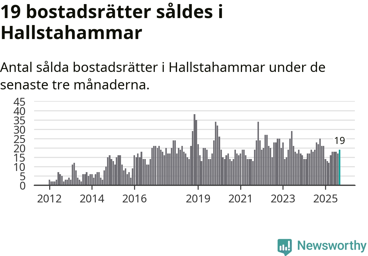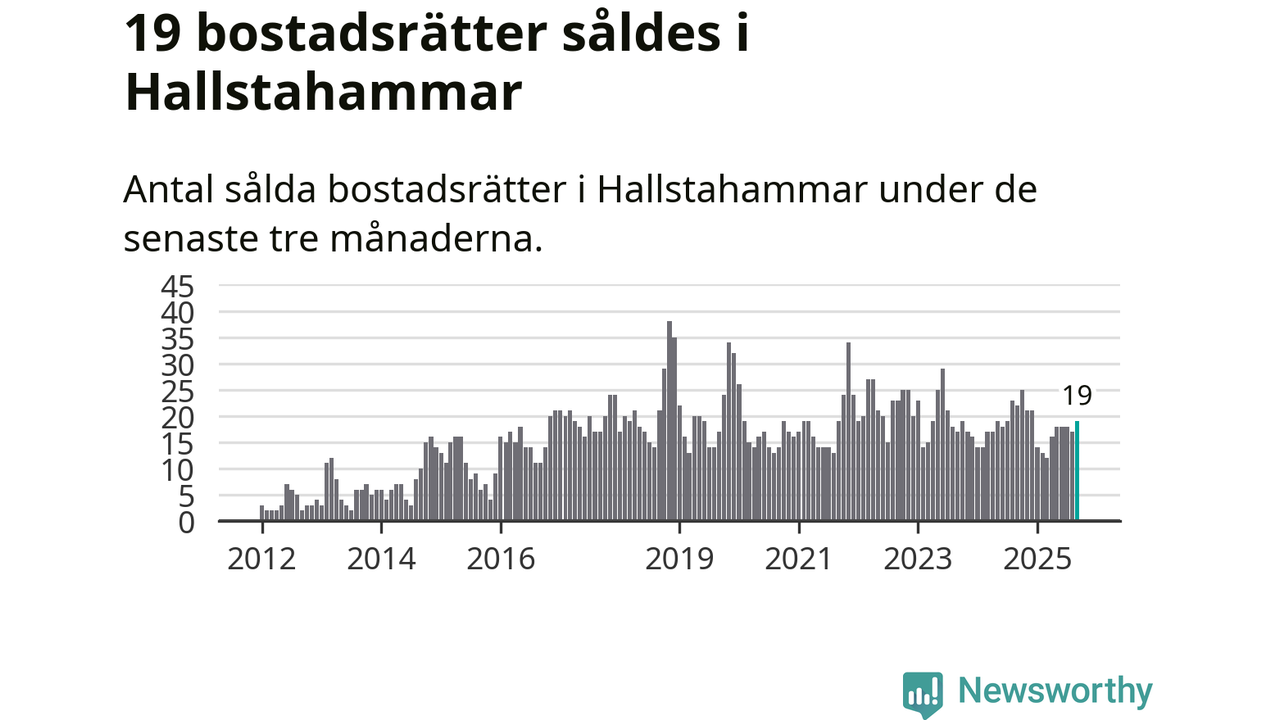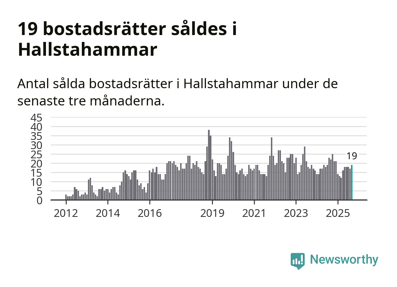 Mellan juli och september gjordes sammanlagt 19 affärer med bostadsrätter i Hallstahammars kommun. Det kan jämföras med 22 vid motsvarande tid i fjol.