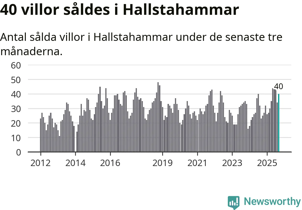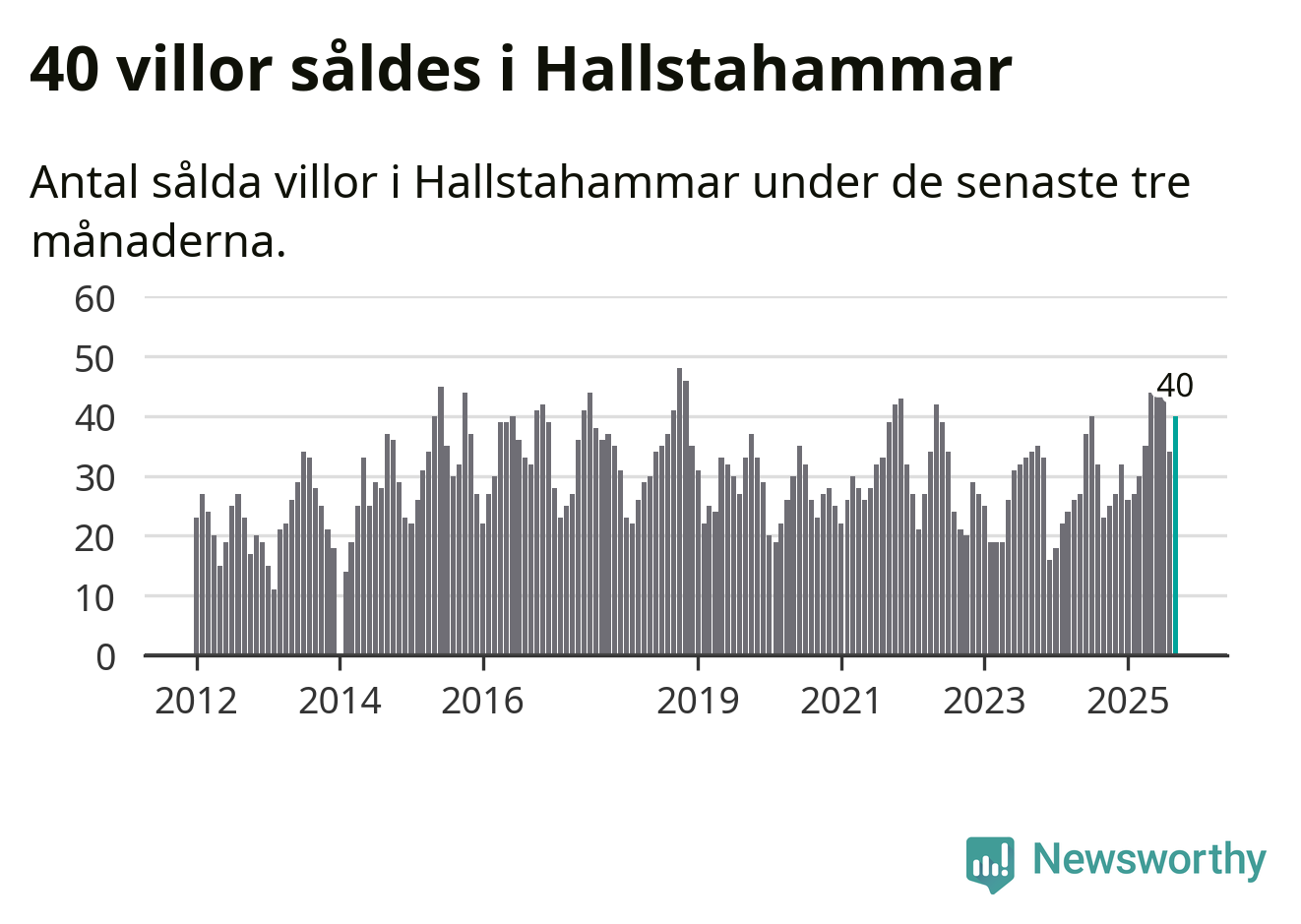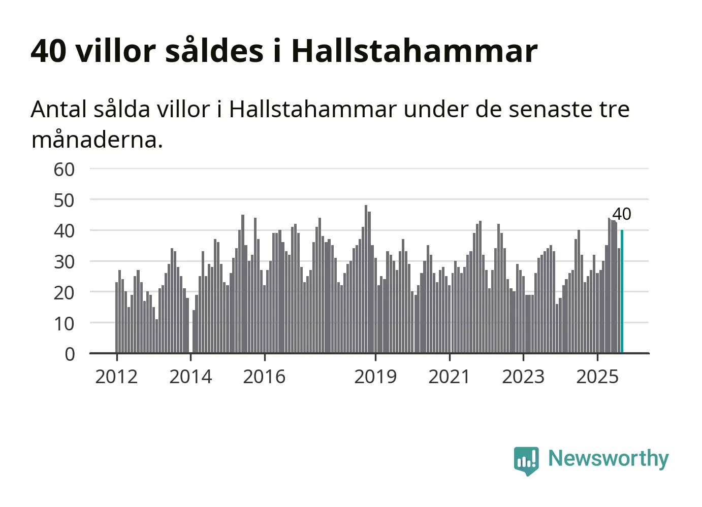 Mellan juli och september gjordes sammanlagt 40 affärer med villor i Hallstahammars kommun. Det kan jämföras med 23 vid motsvarande tid i fjol.