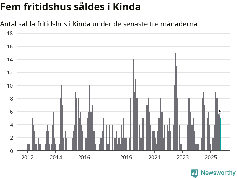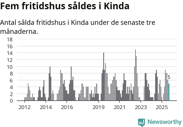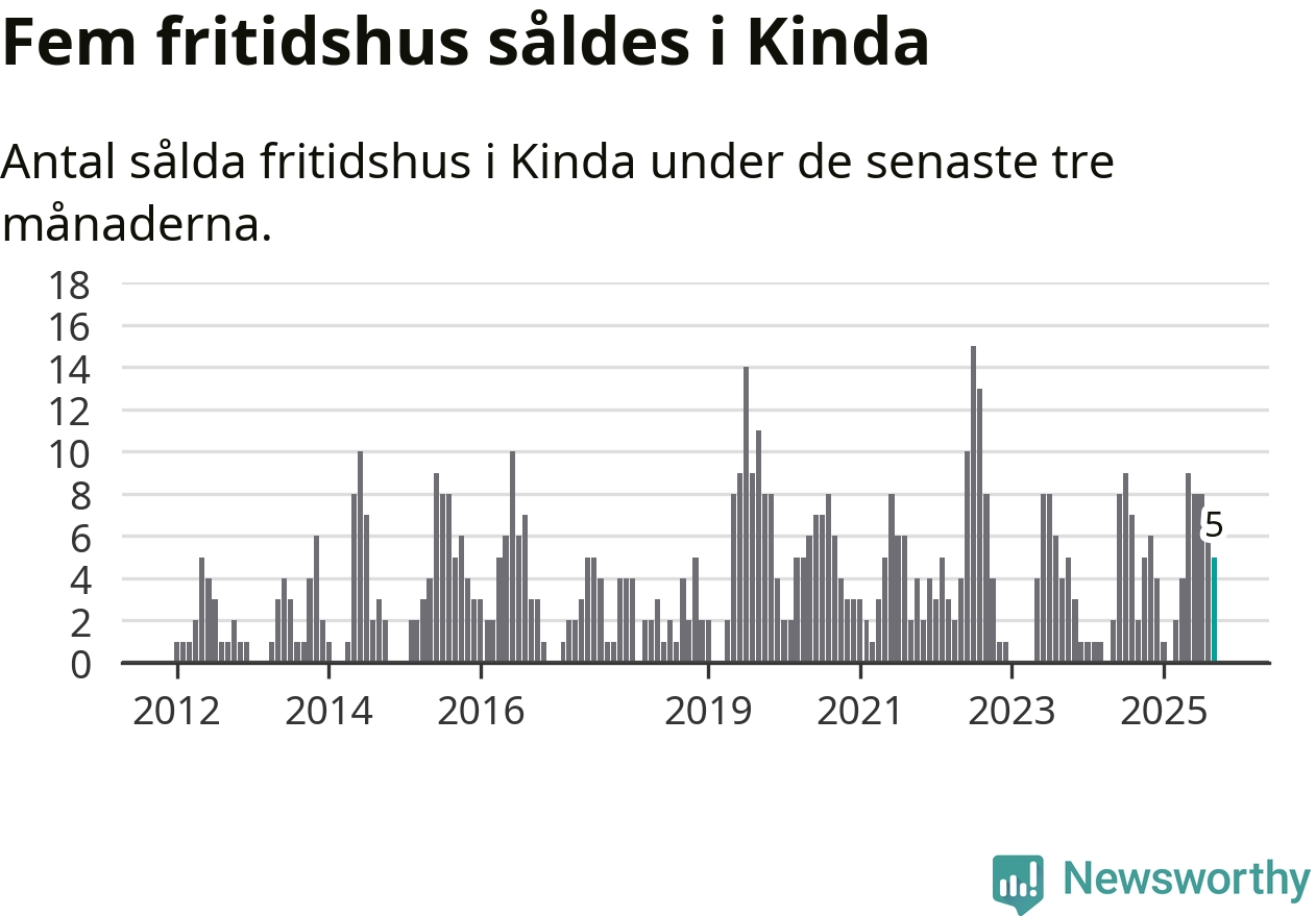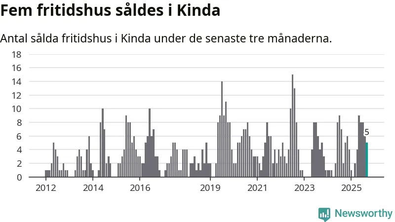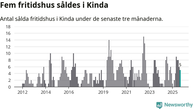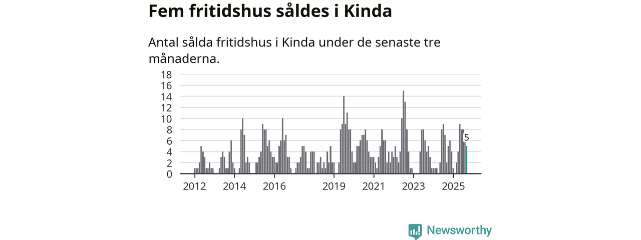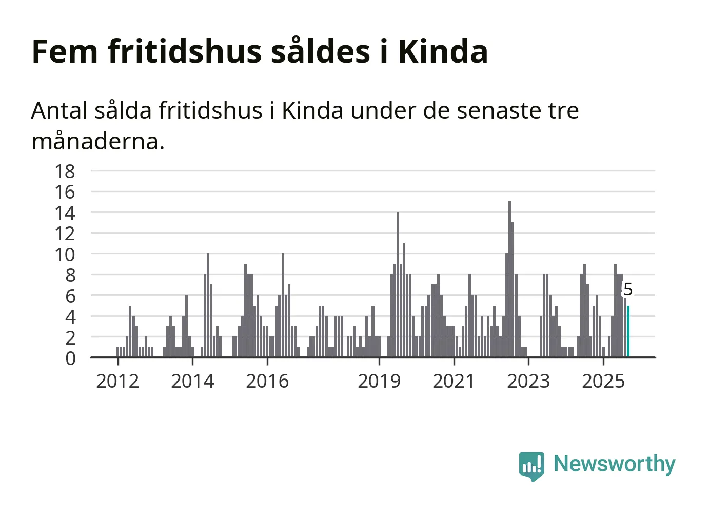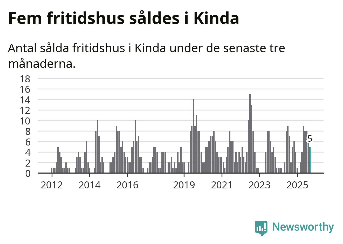 Mellan juli och september gjordes sammanlagt fem affärer med fritidshus i Kinda kommun. Det kan jämföras med två vid motsvarande tid i fjol.