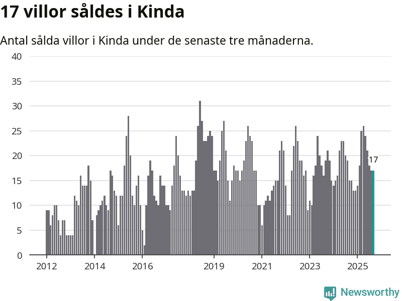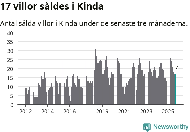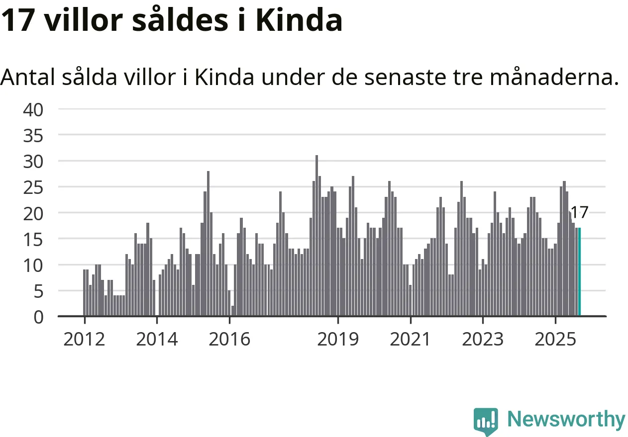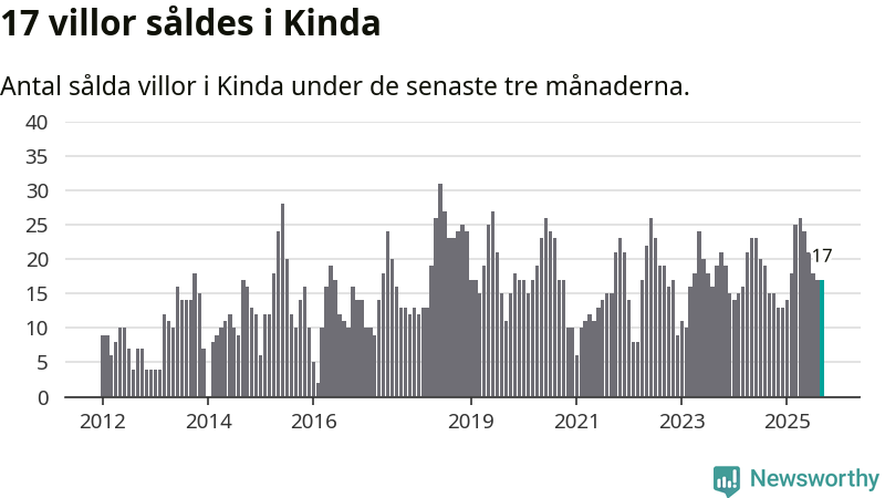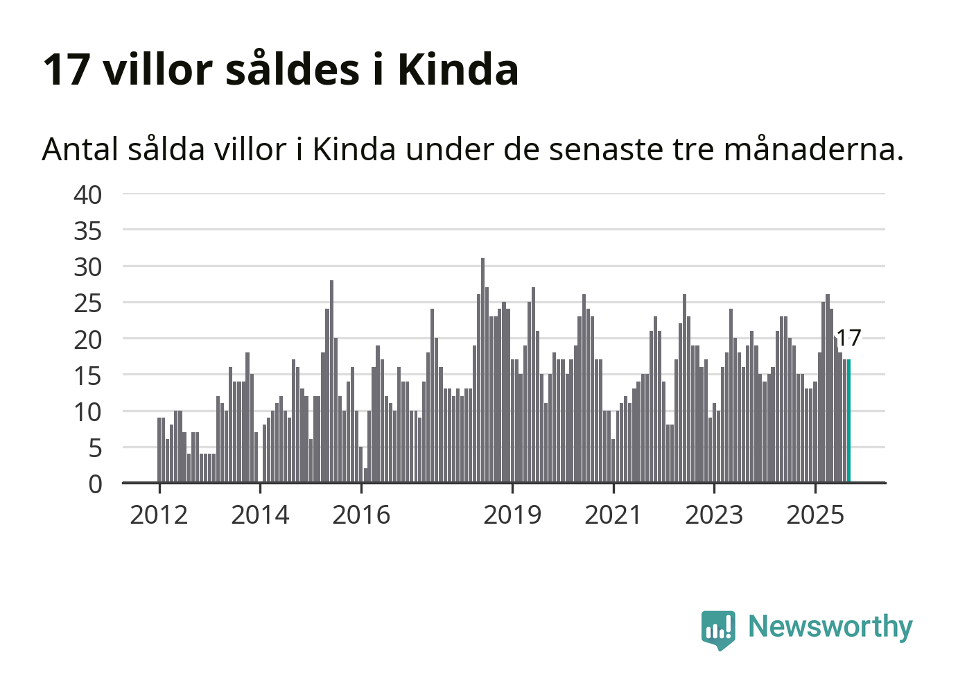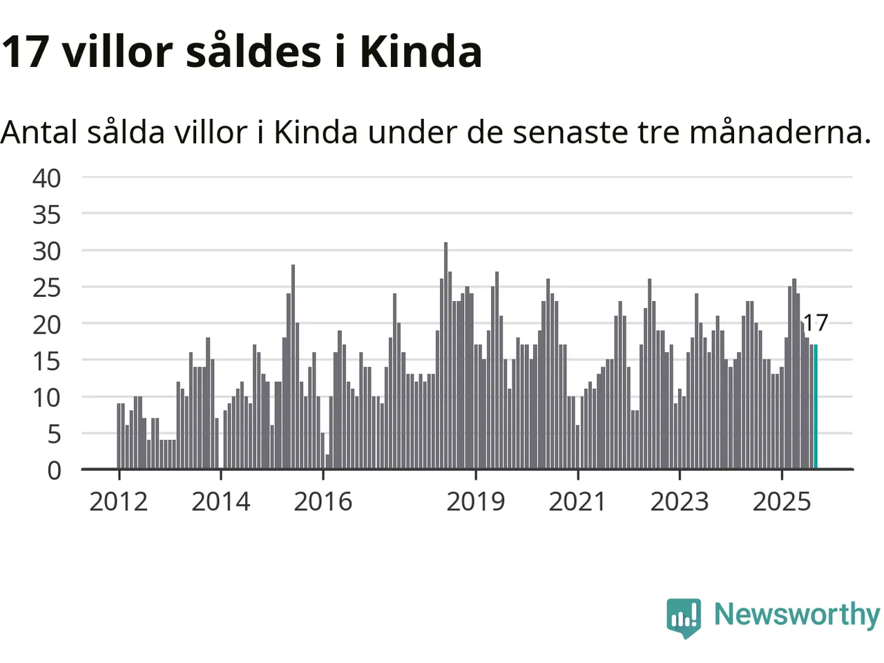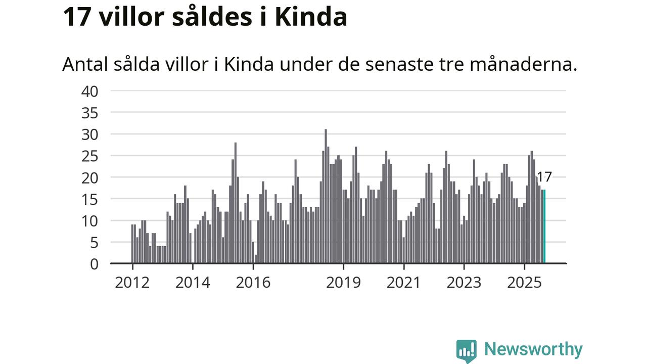 Mellan juli och september gjordes sammanlagt 17 affärer med villor i Kinda kommun. Det kan jämföras med 15 vid motsvarande tid i fjol.