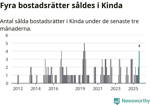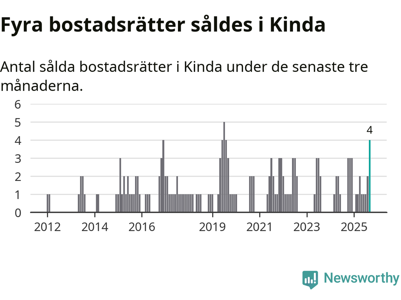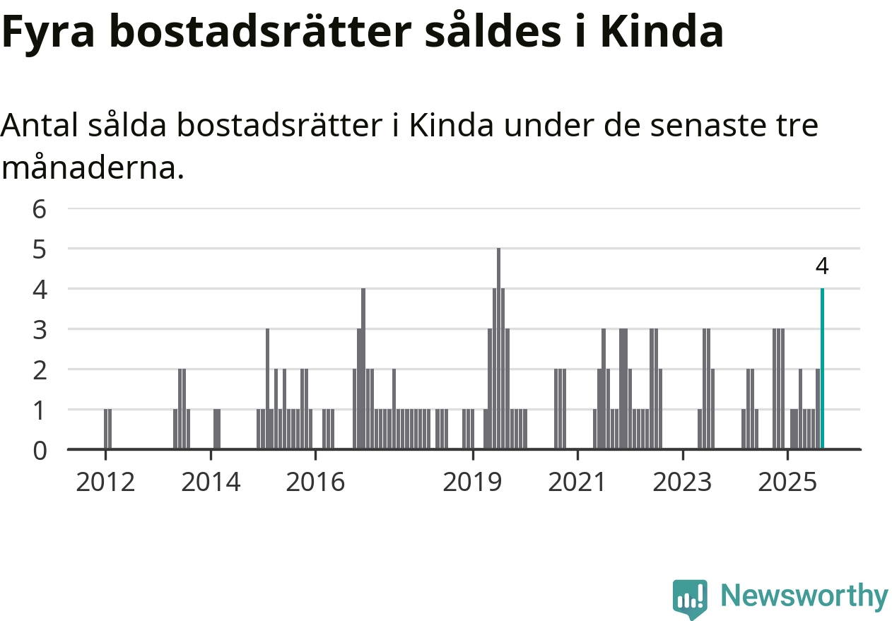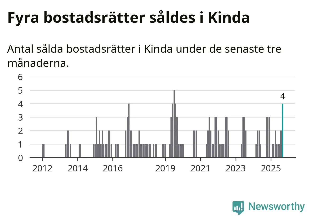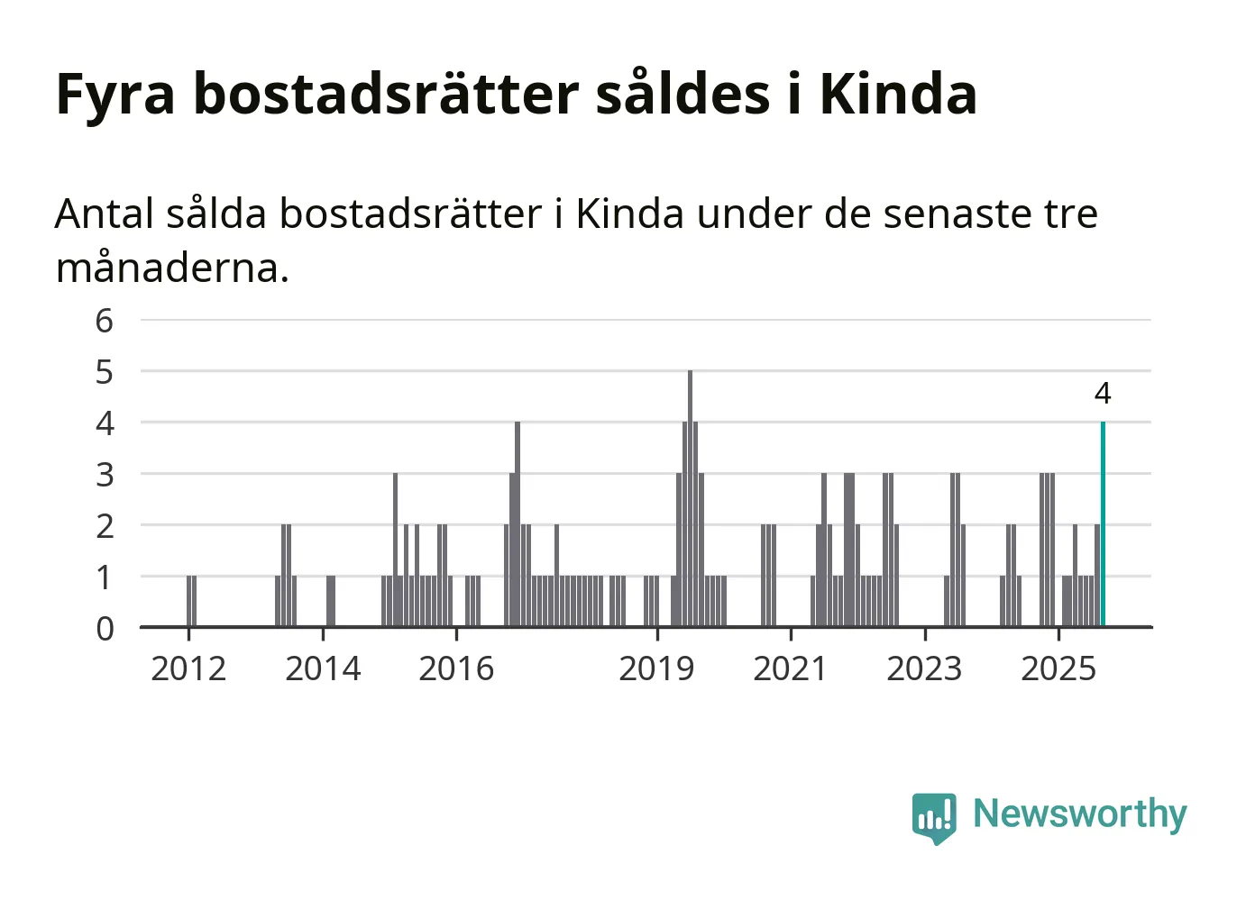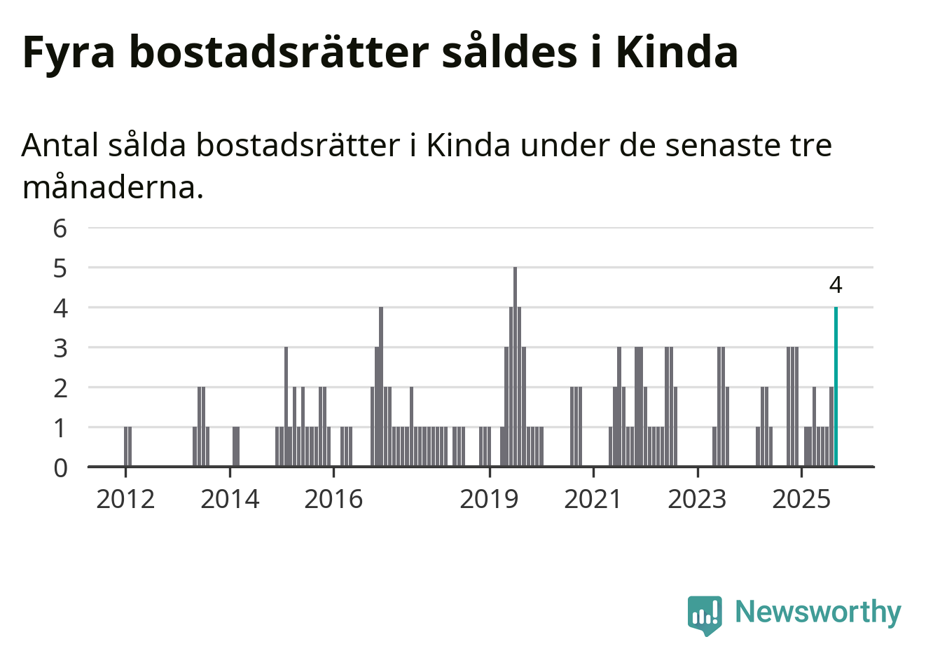 Mellan juli och september gjordes sammanlagt fyra affärer med bostadsrätter i Kinda kommun.
