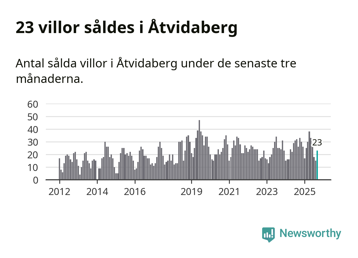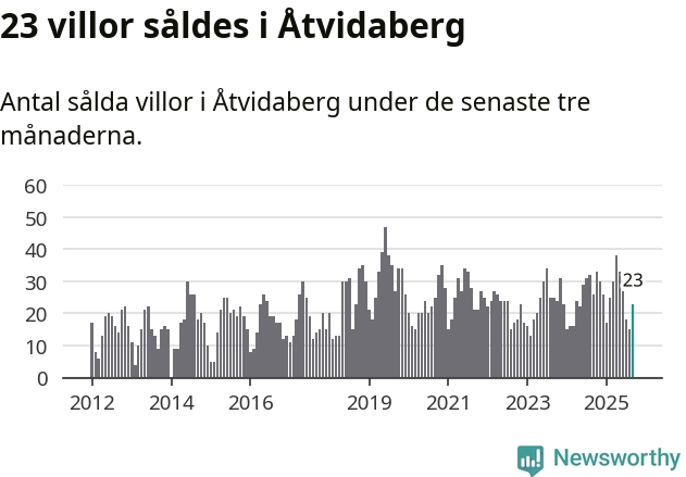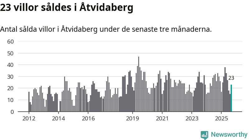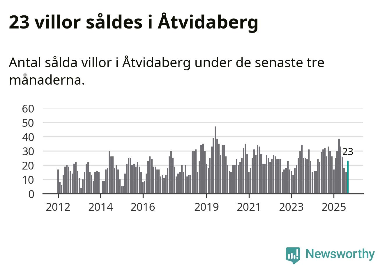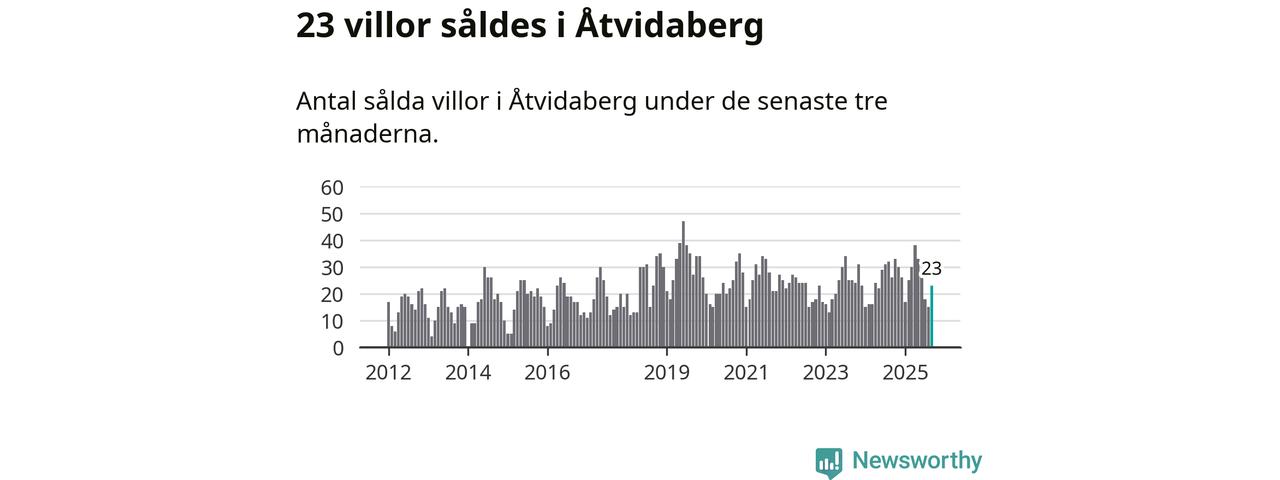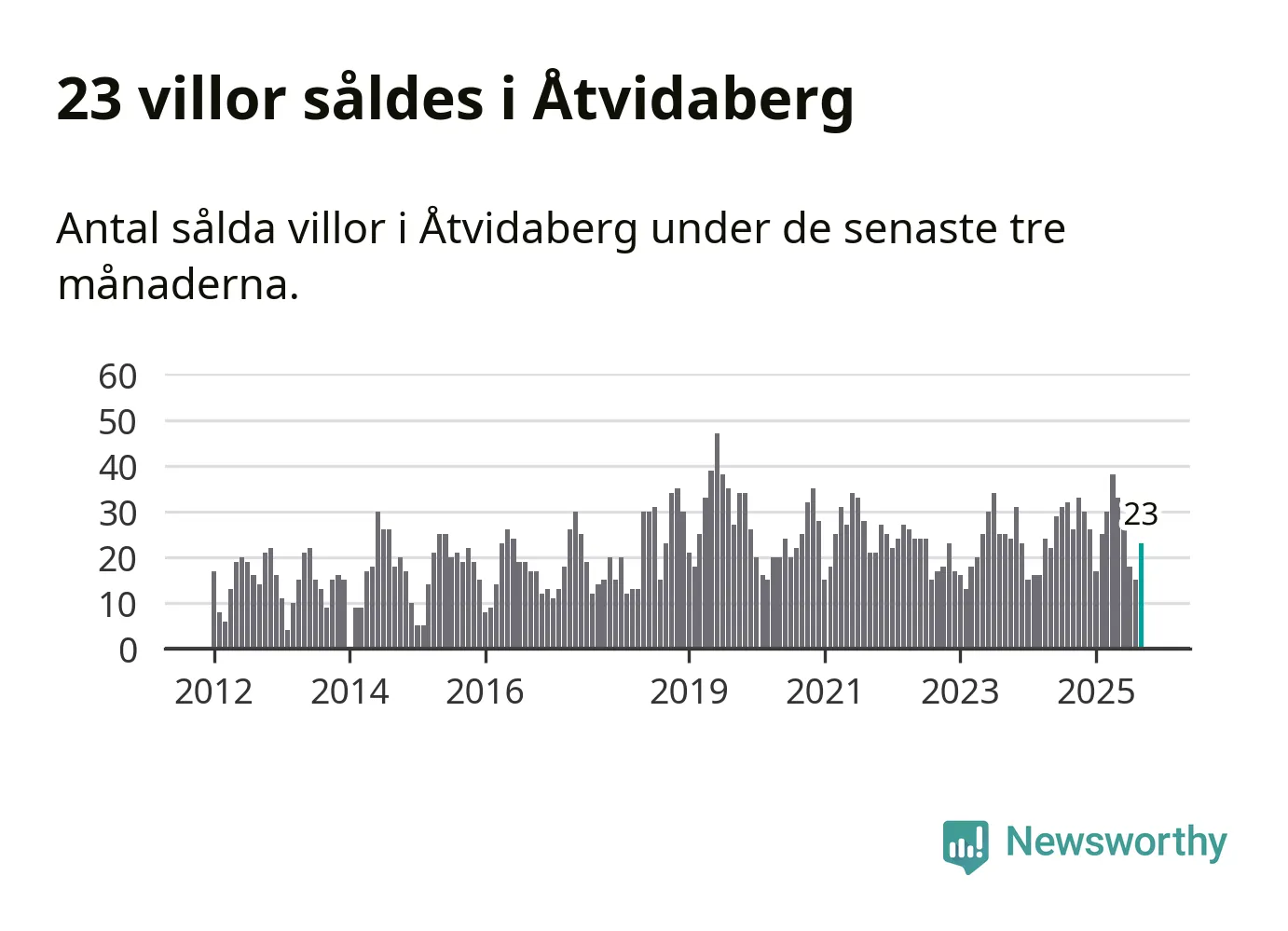 Mellan juli och september gjordes sammanlagt 23 affärer med villor i Åtvidabergs kommun. Det kan jämföras med 26 vid motsvarande tid i fjol.