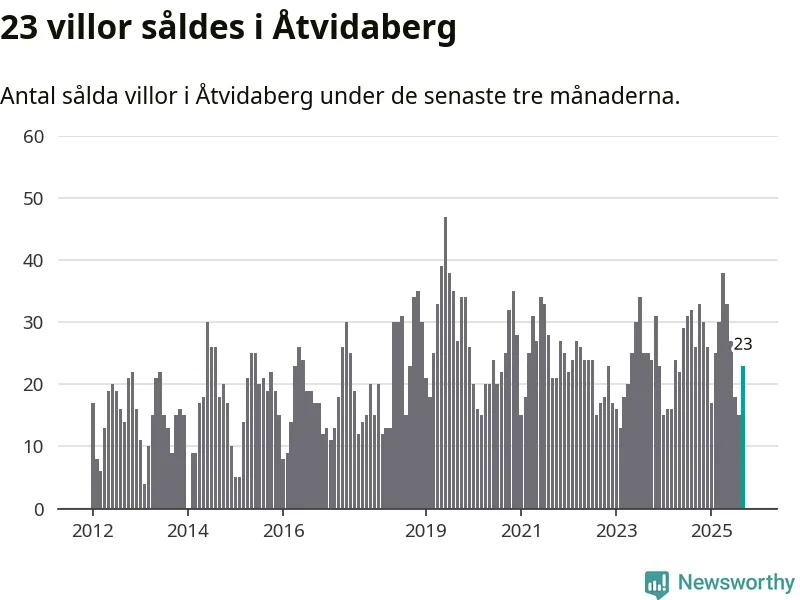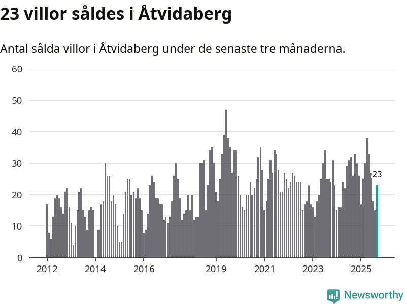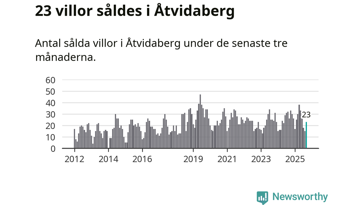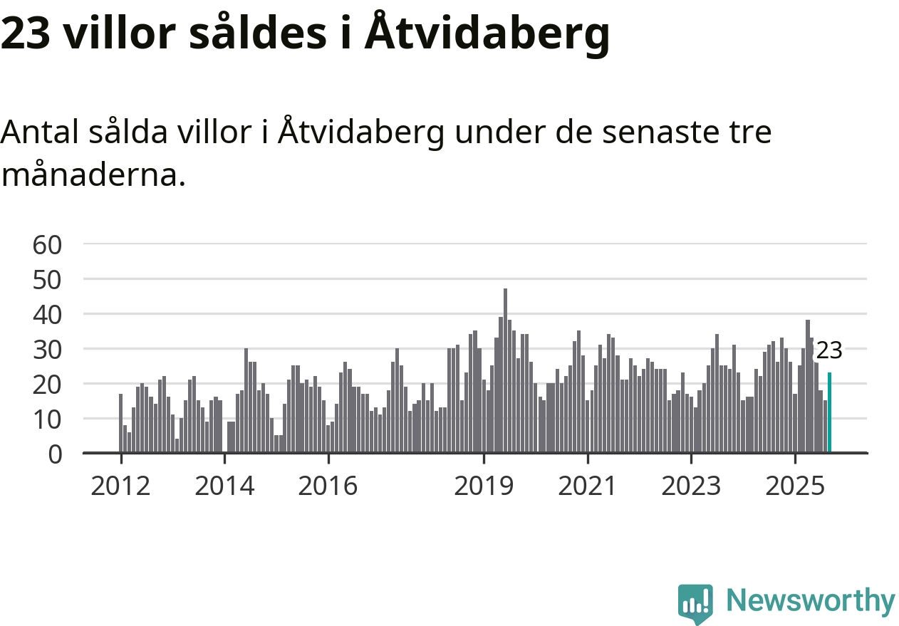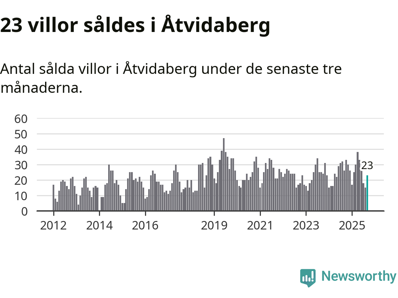Mellan juli och september gjordes sammanlagt 23 affärer med villor i Åtvidabergs kommun. Det kan jämföras med 26 vid motsvarande tid i fjol.