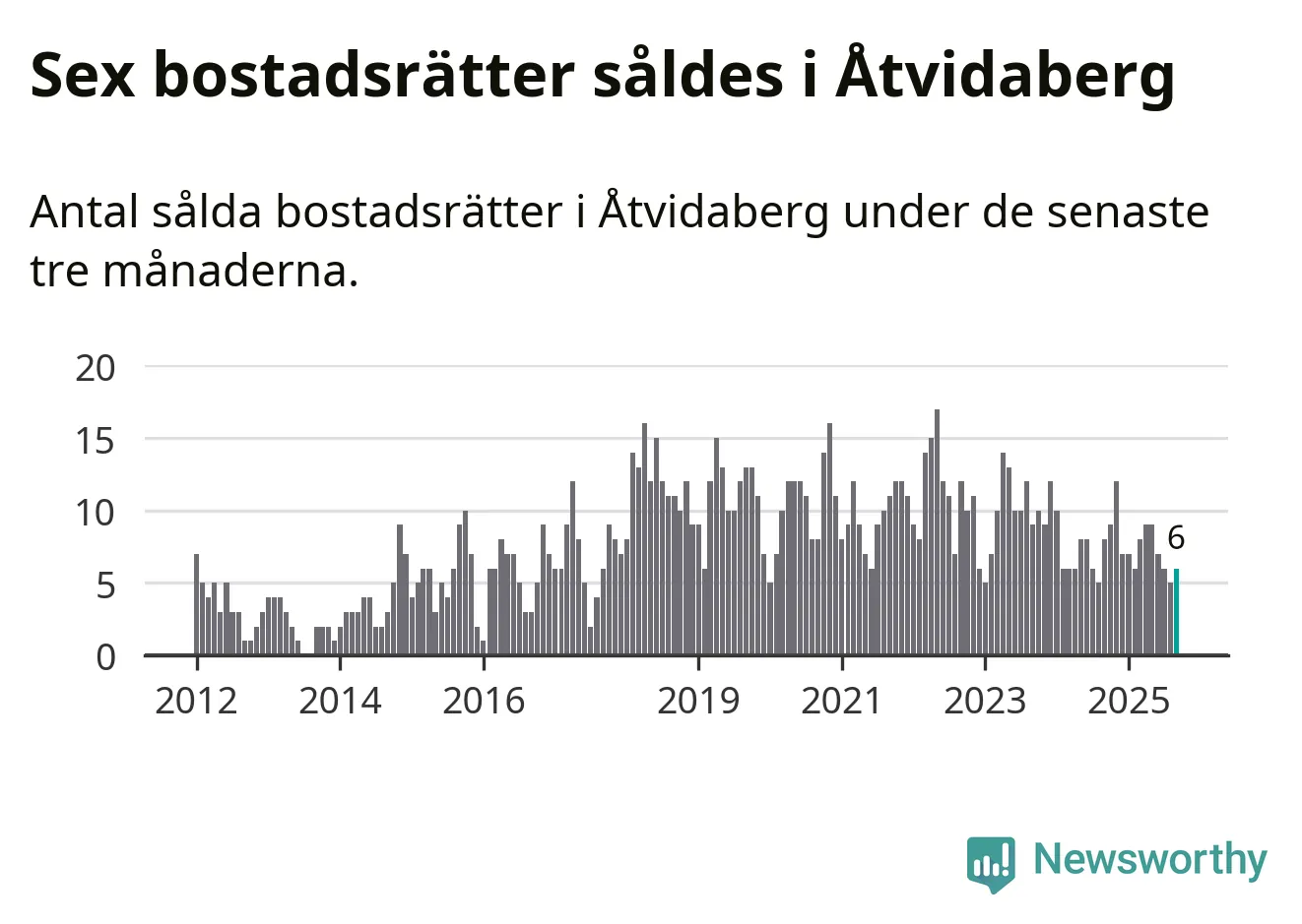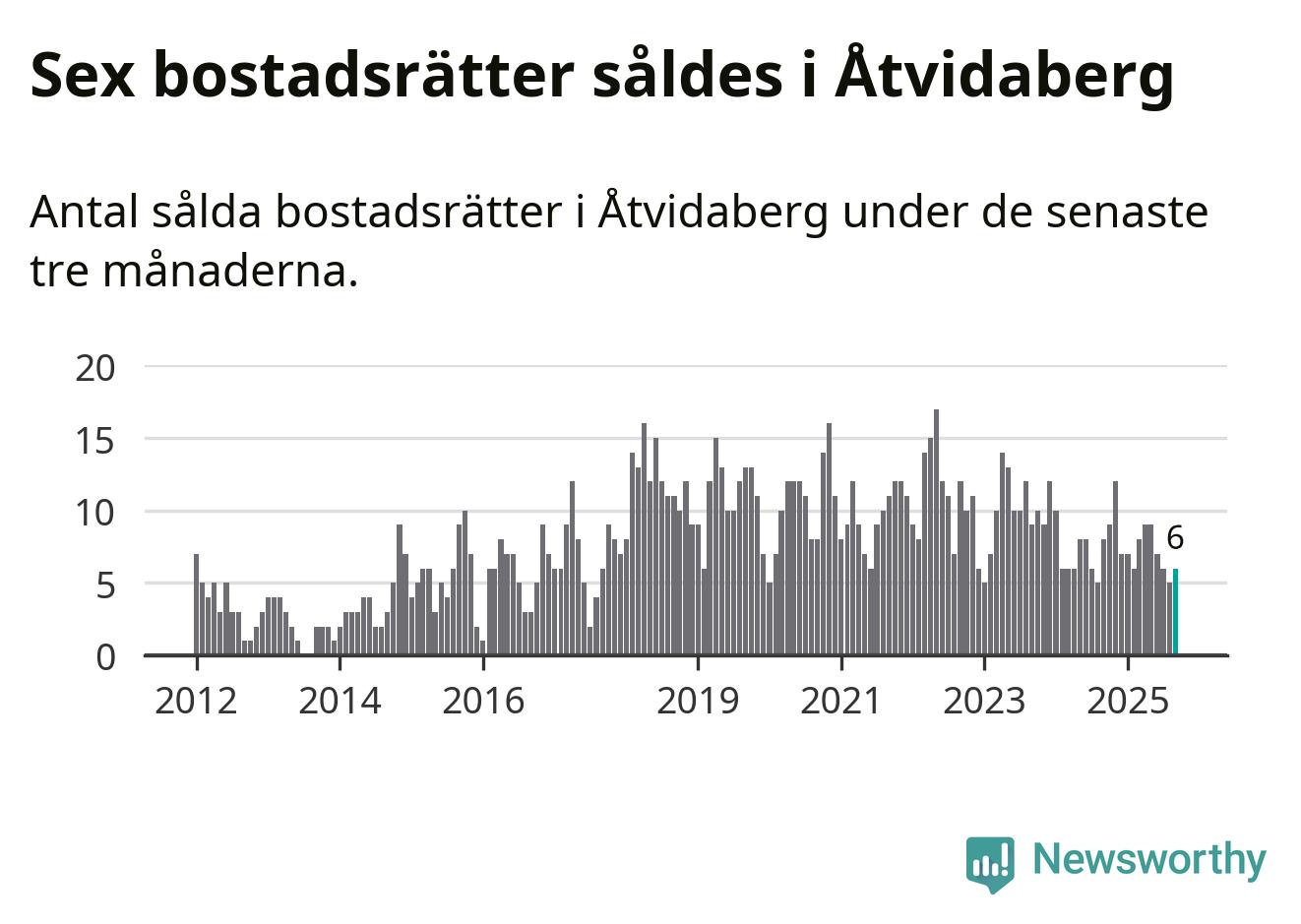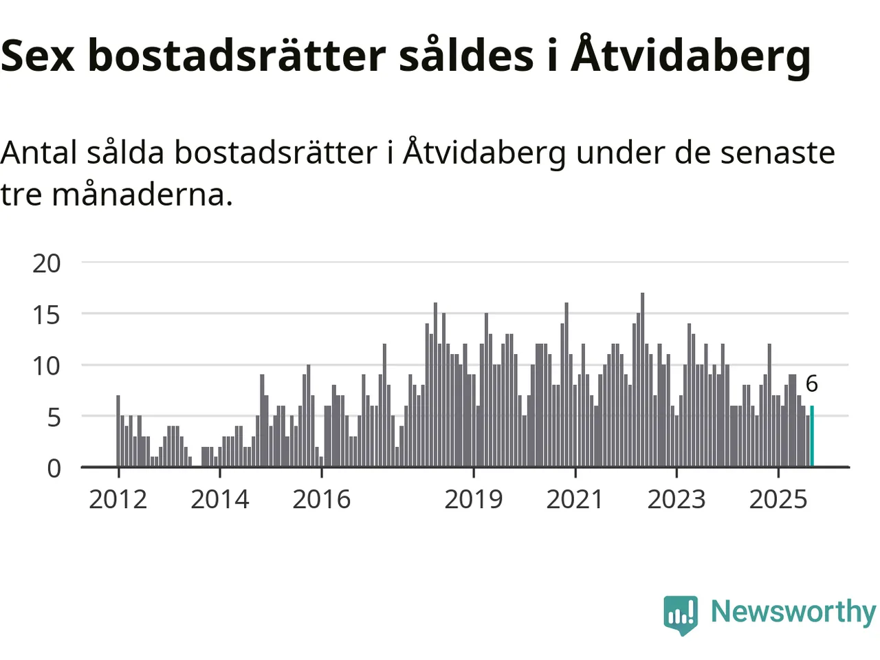 Mellan juli och september gjordes sammanlagt sex affärer med bostadsrätter i Åtvidabergs kommun. Det kan jämföras med åtta vid motsvarande tid i fjol.