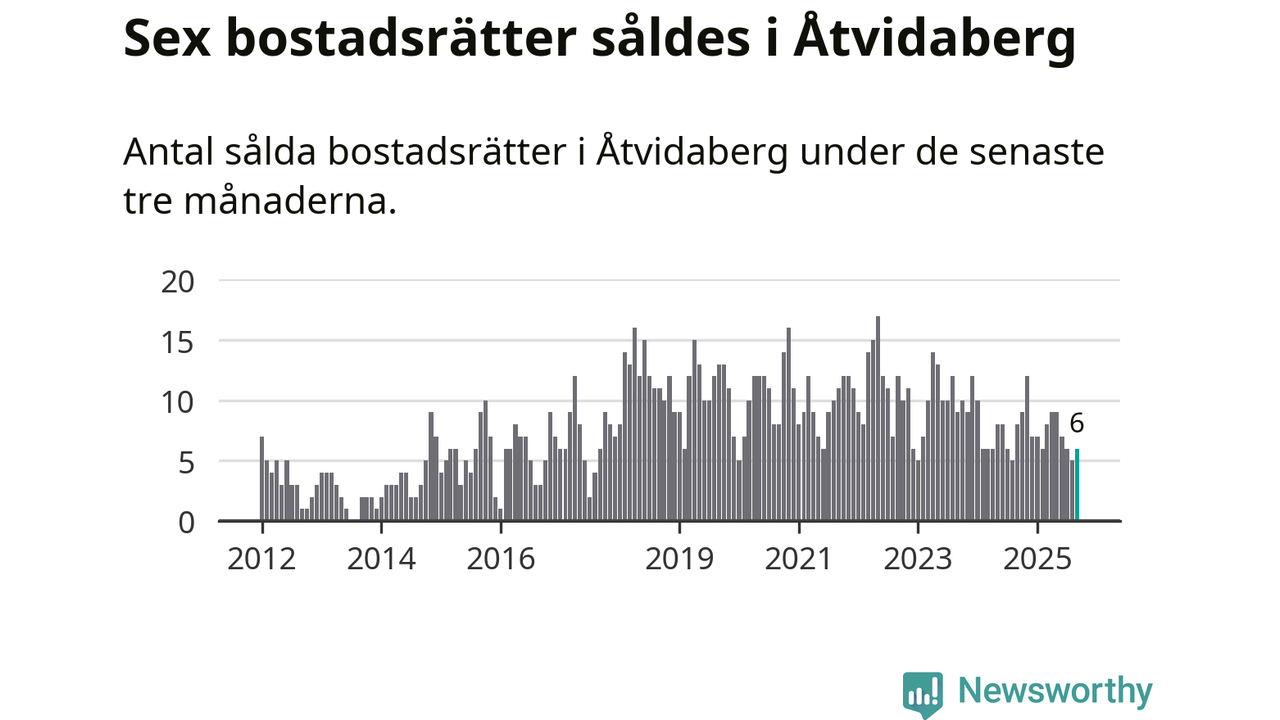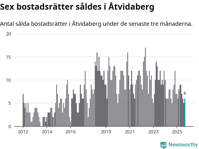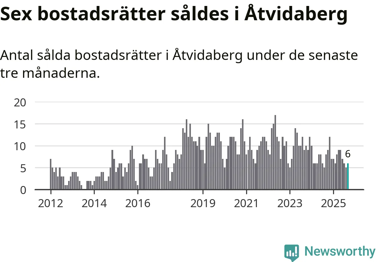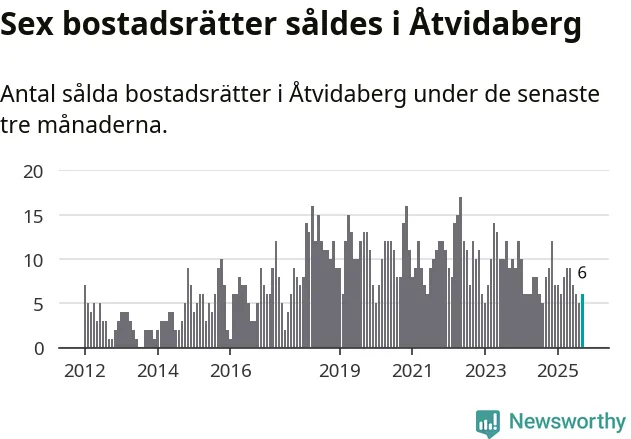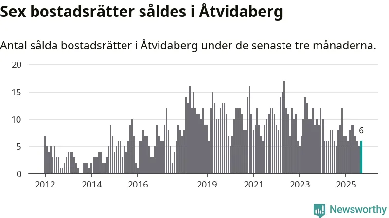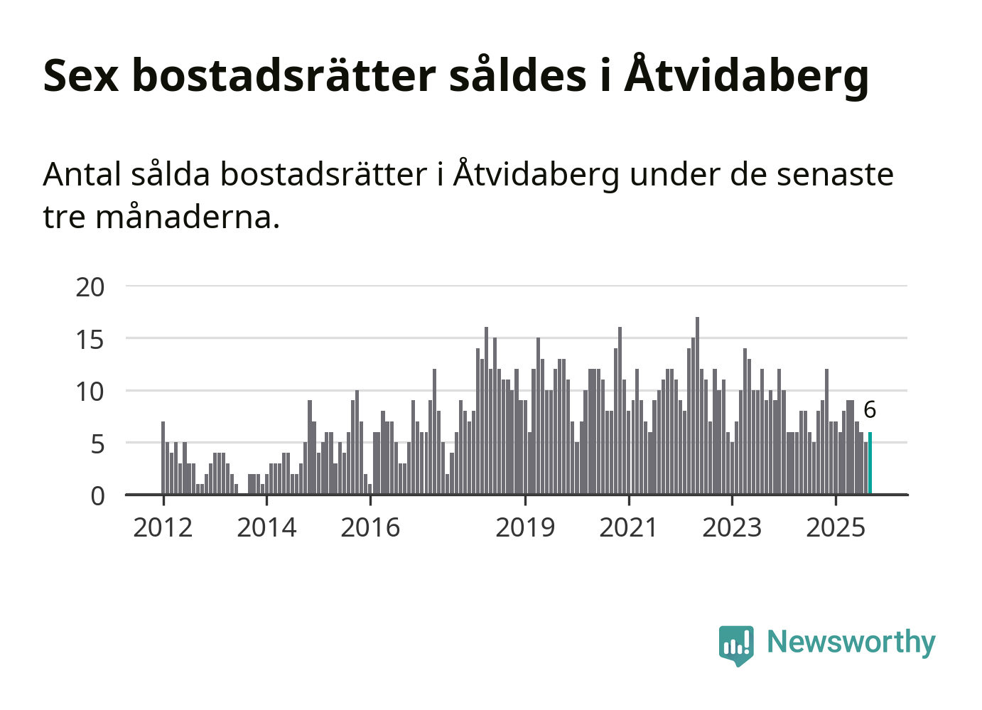 Mellan juli och september gjordes sammanlagt sex affärer med bostadsrätter i Åtvidabergs kommun. Det kan jämföras med åtta vid motsvarande tid i fjol.